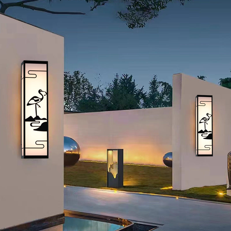 伝統的な中国風のクレーン型長方形シェード LED 防水壁取り付け用燭台ランプ 屋外パティオ用