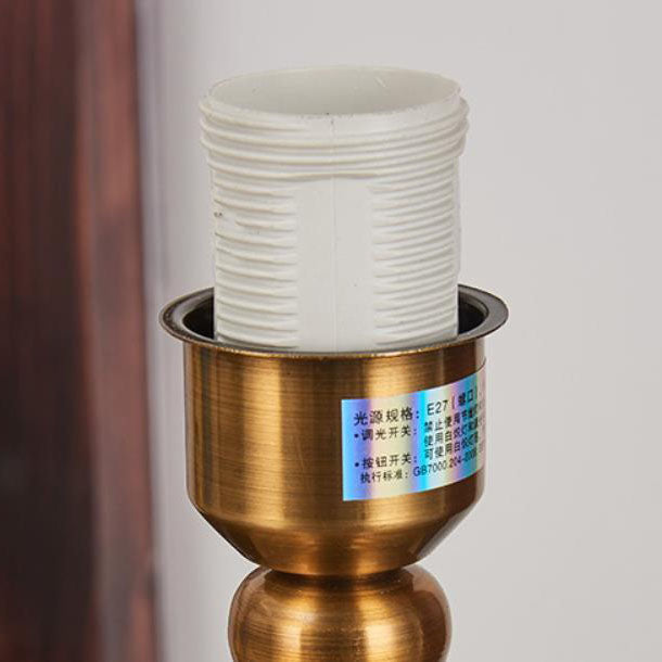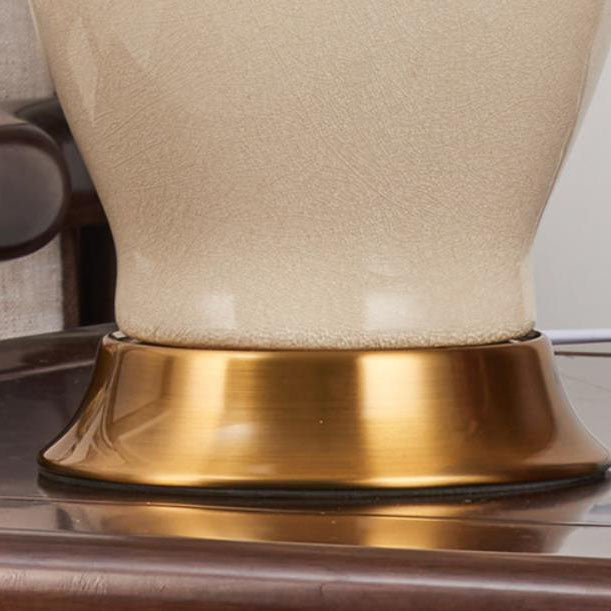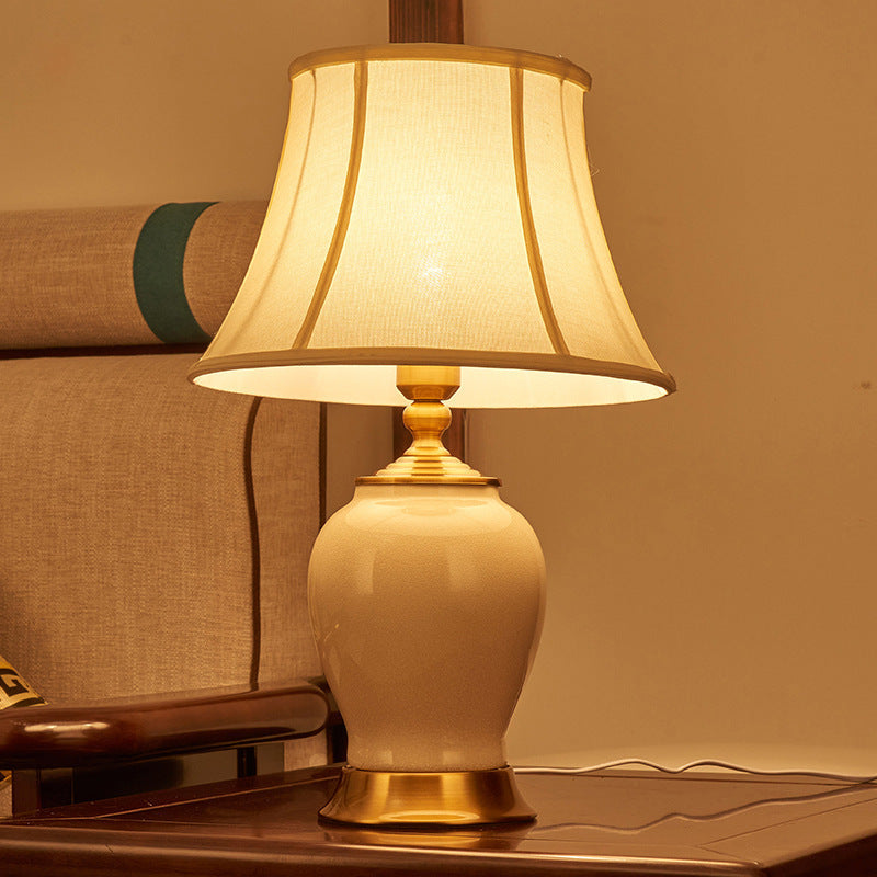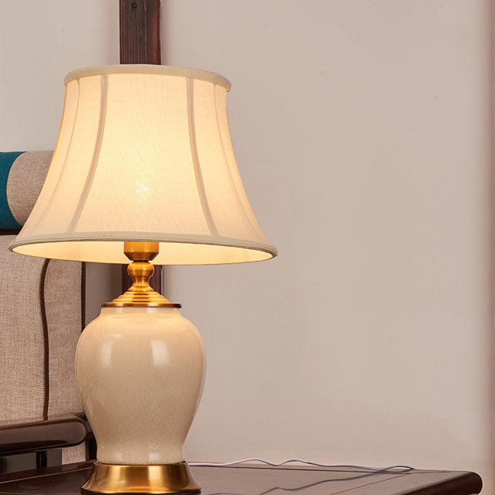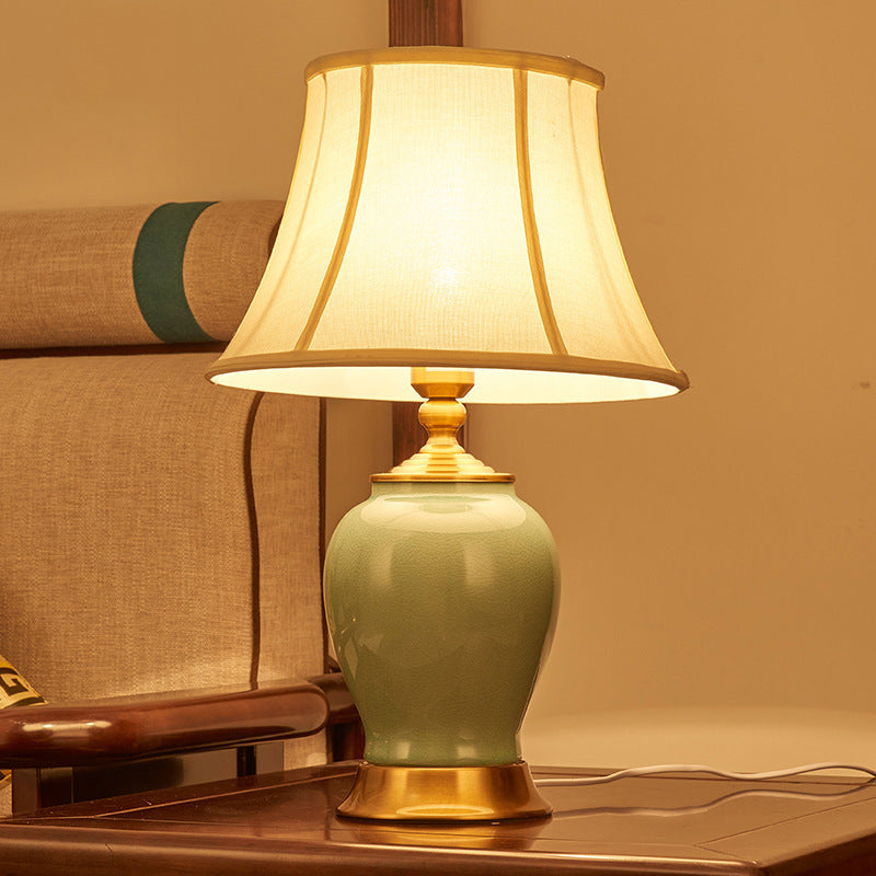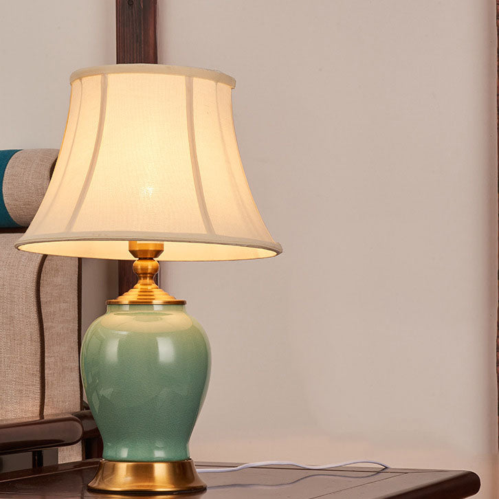 Traditional Chinese Fabric Round Shade Ceramics Vase Base 1-Light Table Lamp For Study