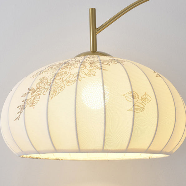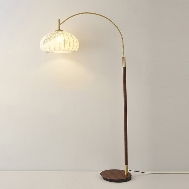 Traditional Chinese Fishing Rod Round Oval Cone Iron Fabric 1-Light Standing Floor Lamp For Living Room