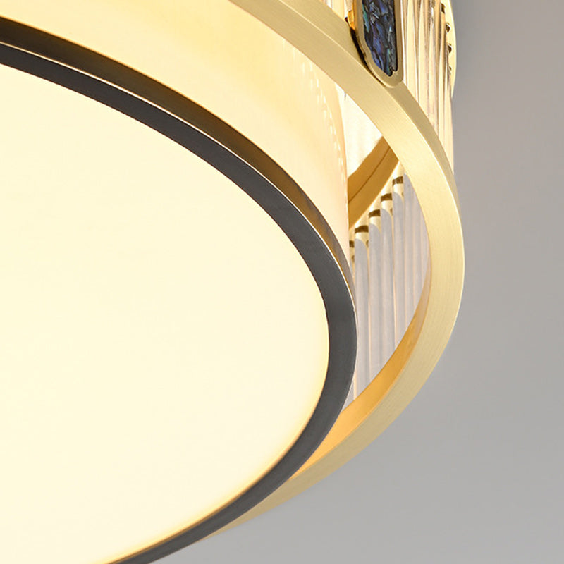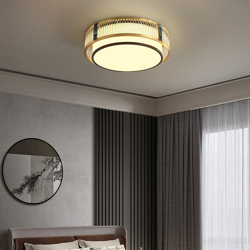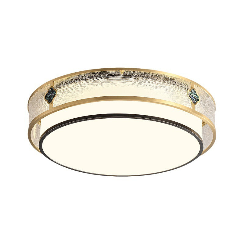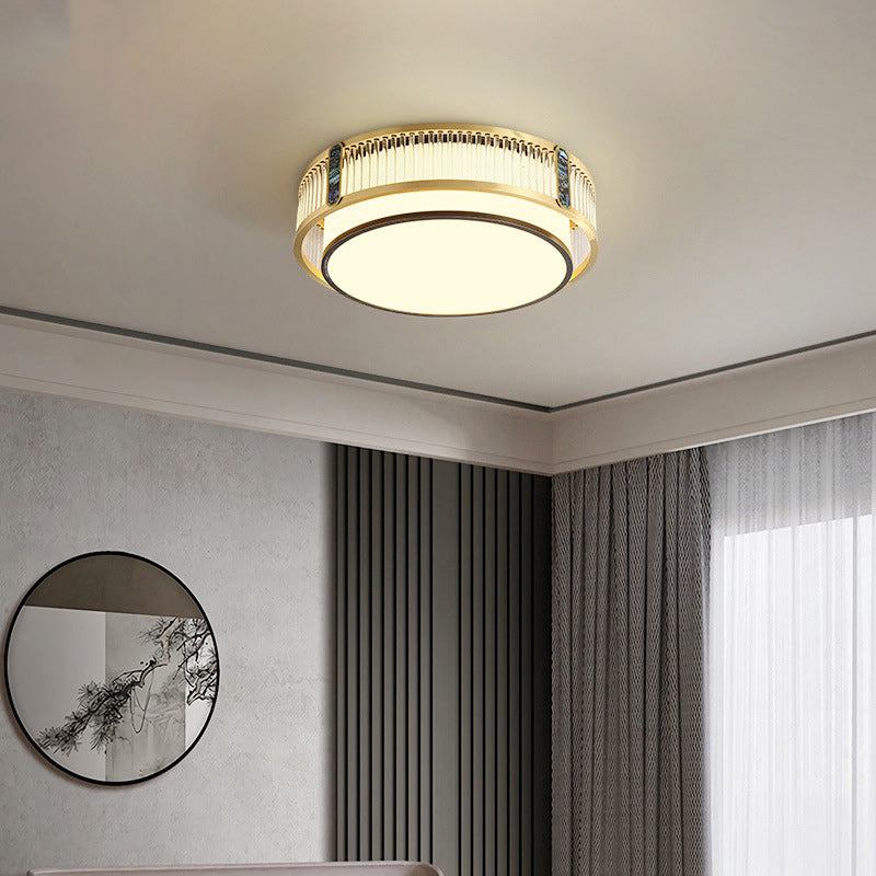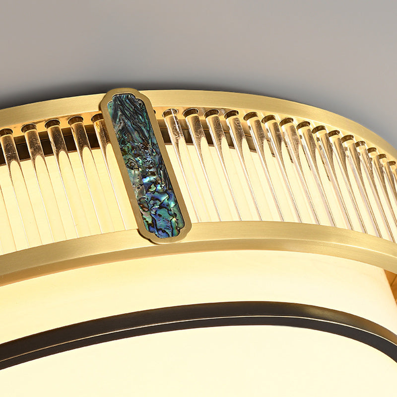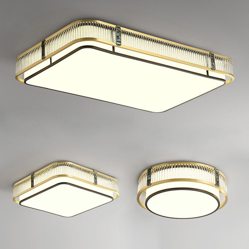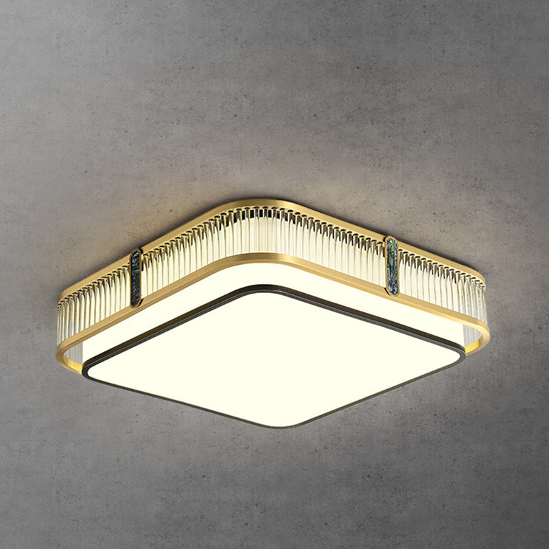 伝統的な中国製の真鍮とガラスの円形、正方形、長方形の縞模様のガラスのLEDフラッシュマウント天井ライト、寝室とリビングルーム用