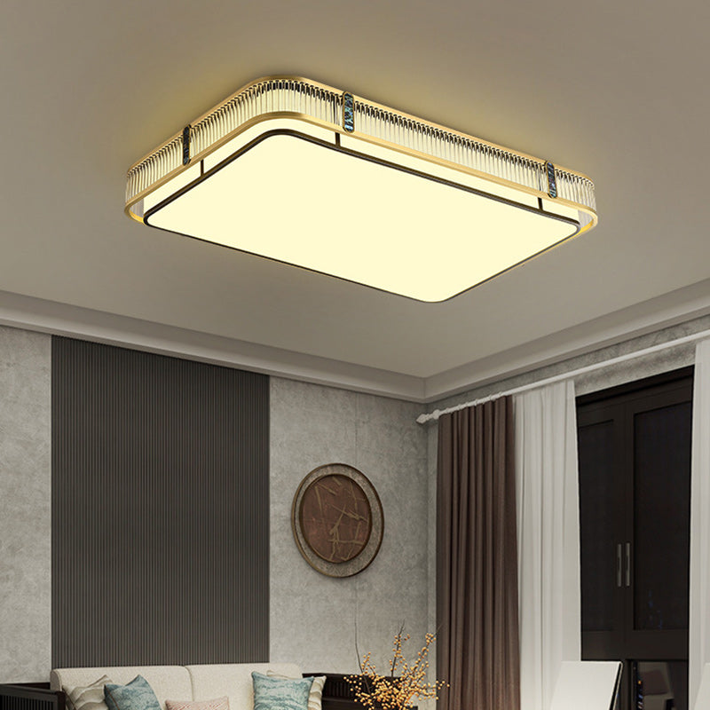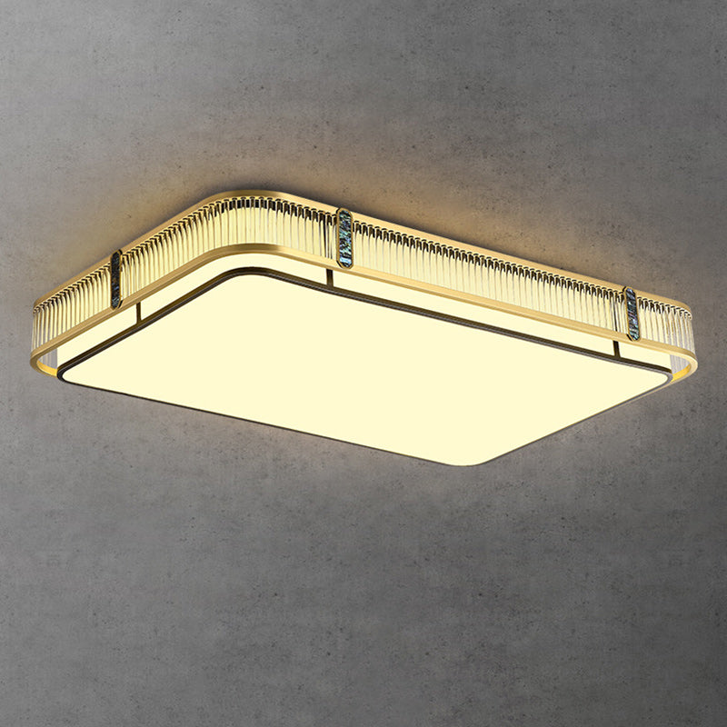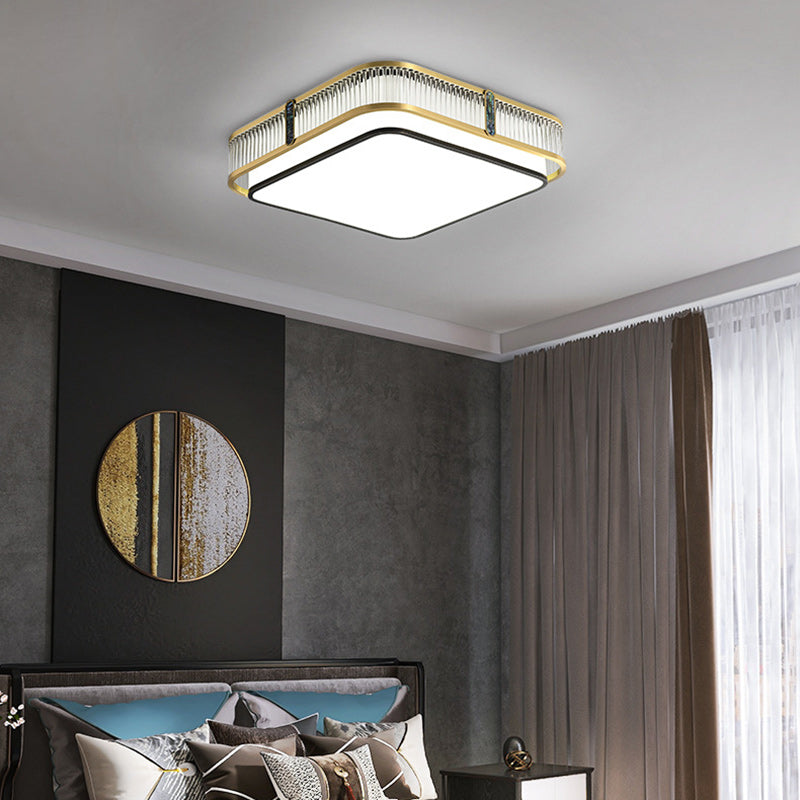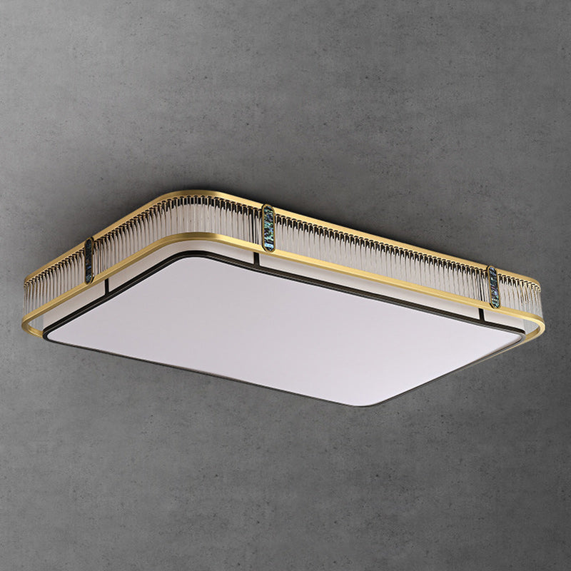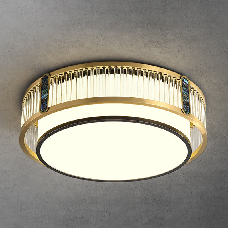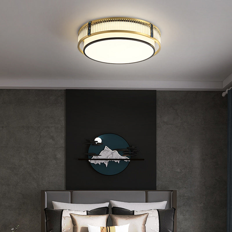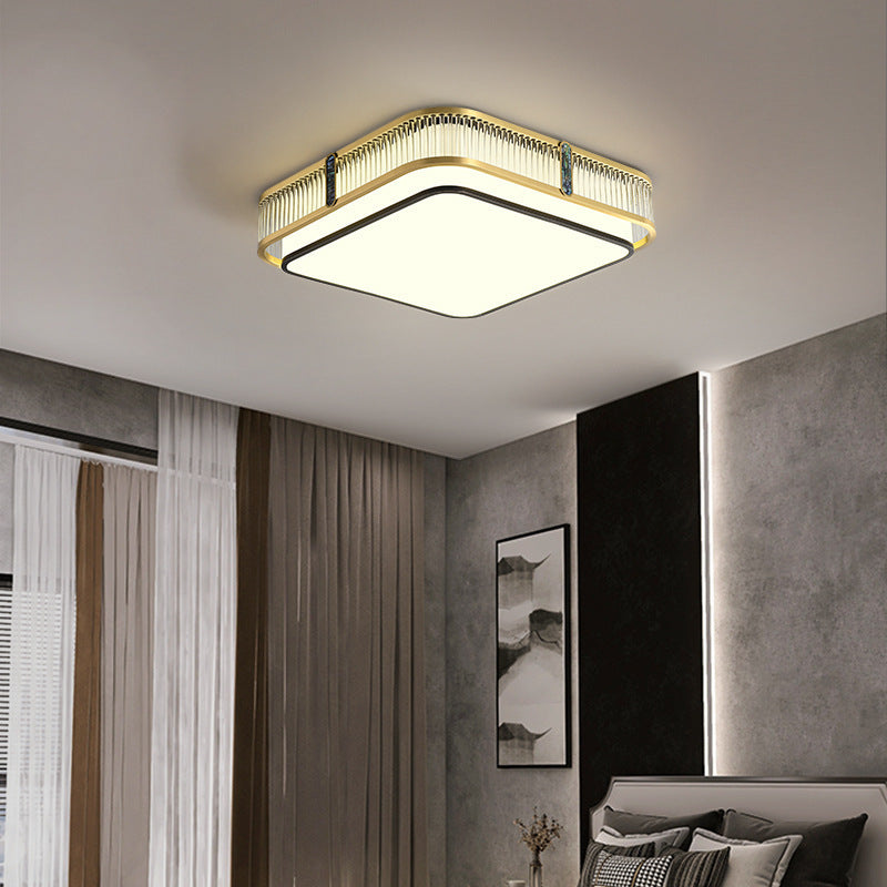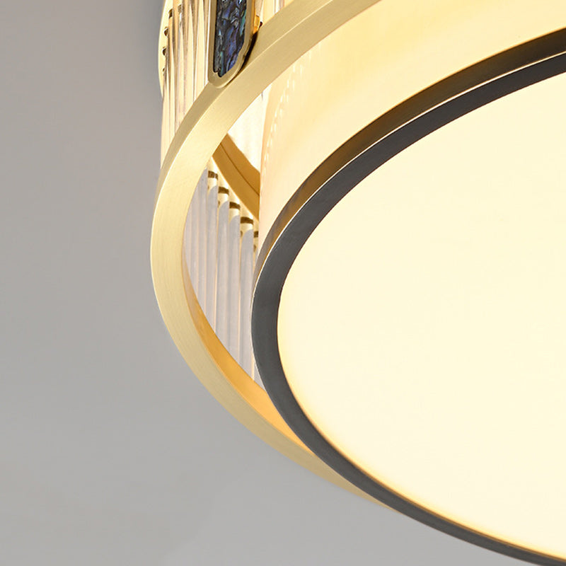 伝統的な中国製の真鍮とガラスの円形、正方形、長方形の縞模様のガラスのLEDフラッシュマウント天井ライト、寝室とリビングルーム用