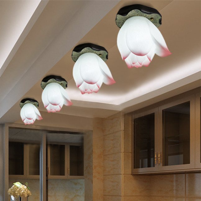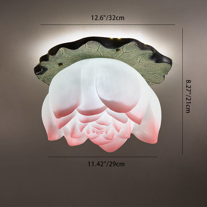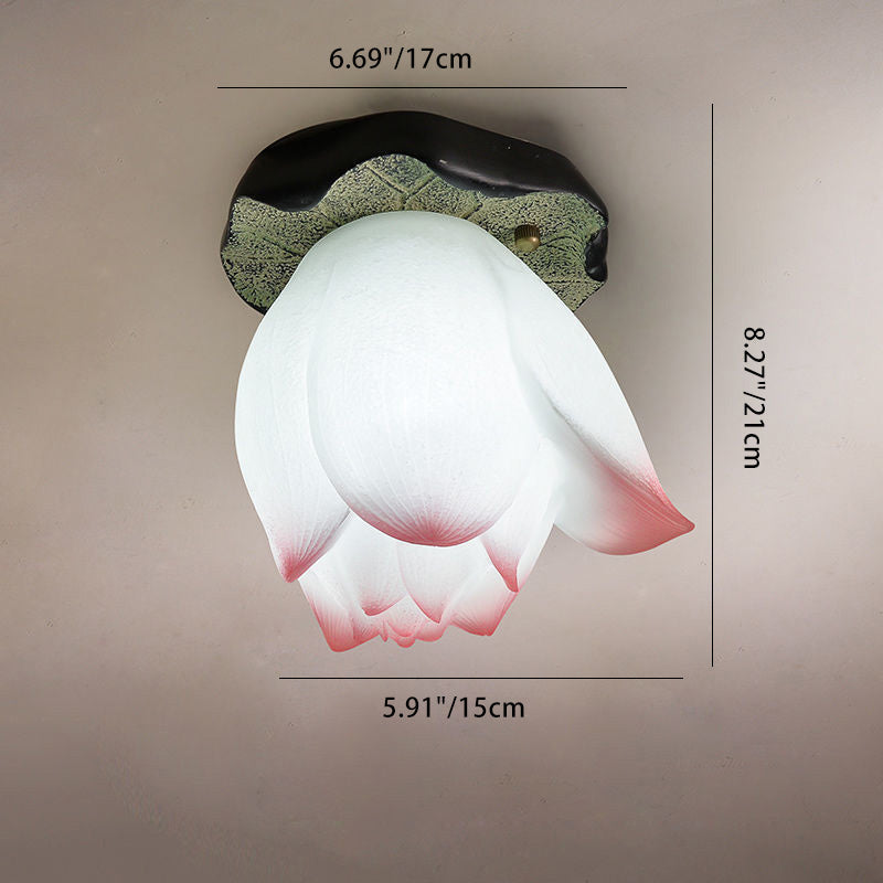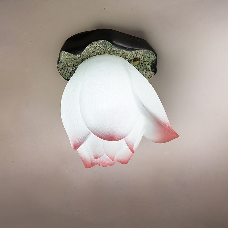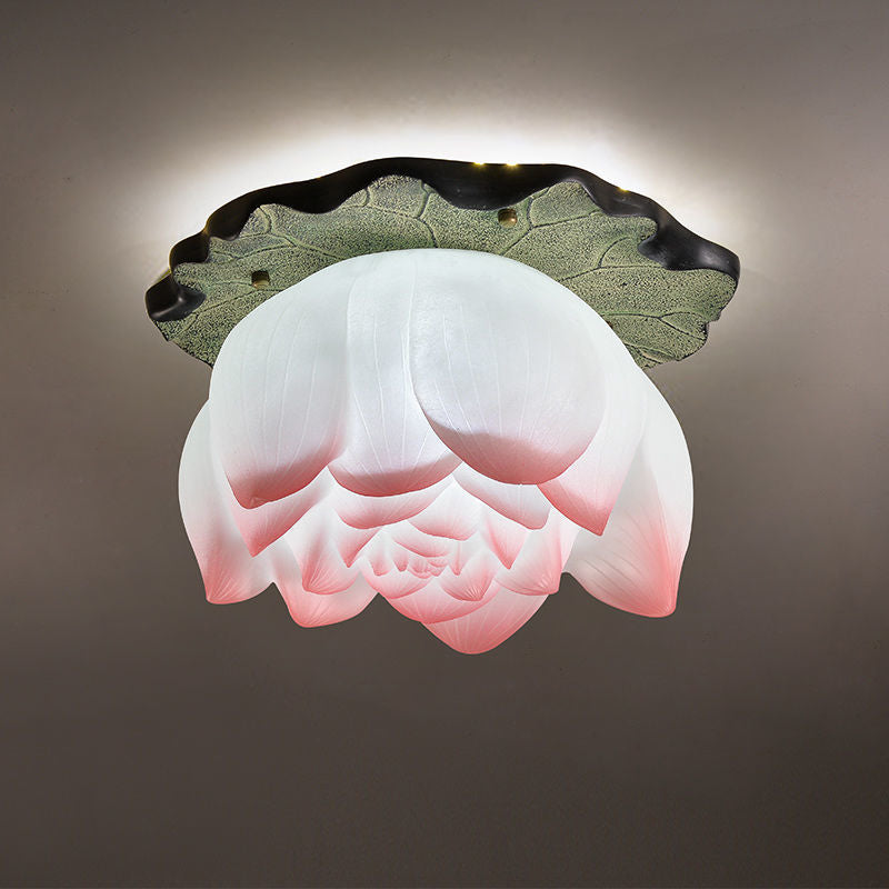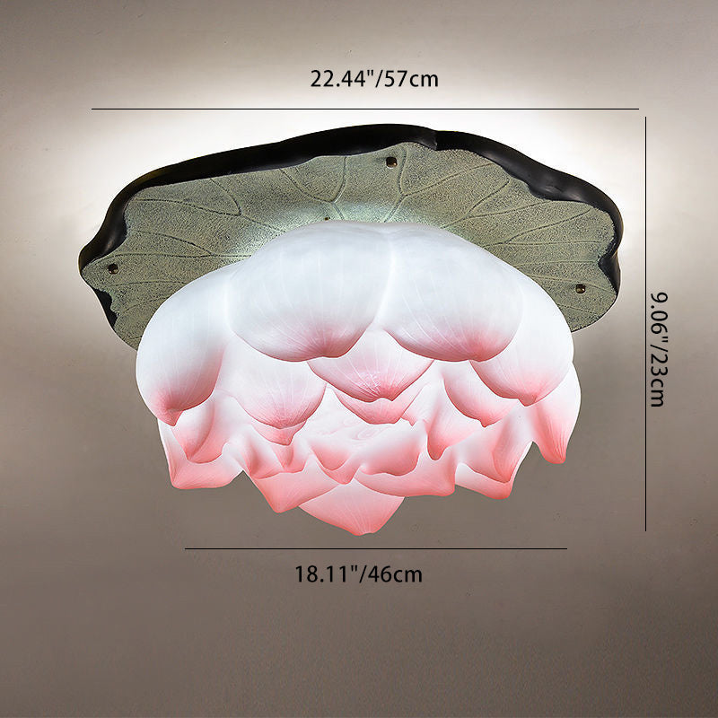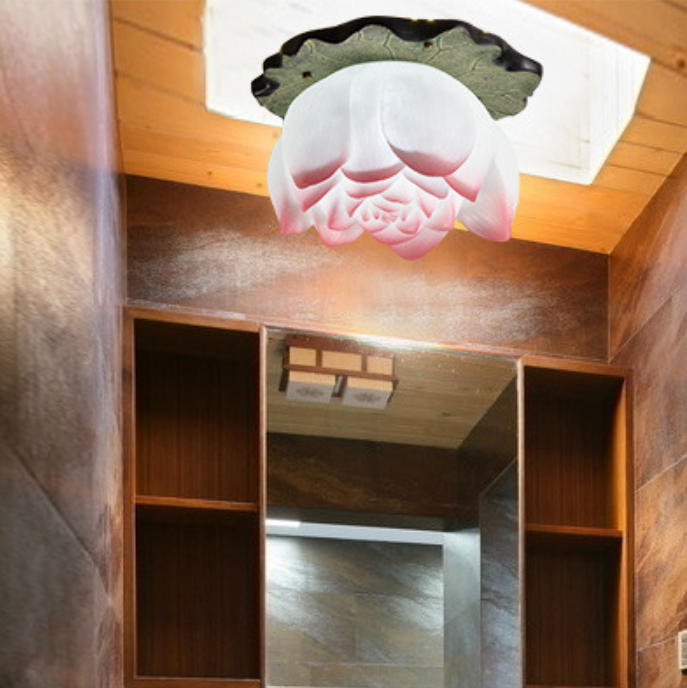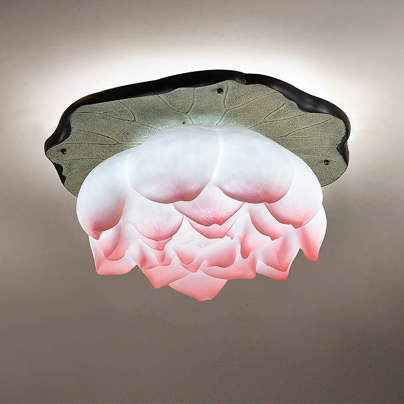 伝統的な中国の蓮の形をした樹脂製金具 1灯 セミフラッシュマウント リビングルーム用シーリングライト