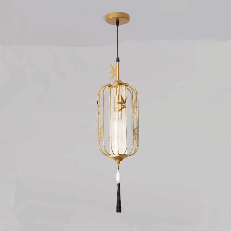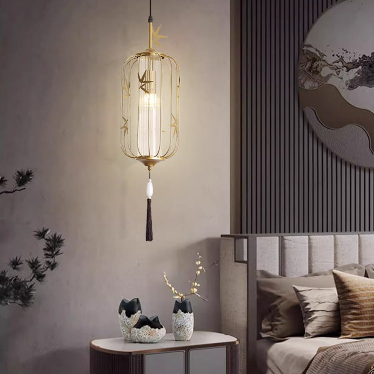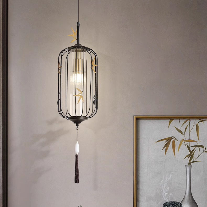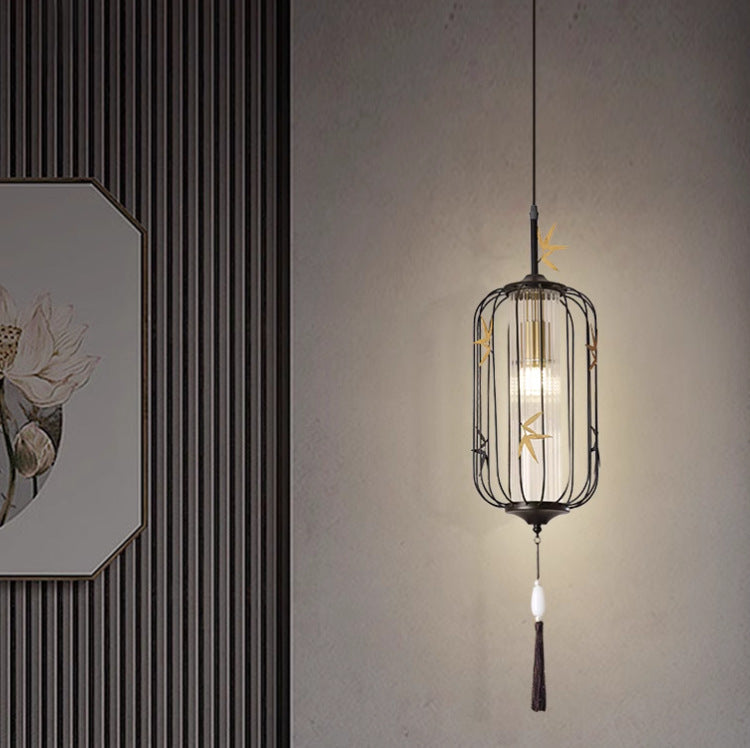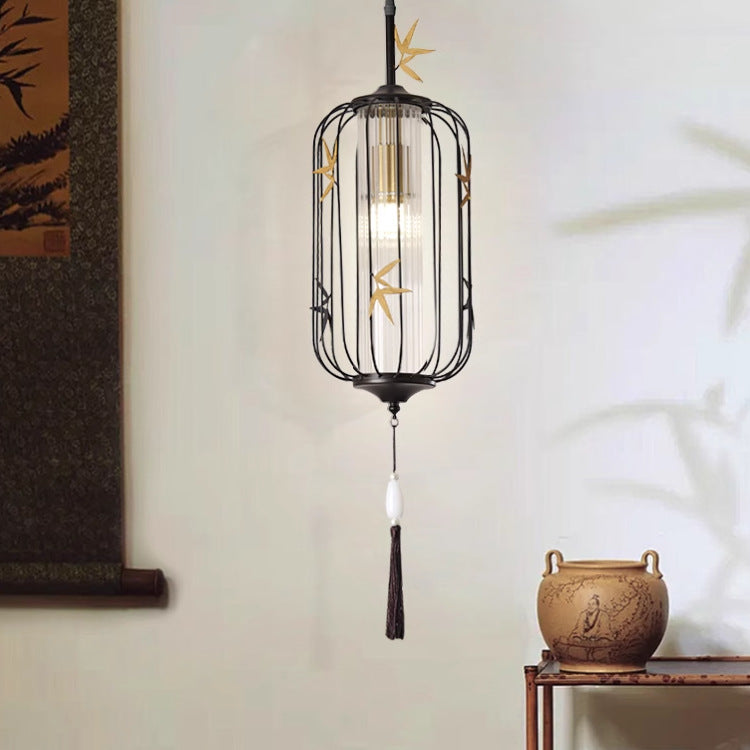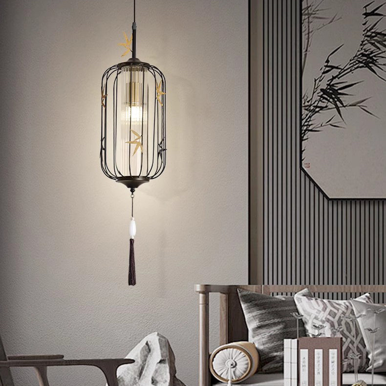 伝統的な中国のメープルリーフランタン透かし彫りアクリル鉄製1灯ペンダントライト寝室用