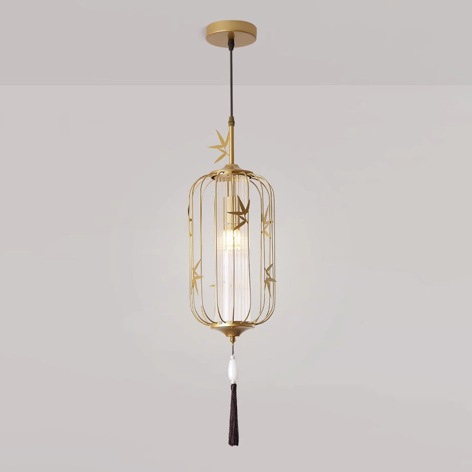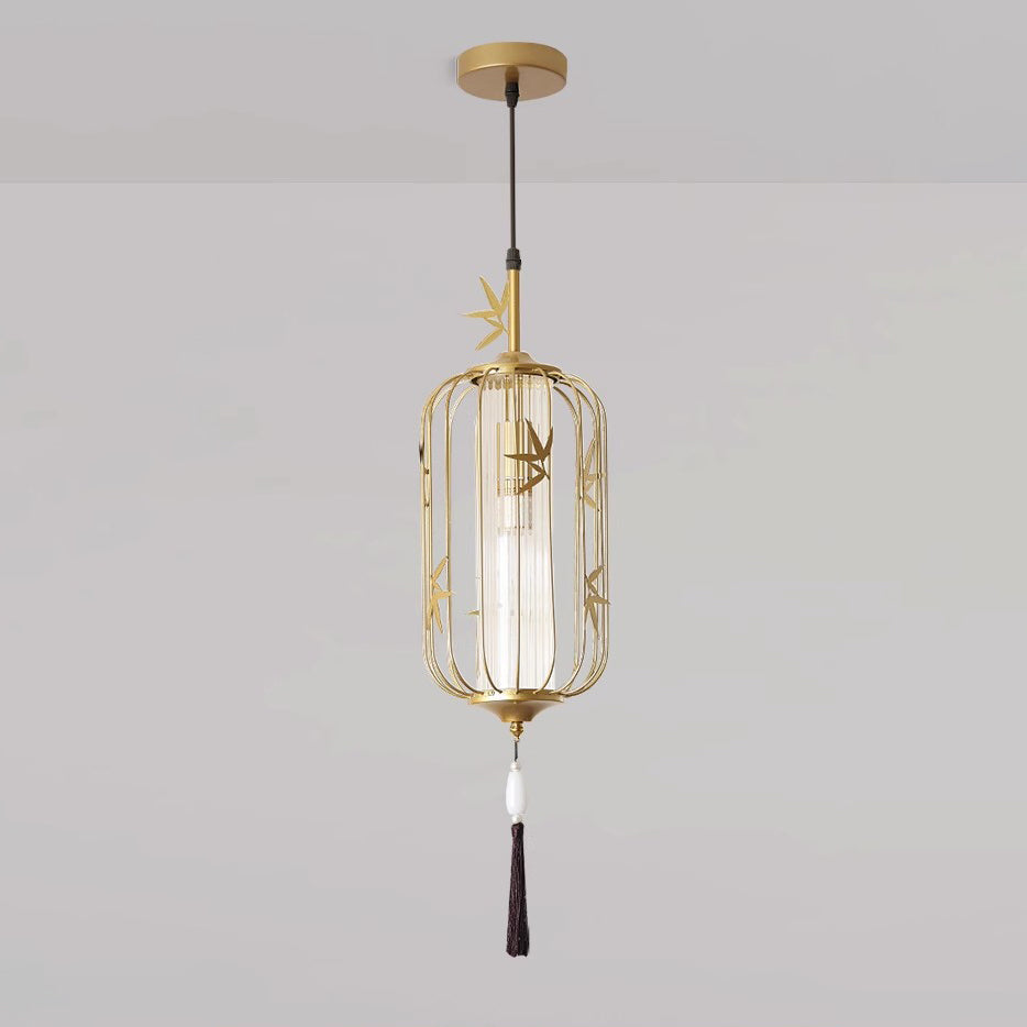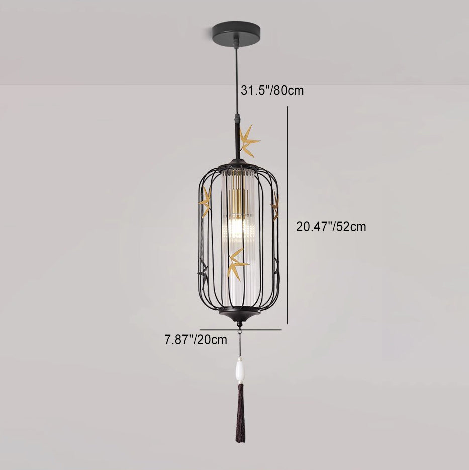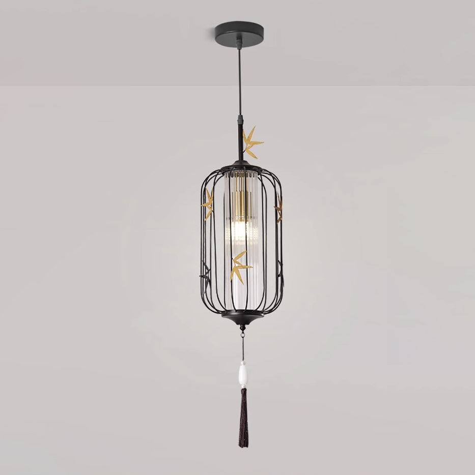 伝統的な中国のメープルリーフランタン透かし彫りアクリル鉄製1灯ペンダントライト寝室用