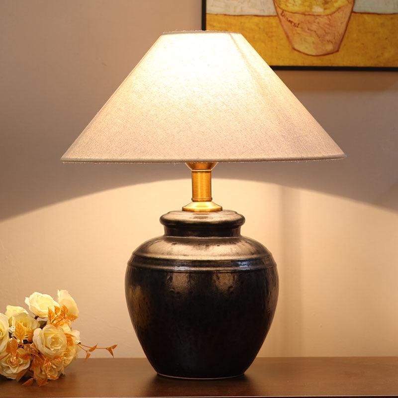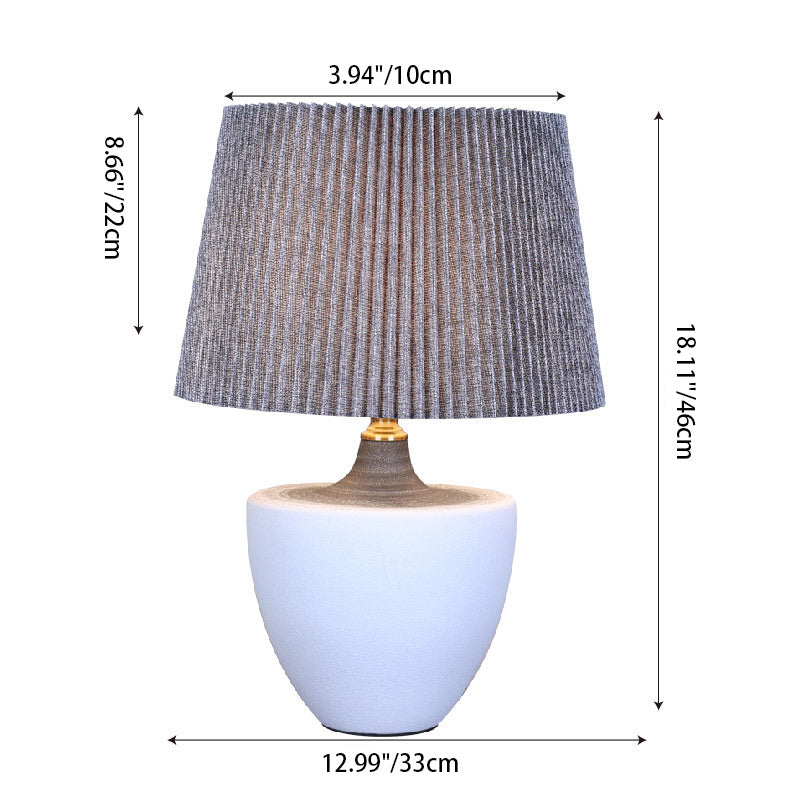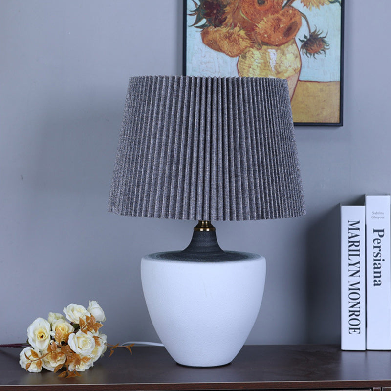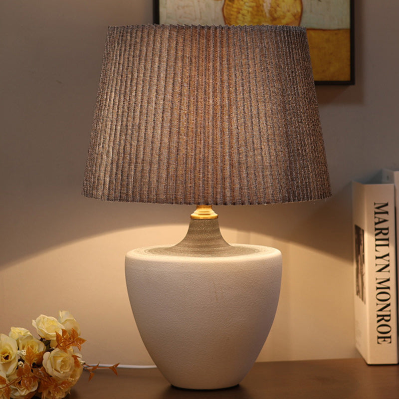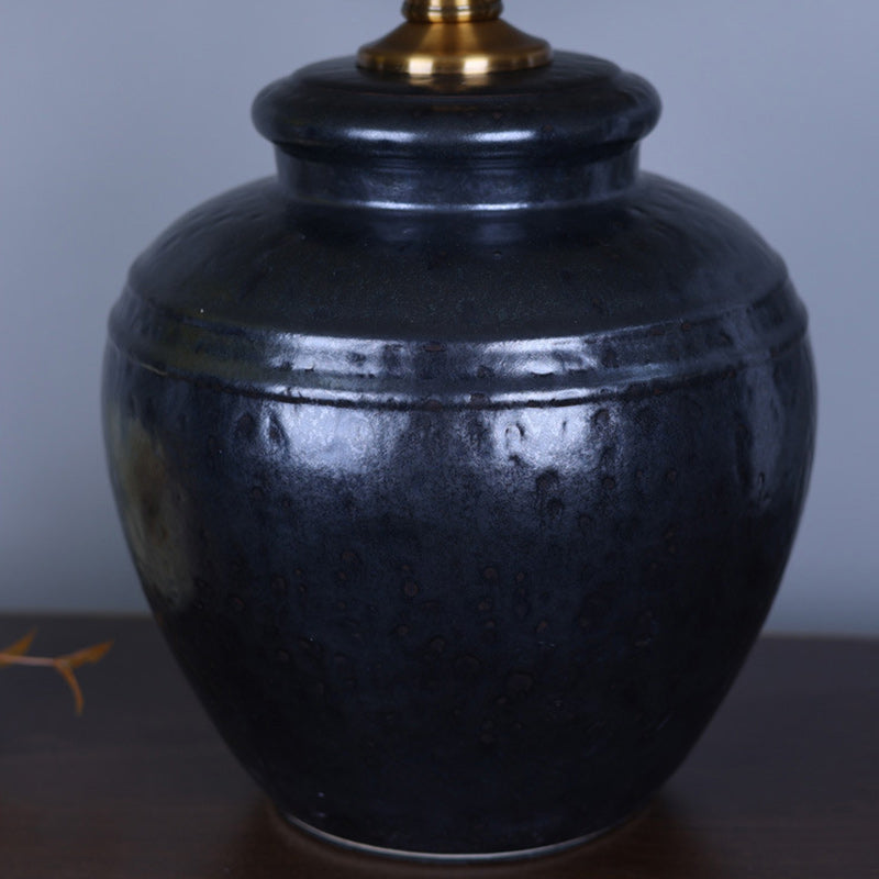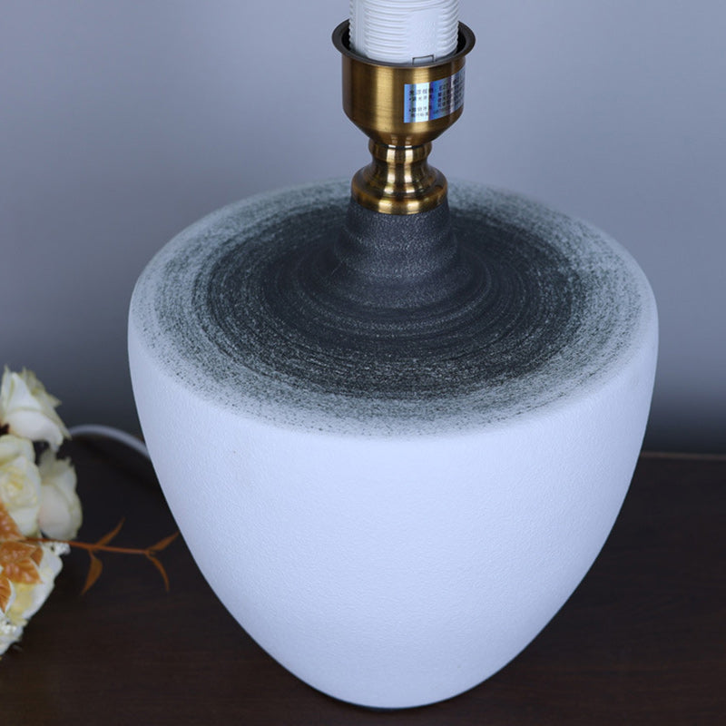 Traditional Chinese Oval Cylinder Round Table Jar-like Ceramic Fabric 1-Light Table Lamp For Bedroom