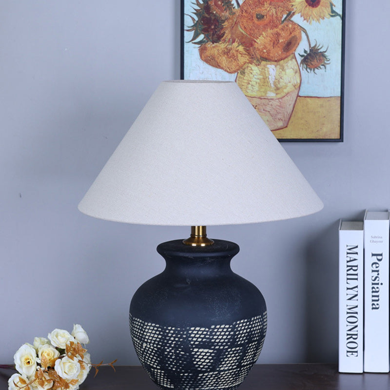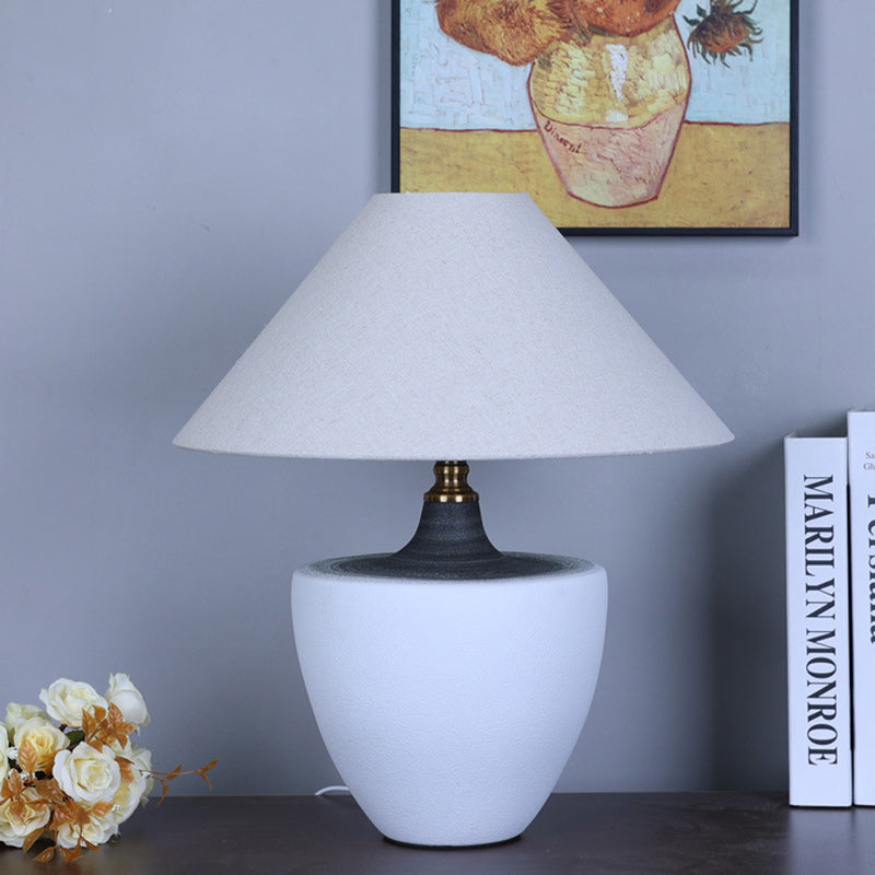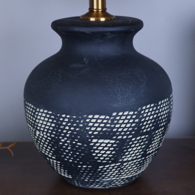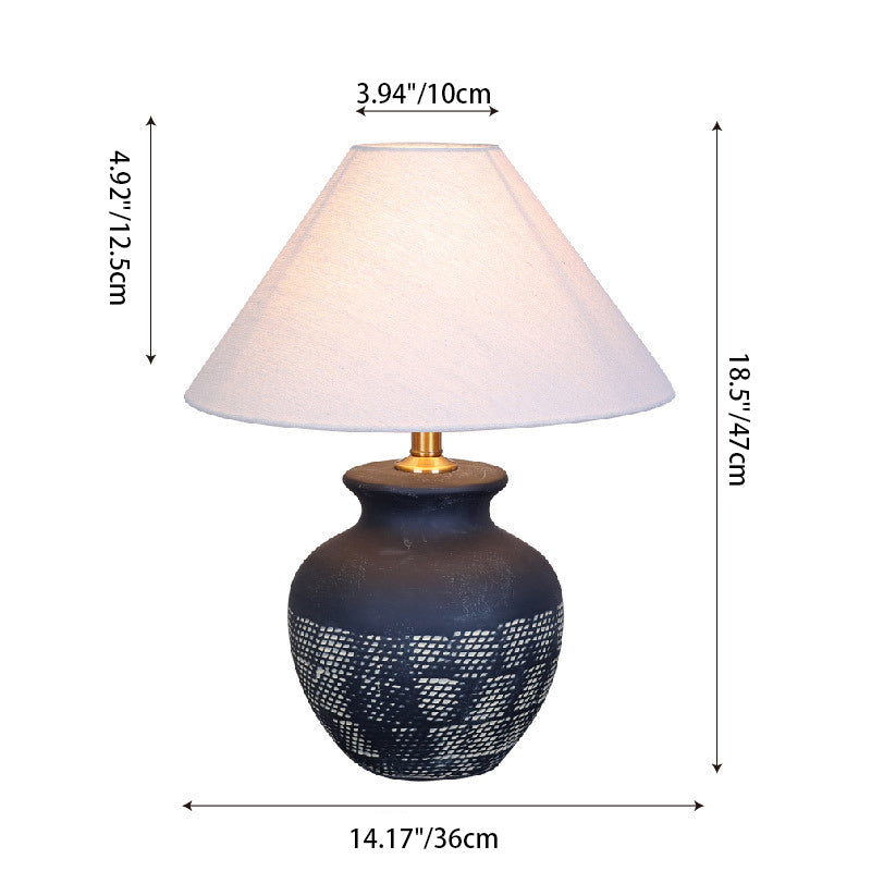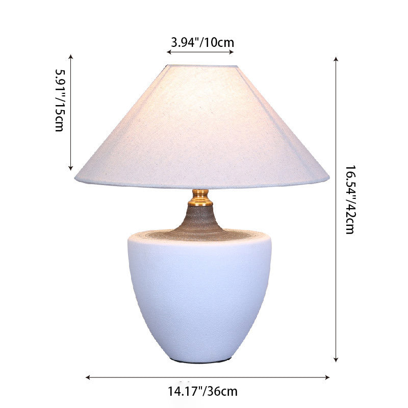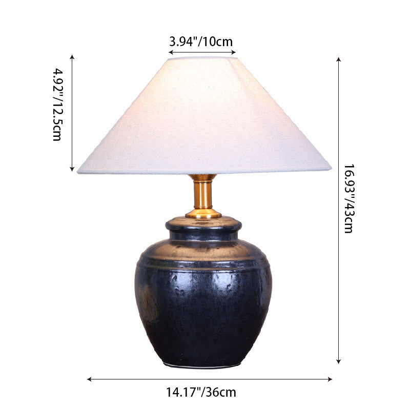 Traditional Chinese Oval Cylinder Round Table Jar-like Ceramic Fabric 1-Light Table Lamp For Bedroom