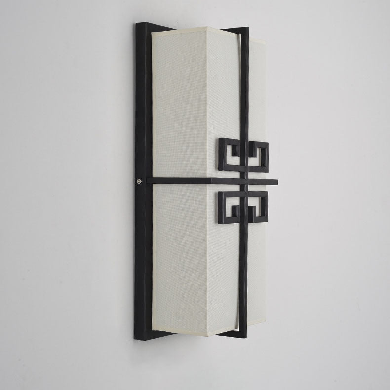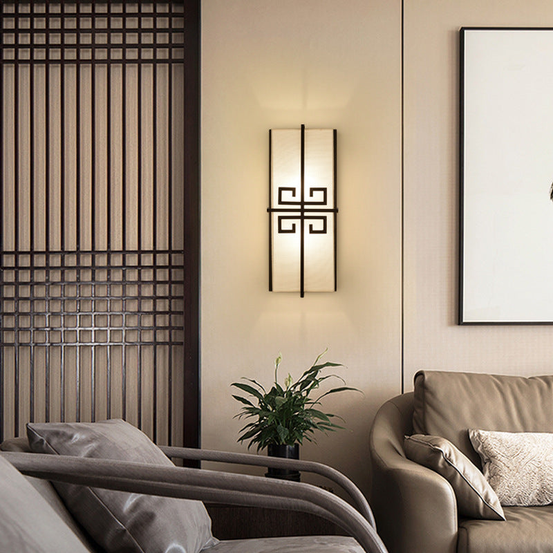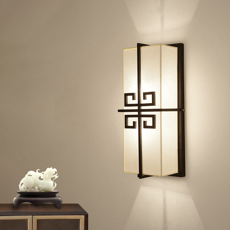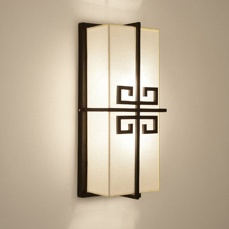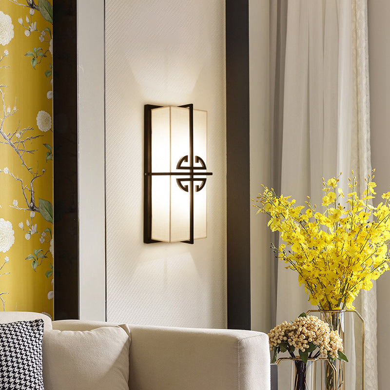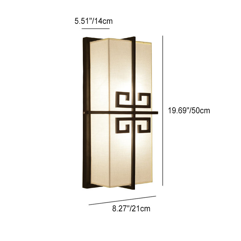 伝統的な中国風長方形アイアンファブリック2灯壁取り付け用燭台ランプ(リビングルーム用)