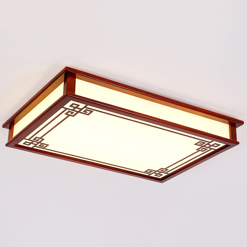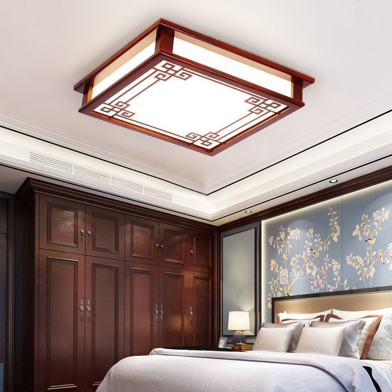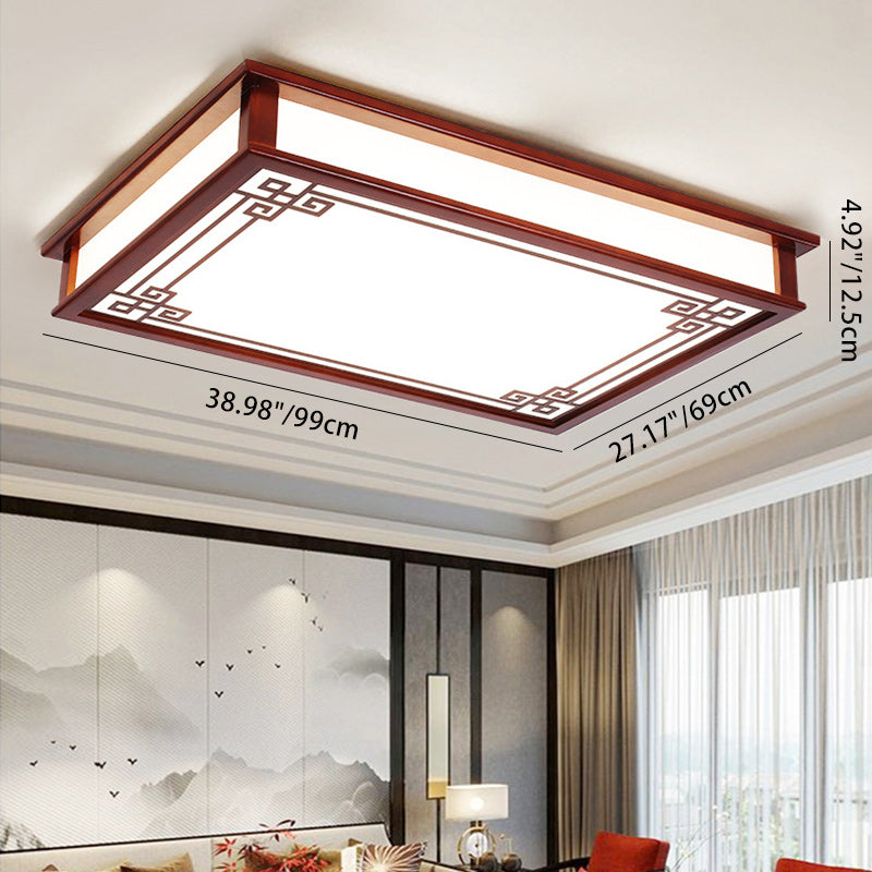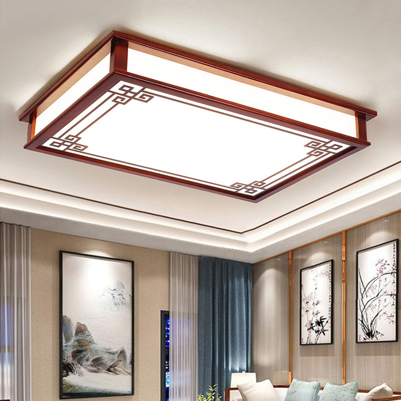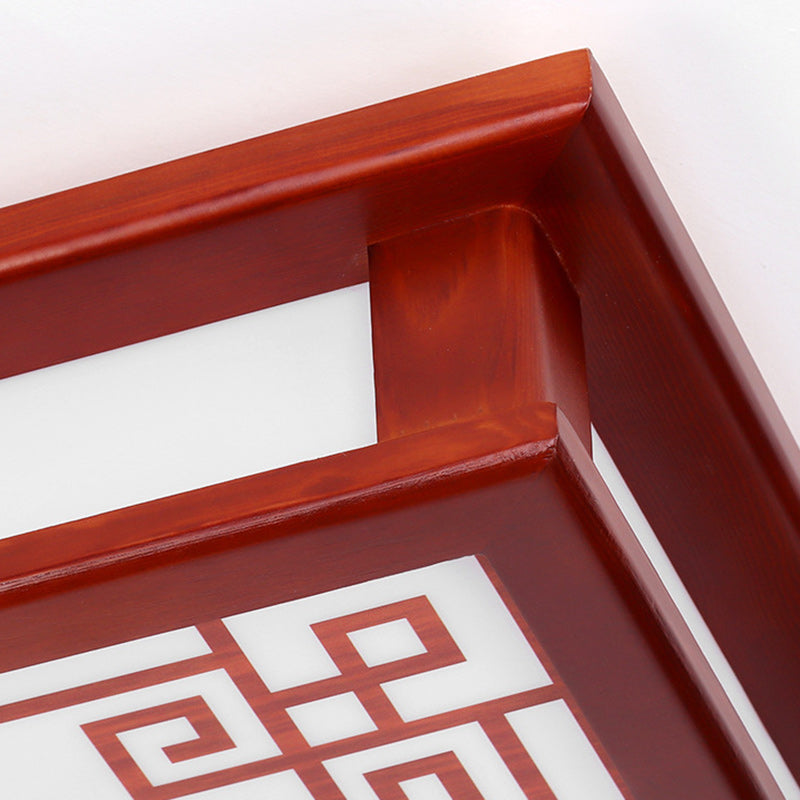 伝統的な中国風長方形正方形模様の木製PVC LEDフラッシュマウントシーリングライト(リビングルーム用)