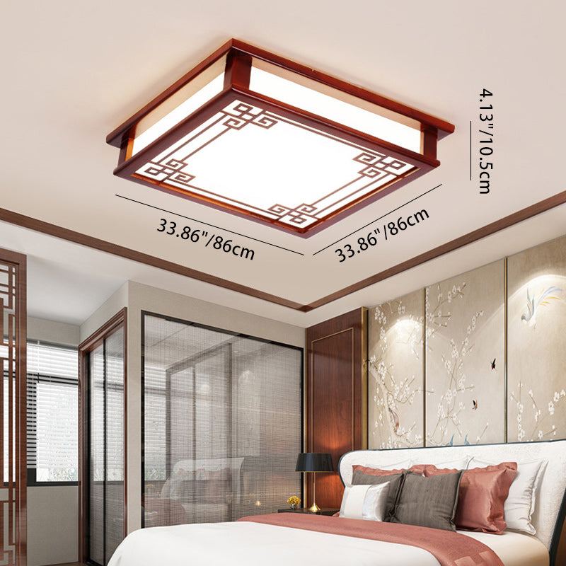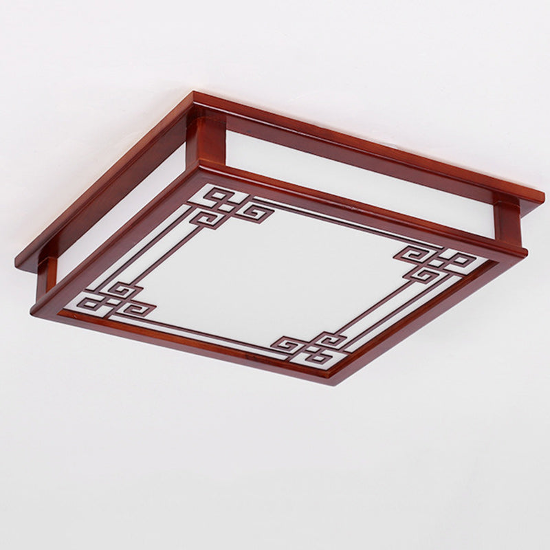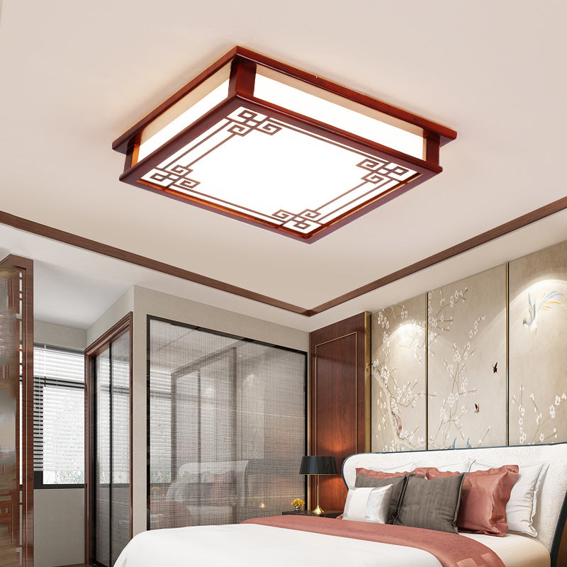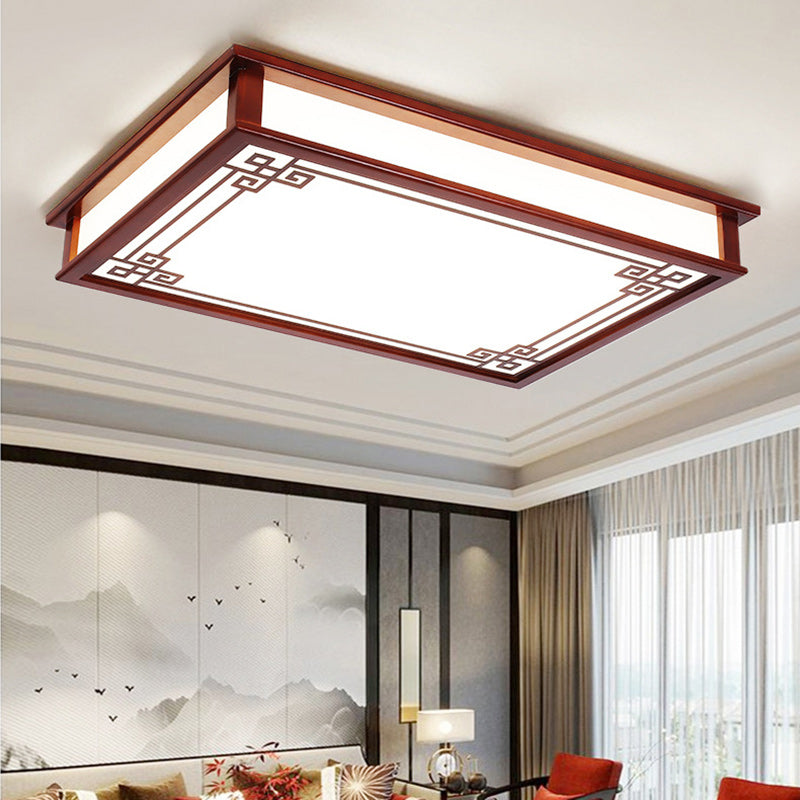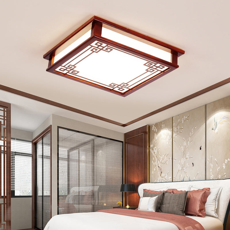 伝統的な中国風長方形正方形模様の木製PVC LEDフラッシュマウントシーリングライト(リビングルーム用)