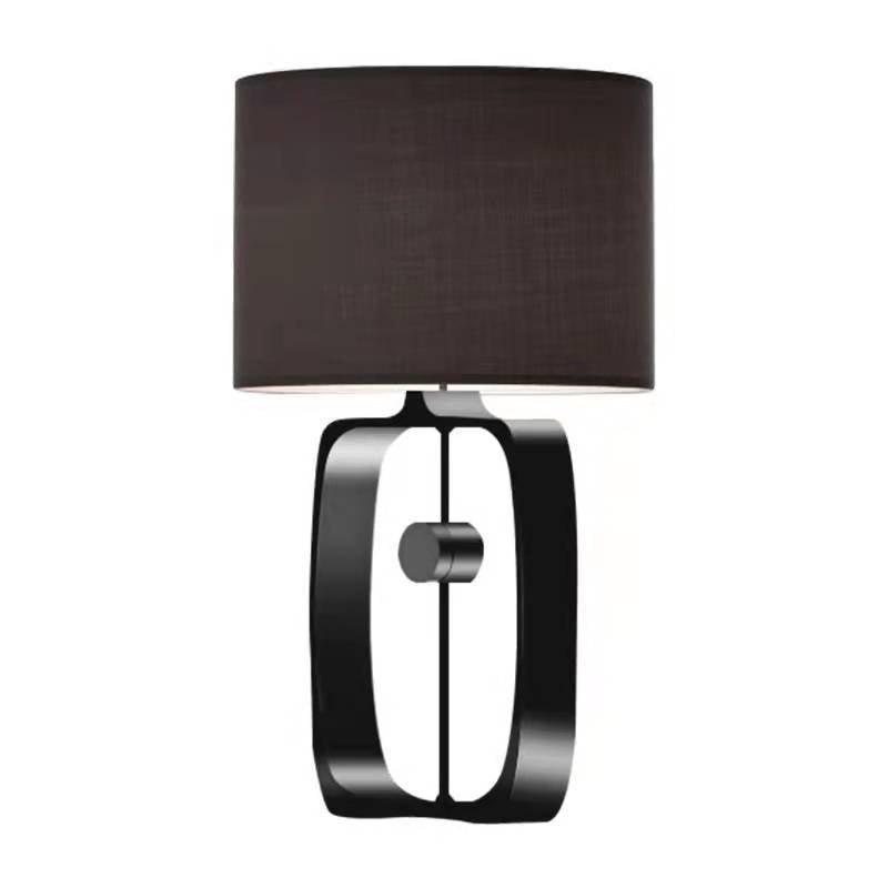 Traditional Chinese Rectangular Cylinder Hollowed Out Iron Fabric 1-Light Table Lamp For Bedroom