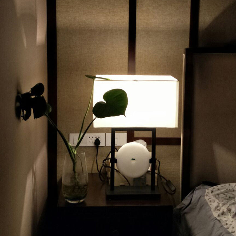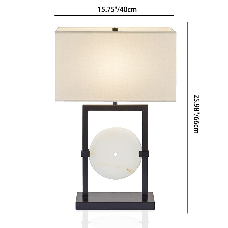 Traditional Chinese Rectangular Frame Round Hardware Marble Fabric 1-Light Table Lamp For Bedroom