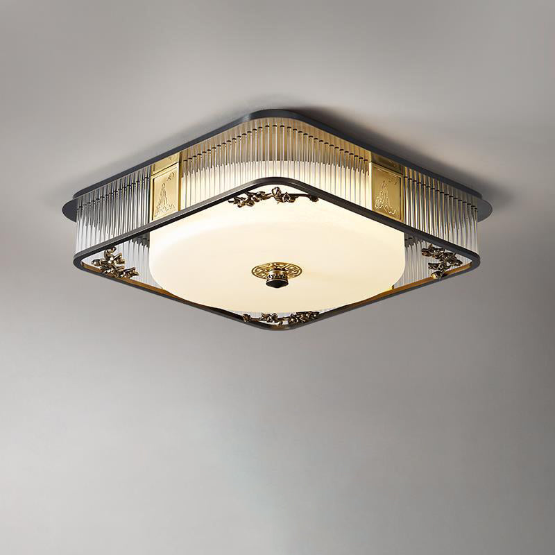 寝室用伝統的な中国製丸型銅ステンレススチールガラスLEDフラッシュマウントシーリングライト