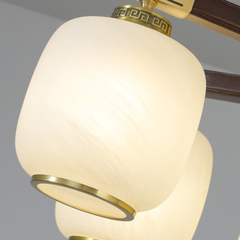 伝統的な中国製の円形シリンダー、黒檀、銅、ガラス、10灯のリビングルーム用シャンデリア