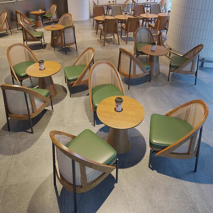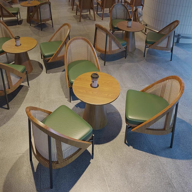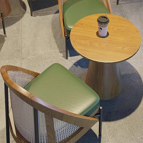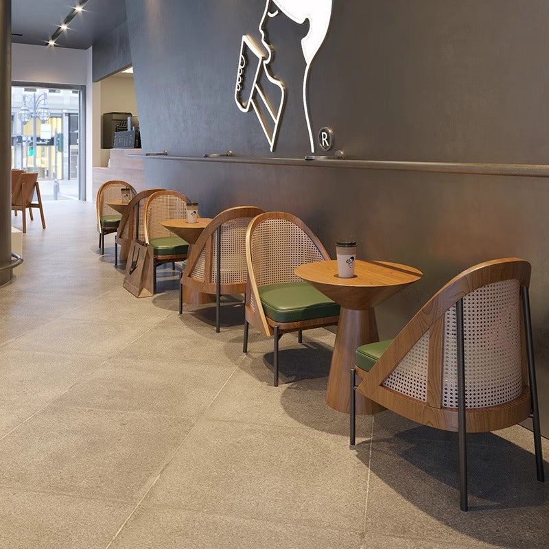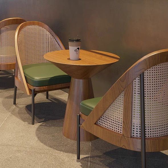 Traditional Chinese Square Trapezoidal Napa Leather Solid Wood Rattan Wood Dining Chair Backrest For Dining Room