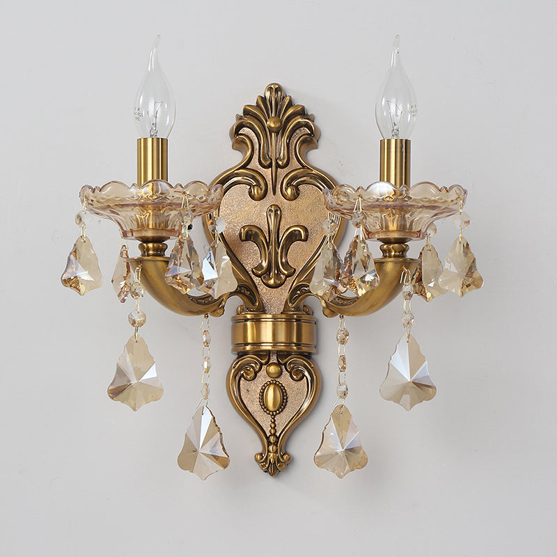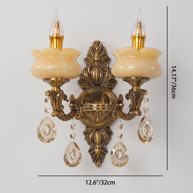 伝統的なヨーロッパのキャンドルホルダー、花柄亜鉛合金翡翠クリスタル2灯壁取り付け用燭台ランプ、リビングルーム用