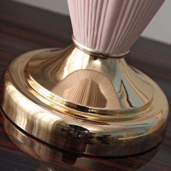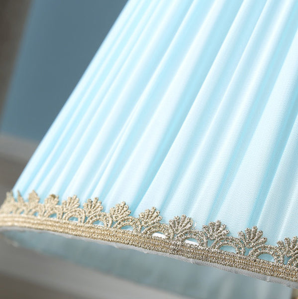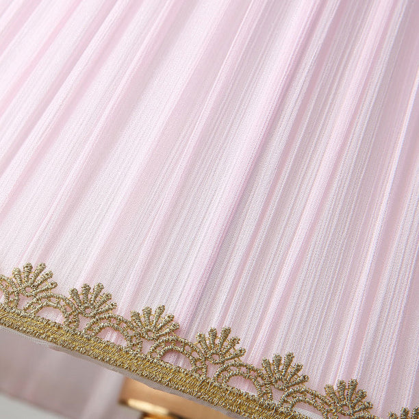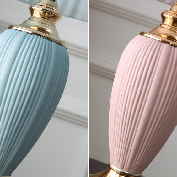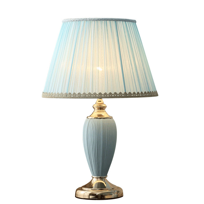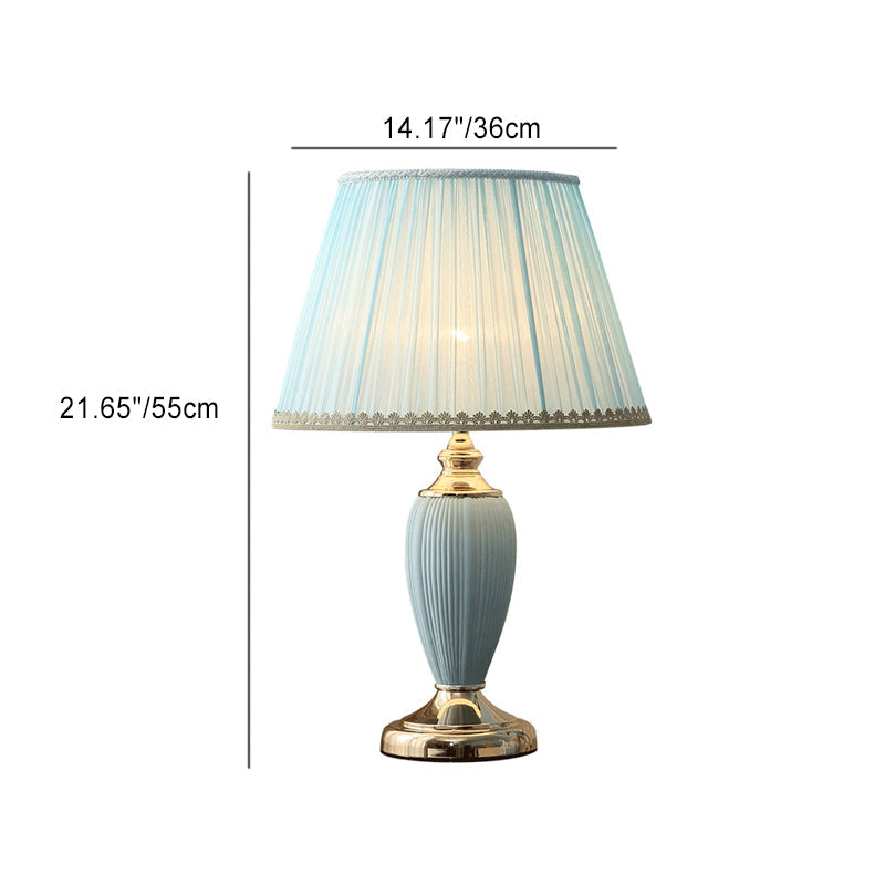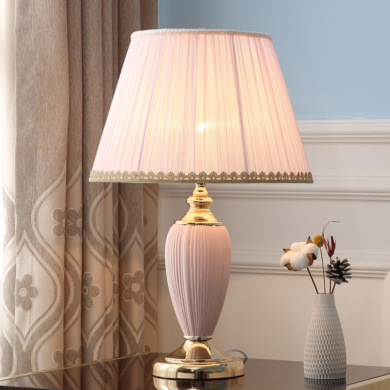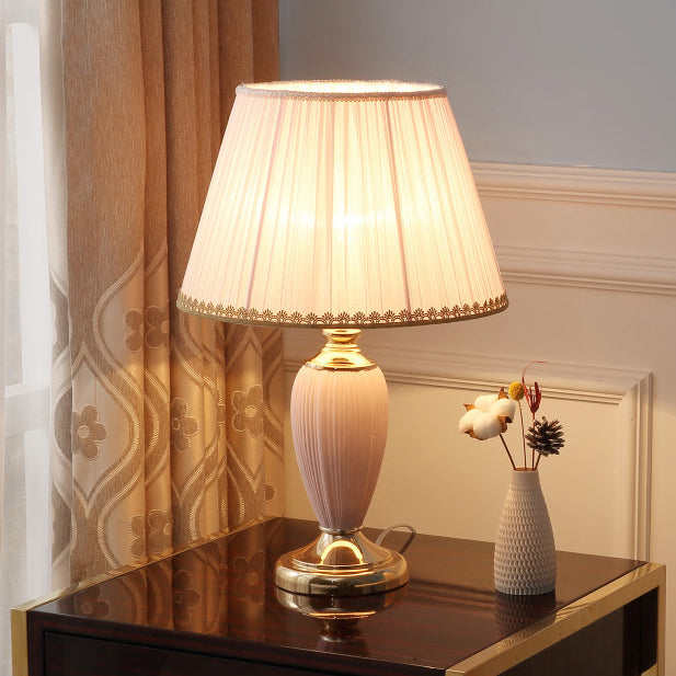 Traditional European Pleated Fabric Shade Ceramic Column Base 1-Light Table Lamp For Bedroom