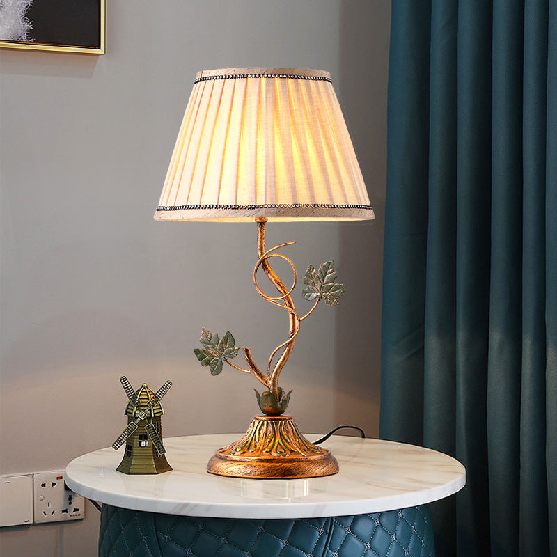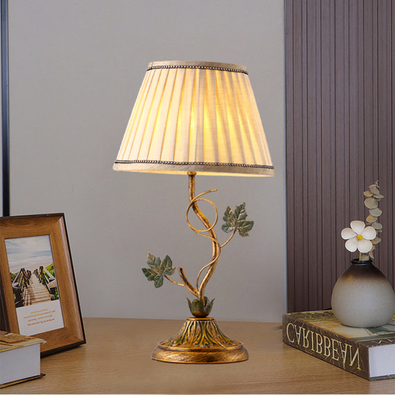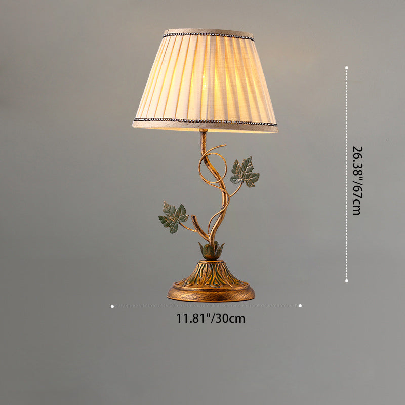 Traditional Farmhouse Fabric Iron Leaf Curved Round 1-Light Table Lamp For Bedroom & Living Room