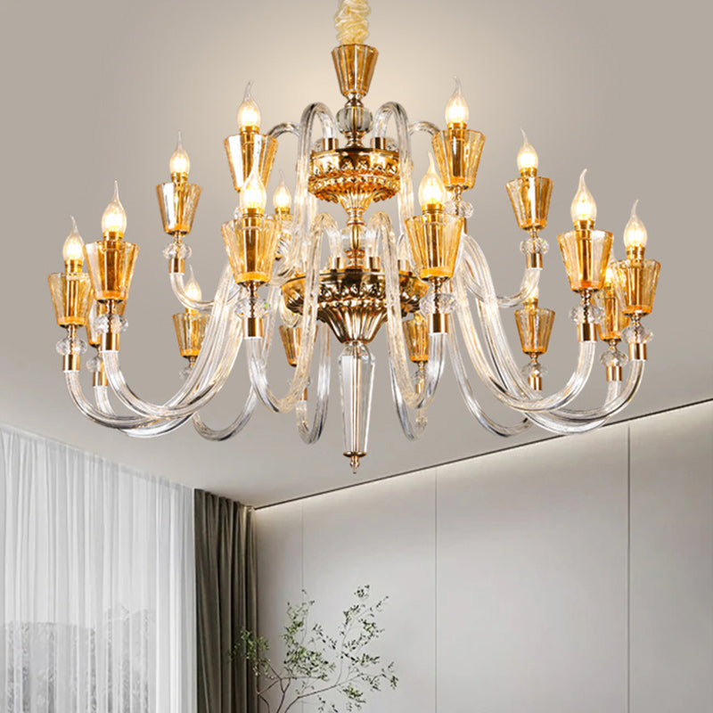 伝統的なフレンチキャンドル型ガラスランプシェード 合金18 - リビングルーム用ライトシャンデリア