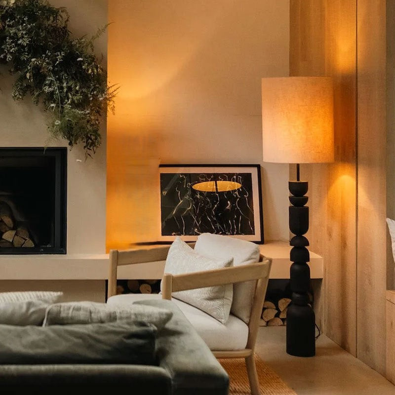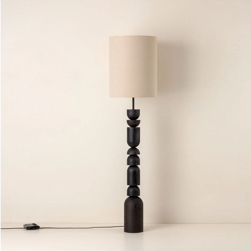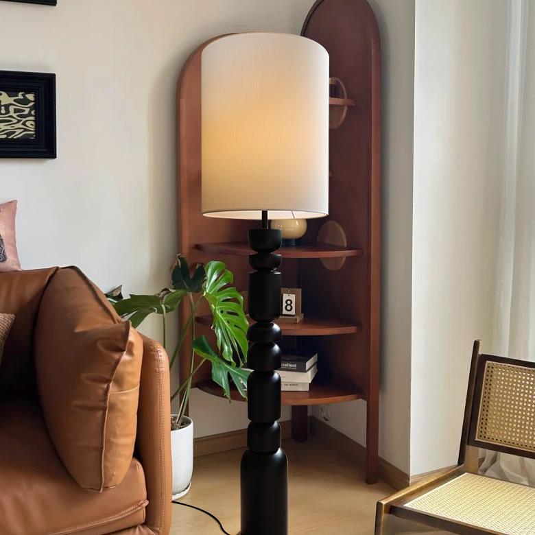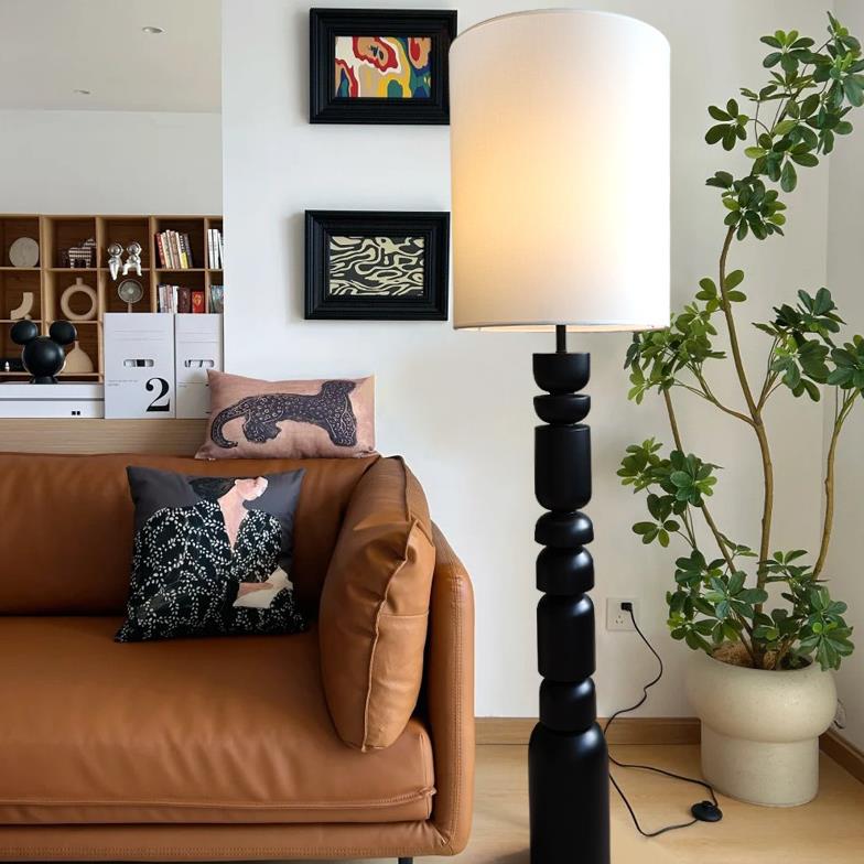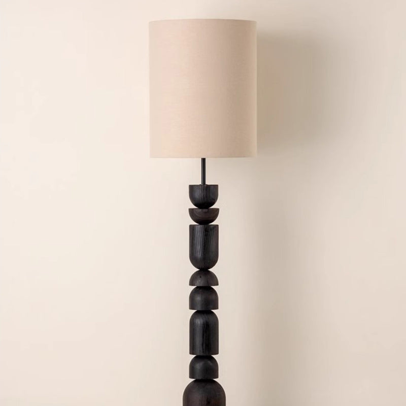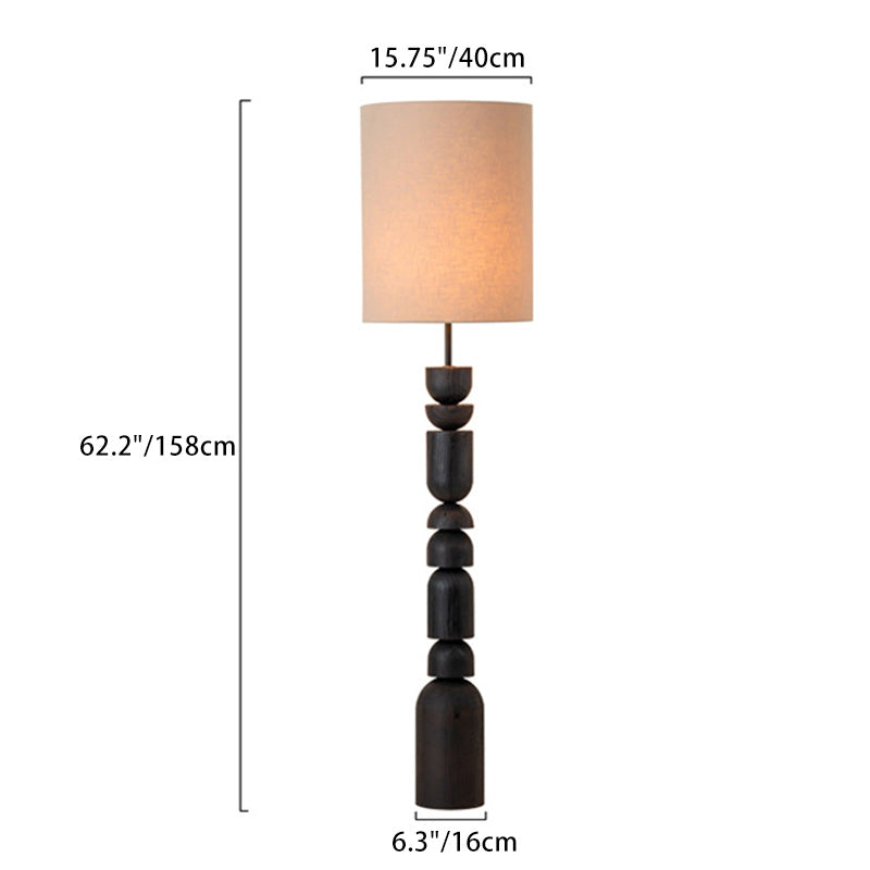 Traditional French Cylinder Half Circle Cascade Combination Wooden Fabric 1-Light Standing Floor Lamp For Living Room