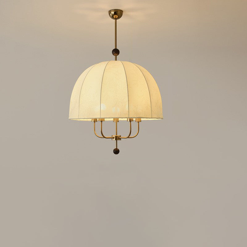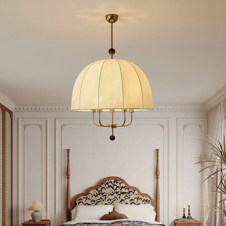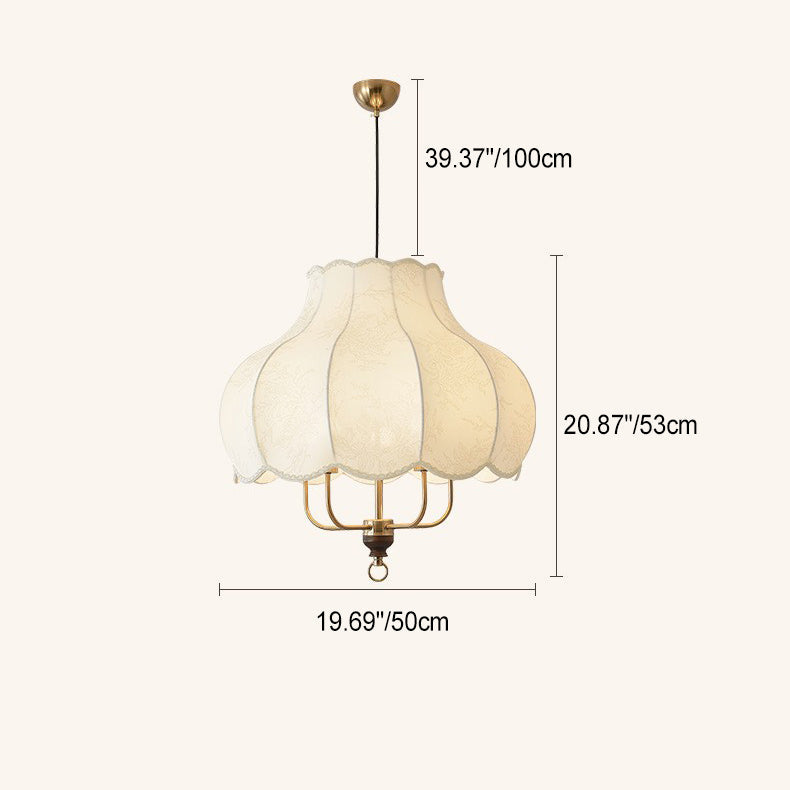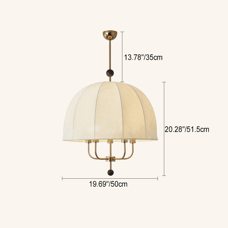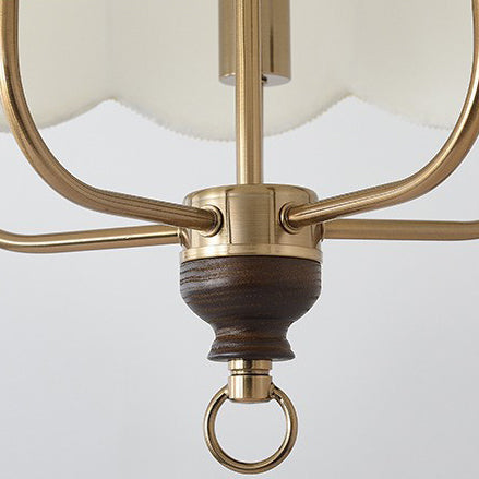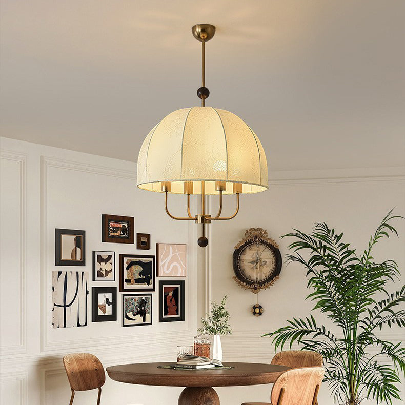 伝統的なフレンチドーム型ラウンドフラワーシェイプ木製アイアンフレームファブリック4/5ライトペンダントライトリビングルーム用