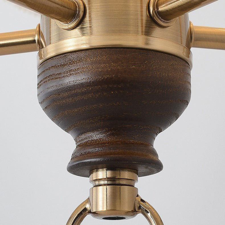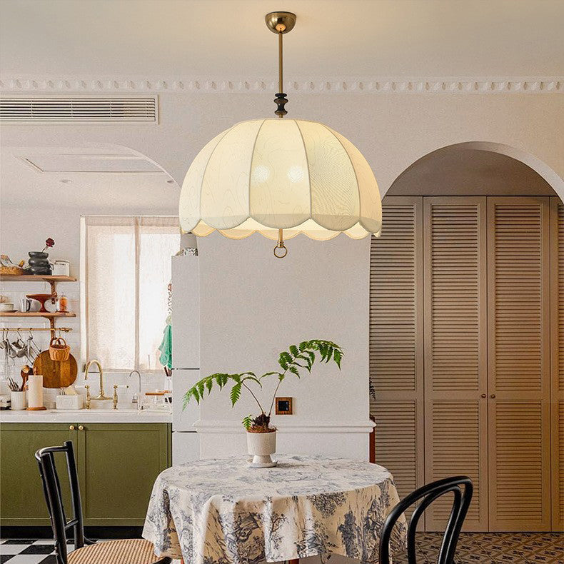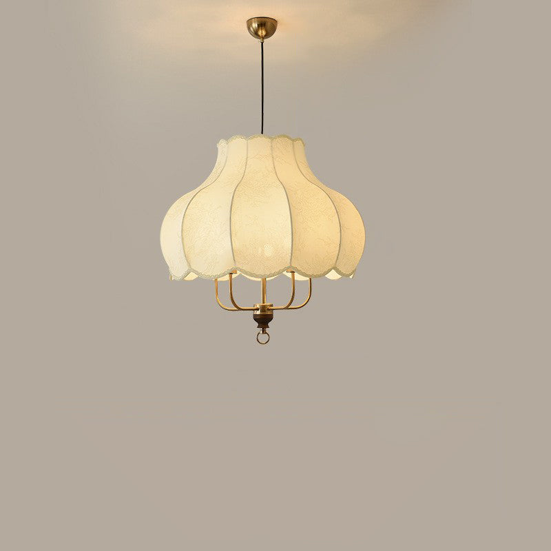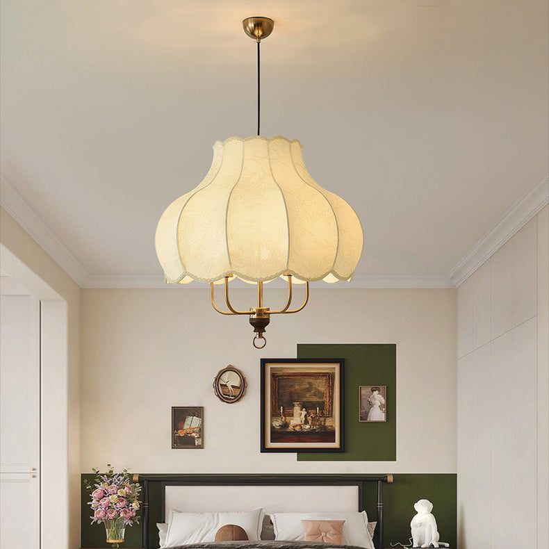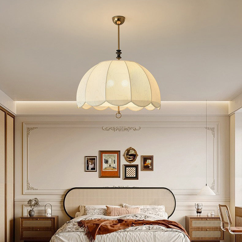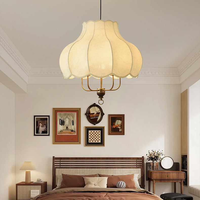 伝統的なフレンチドーム型ラウンドフラワーシェイプ木製アイアンフレームファブリック4/5ライトペンダントライトリビングルーム用