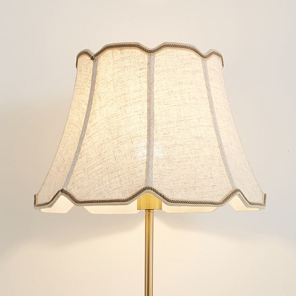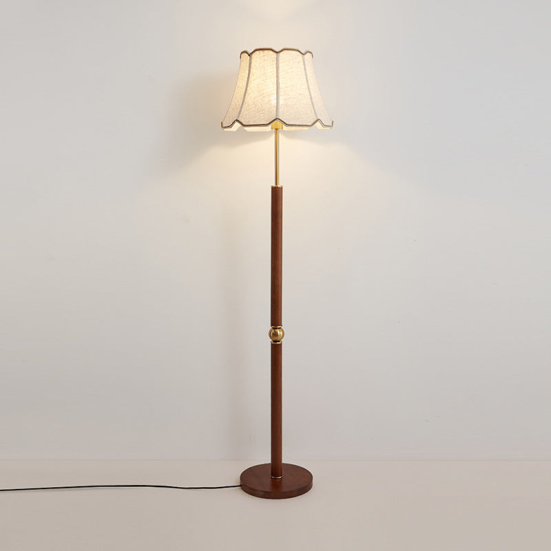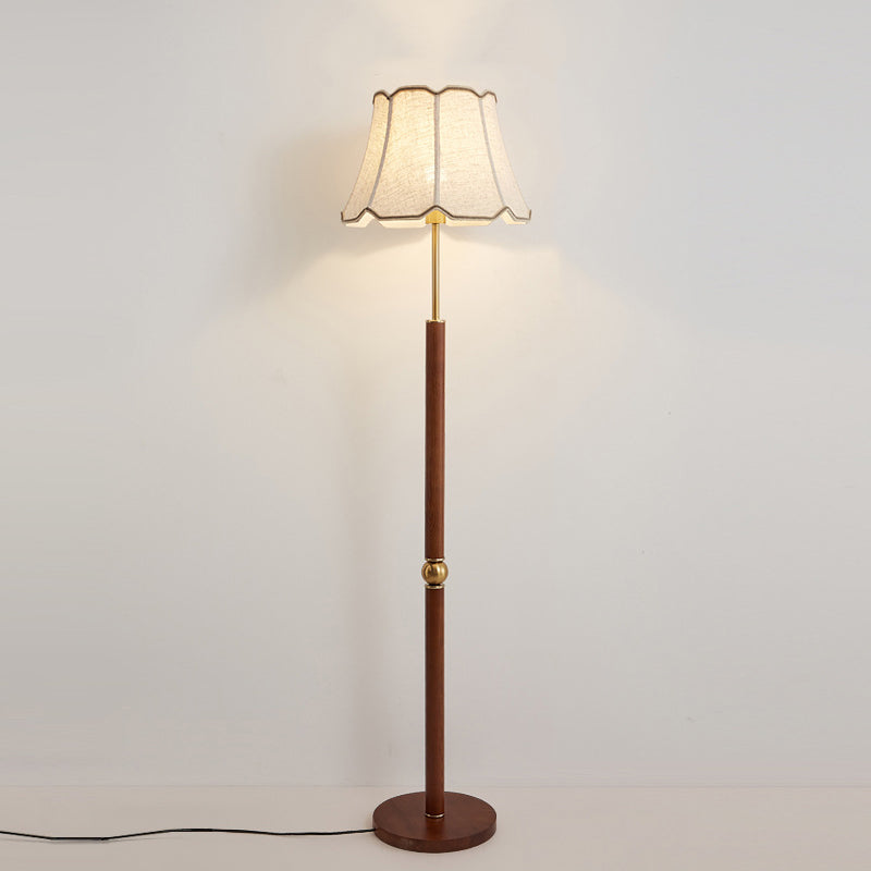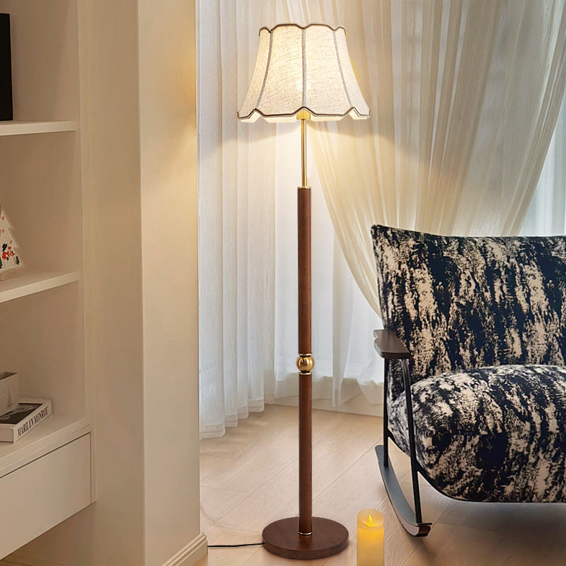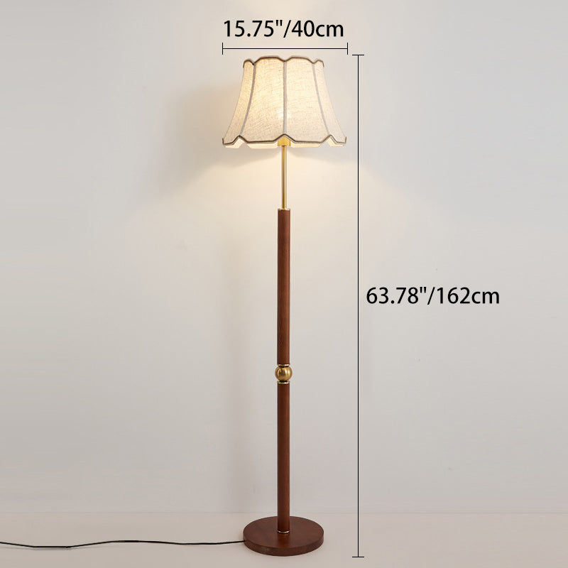 Traditional French Fabric Shade Hardware Solid Wood Base 1-Light Standing Floor Lamp For Bedroom