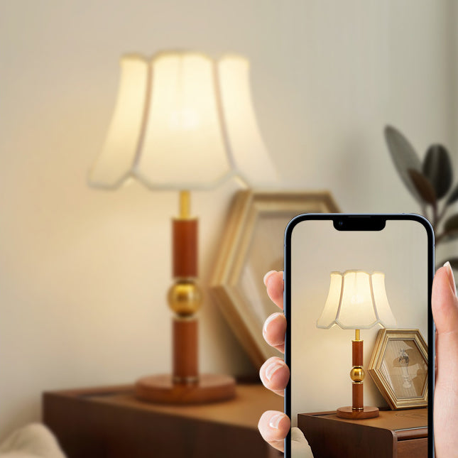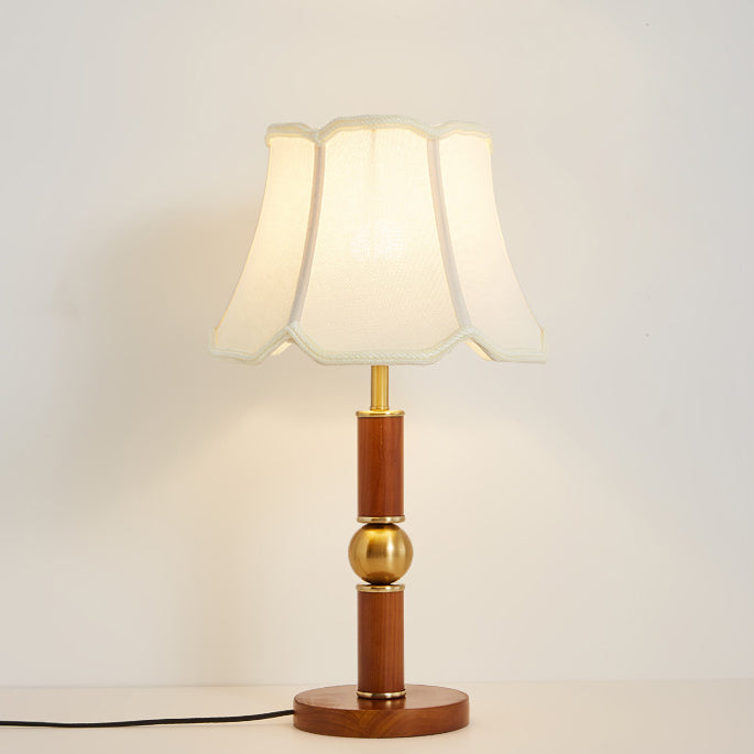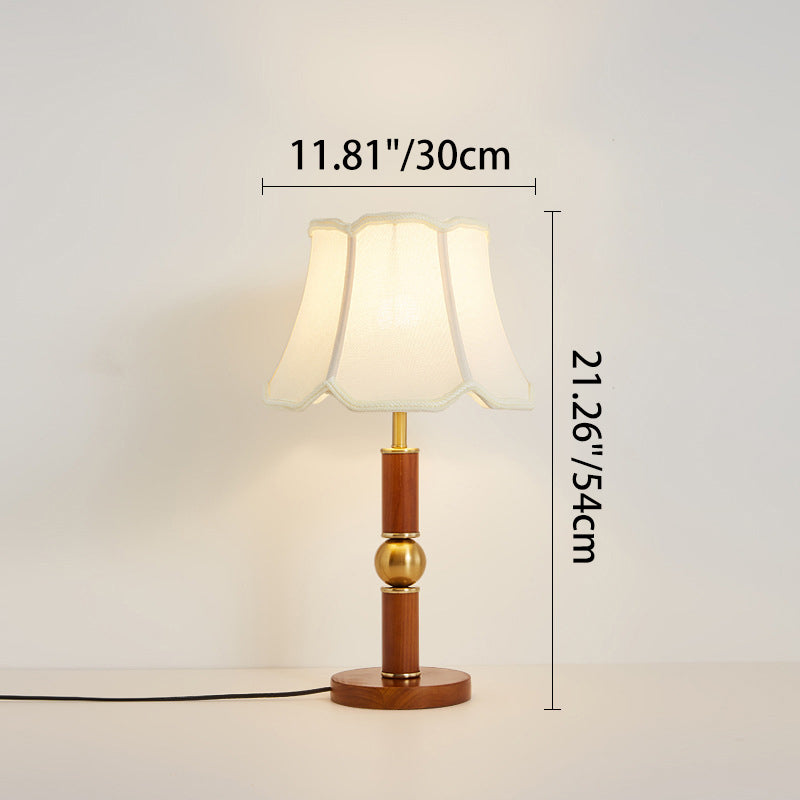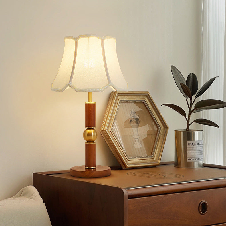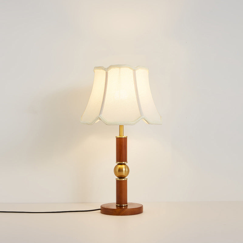 Traditional French Fabric Shade Hardware Solid Wood Base 1-Light Table Lamp For Bedroom