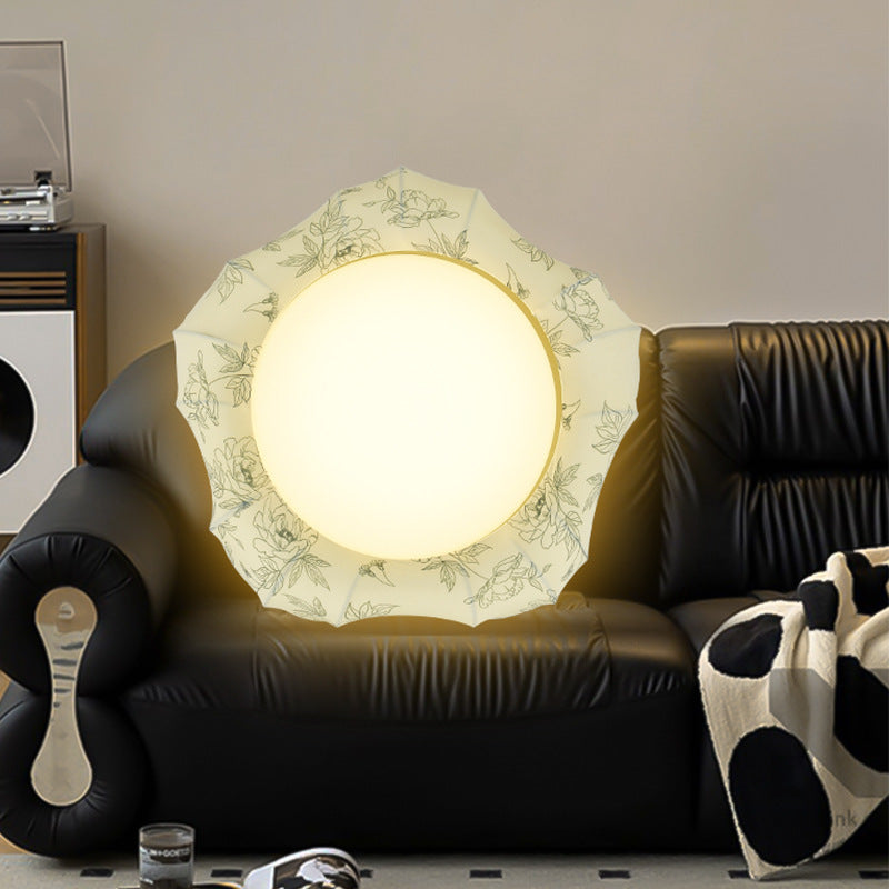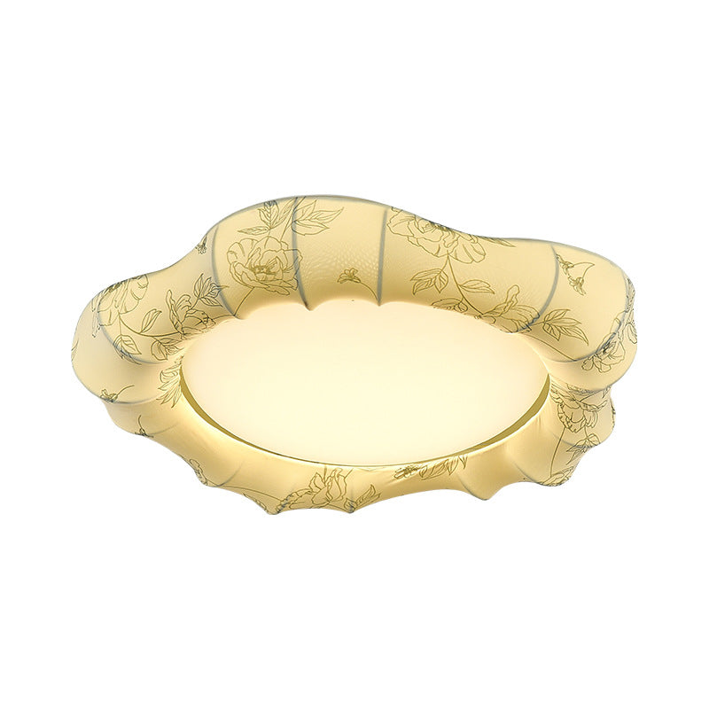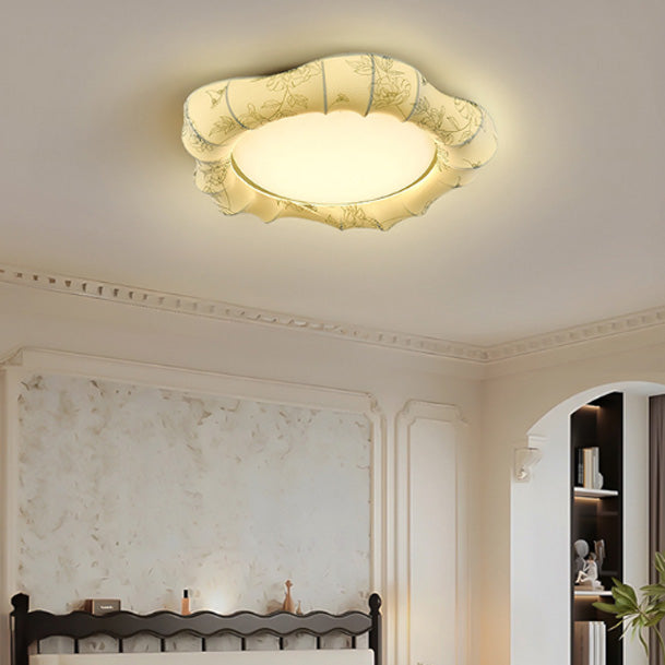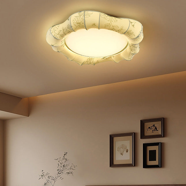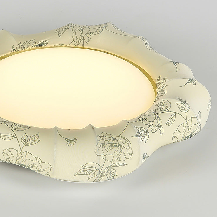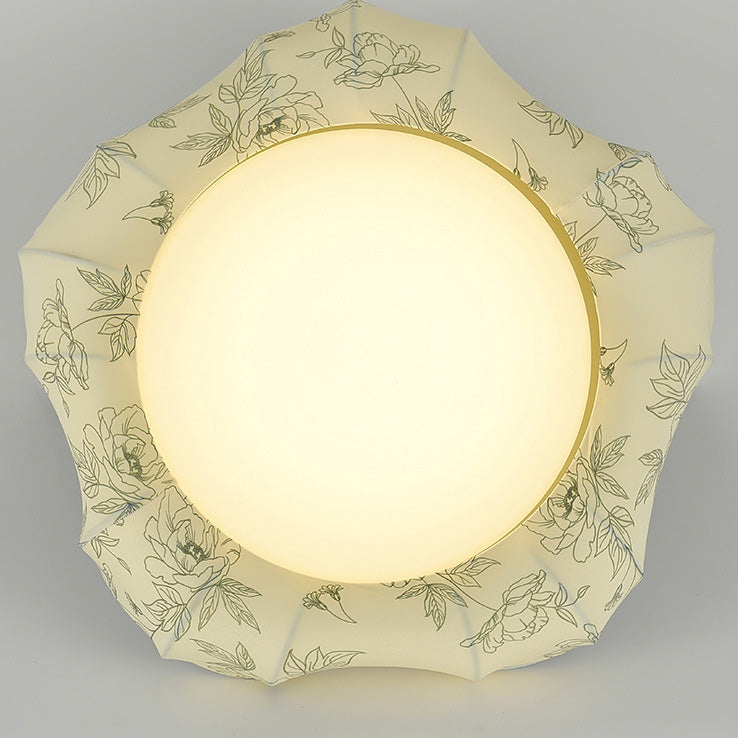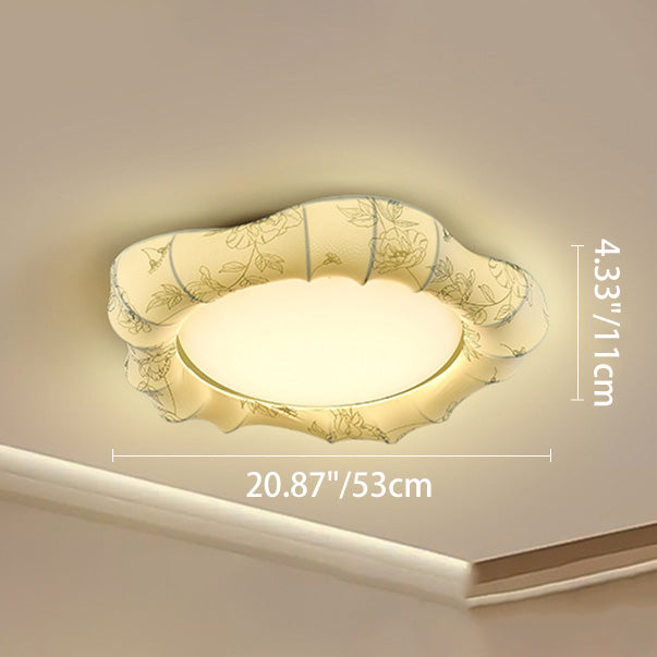 伝統的なフランスの花柄ファブリックシェード、アイアンLED調光機能付きフラッシュマウントシーリングライト(寝室用)