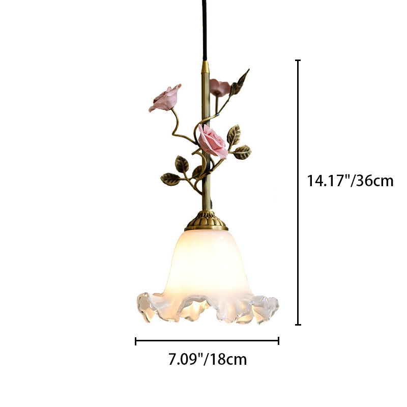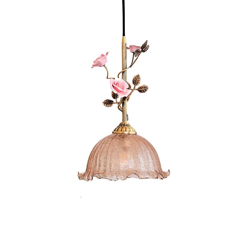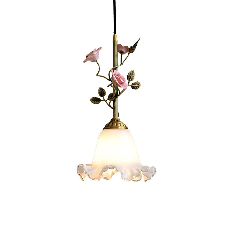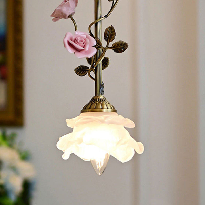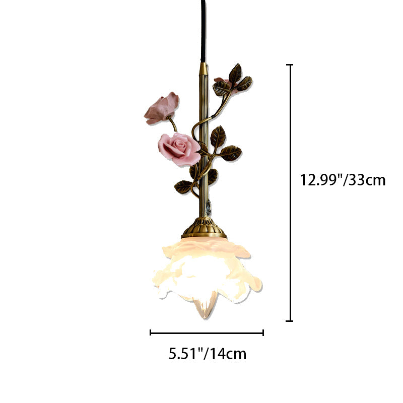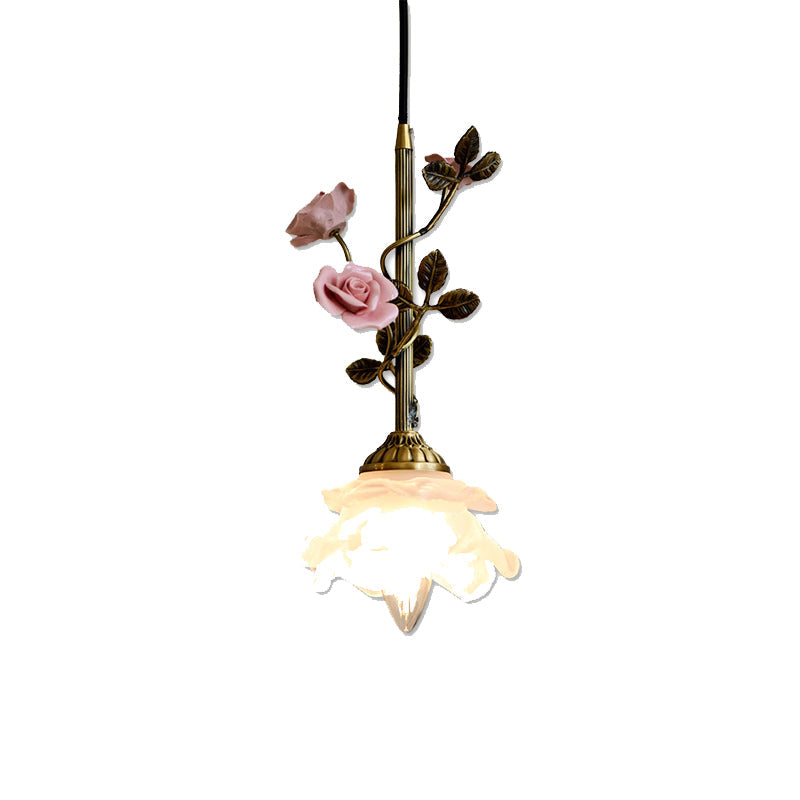 伝統的なフランスの花柄、真鍮セラミックガラス、寝室用1灯ペンダントライト