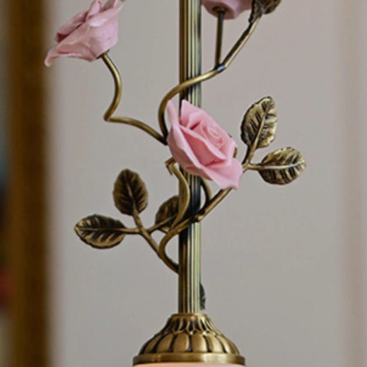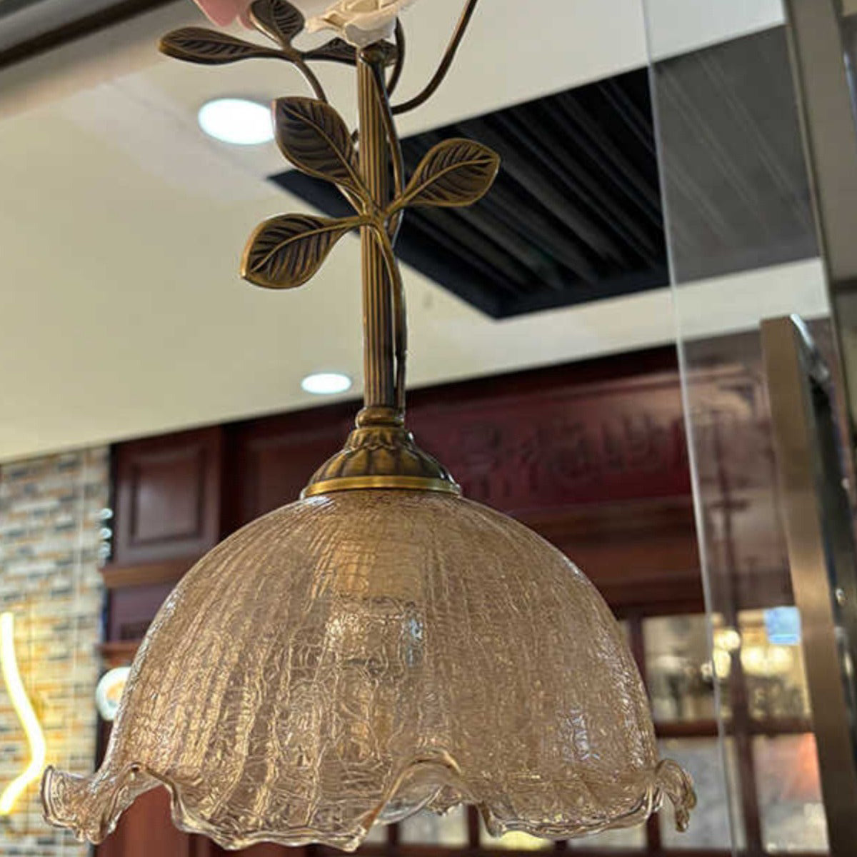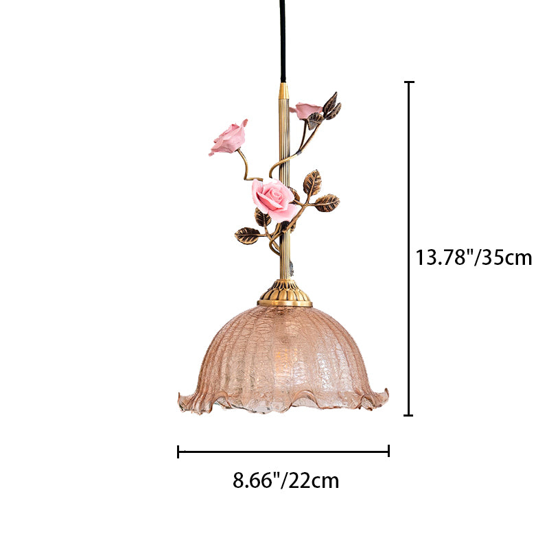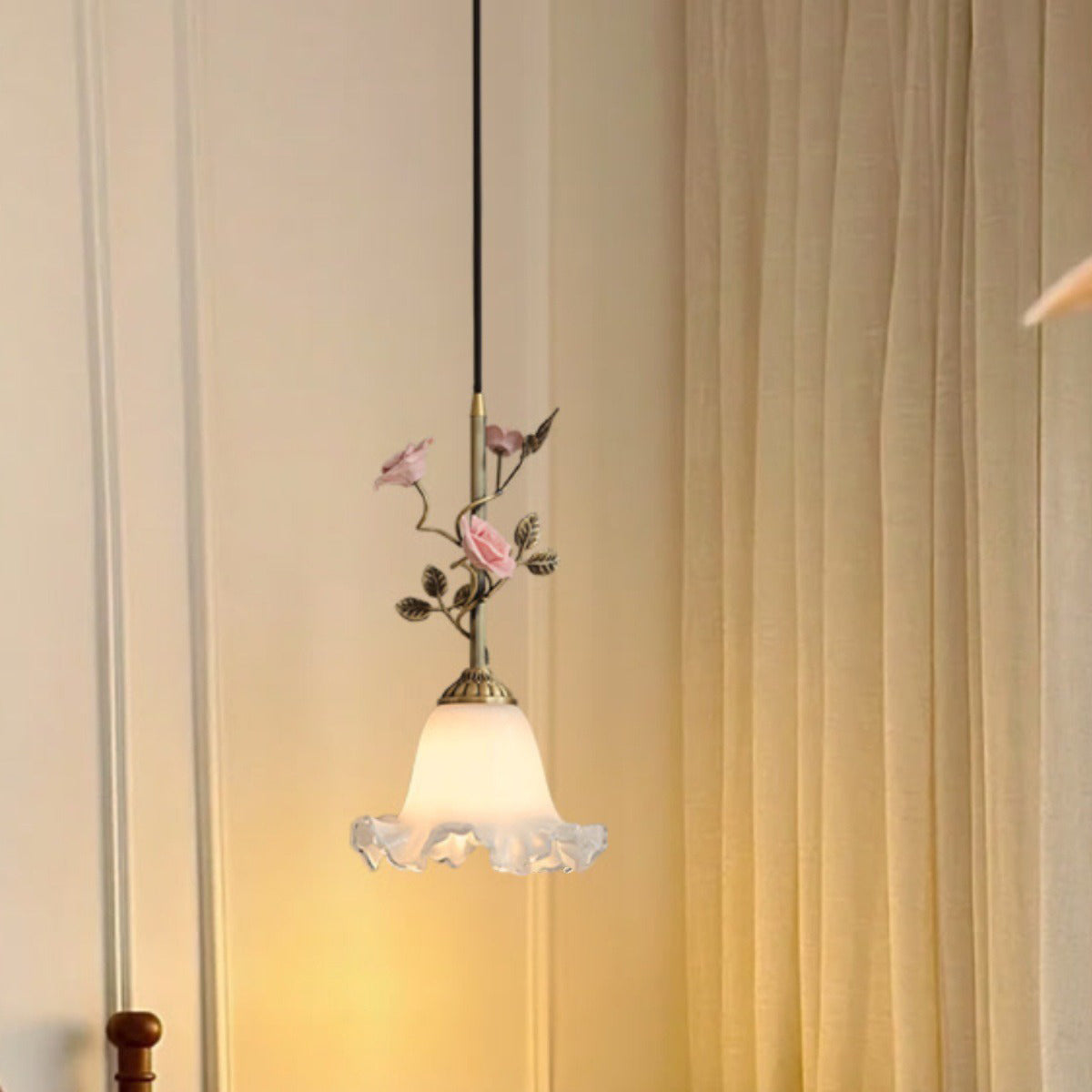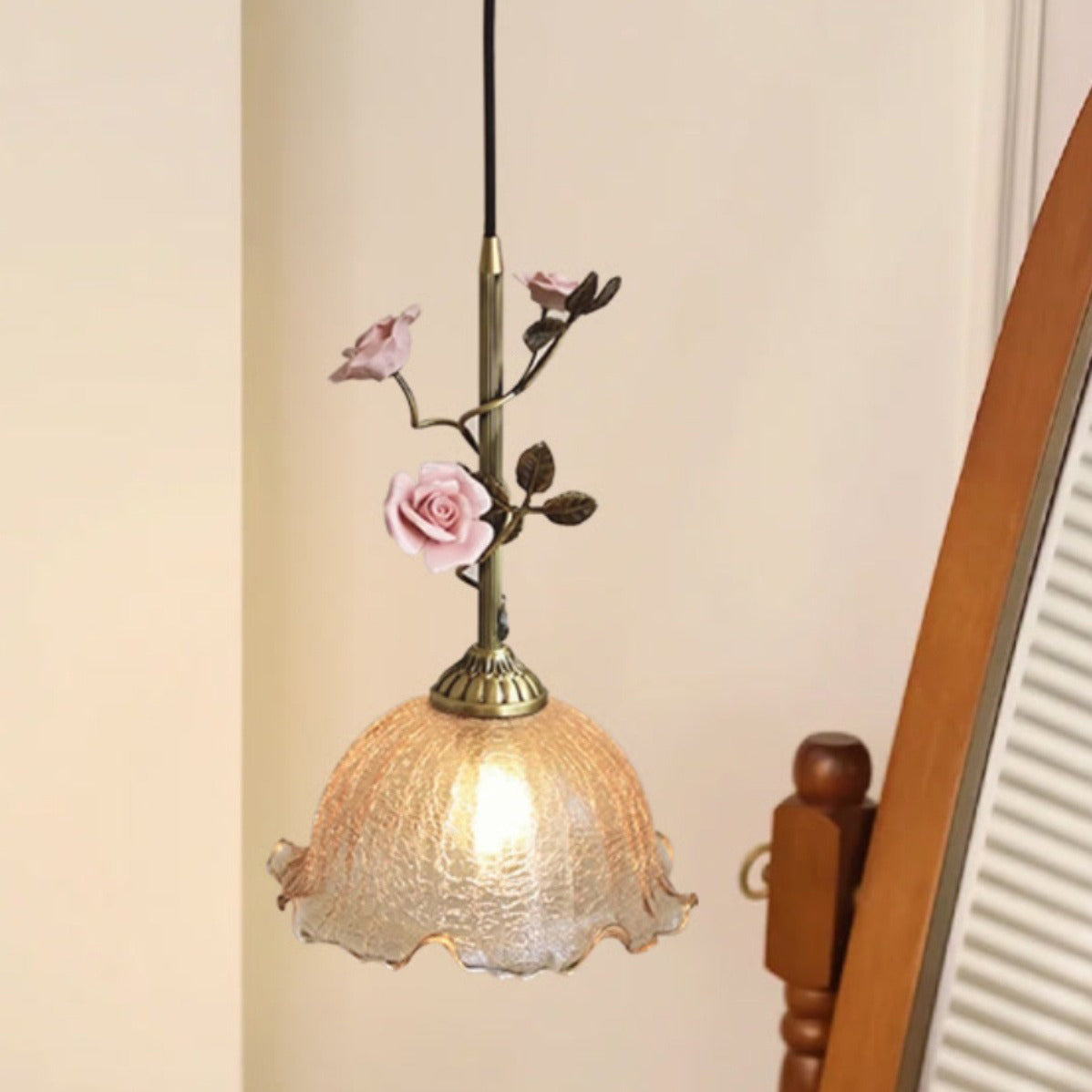 伝統的なフランスの花柄、真鍮セラミックガラス、寝室用1灯ペンダントライト