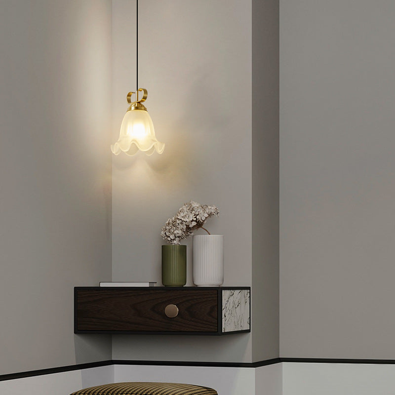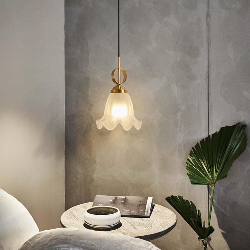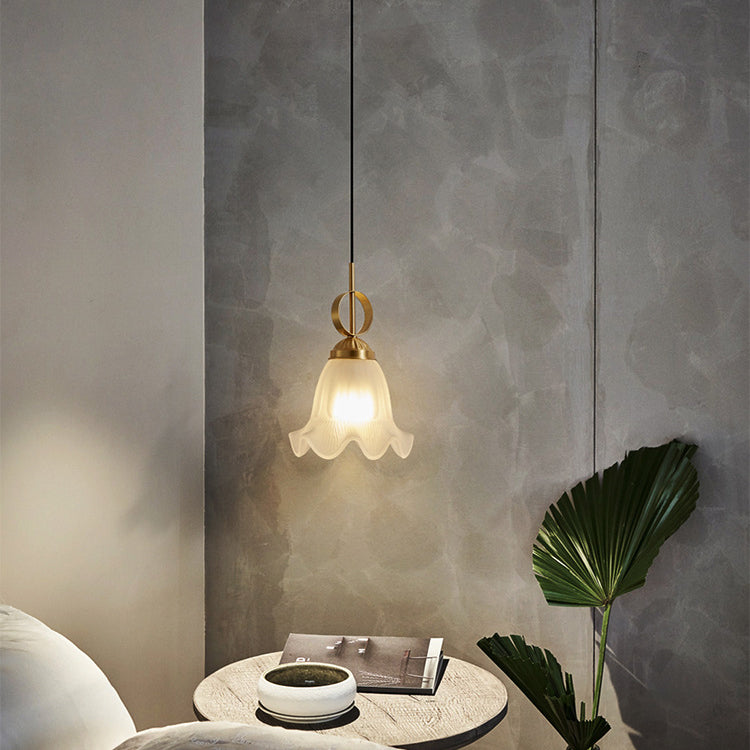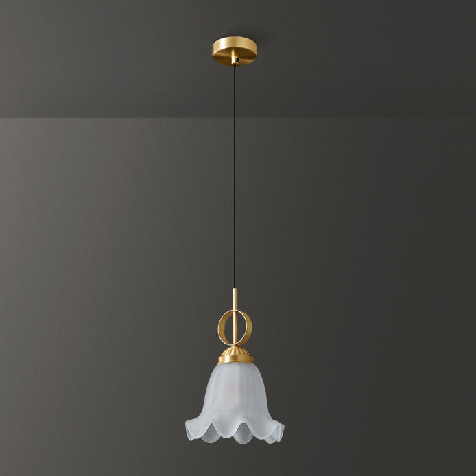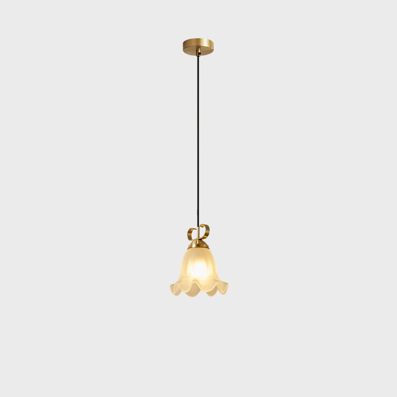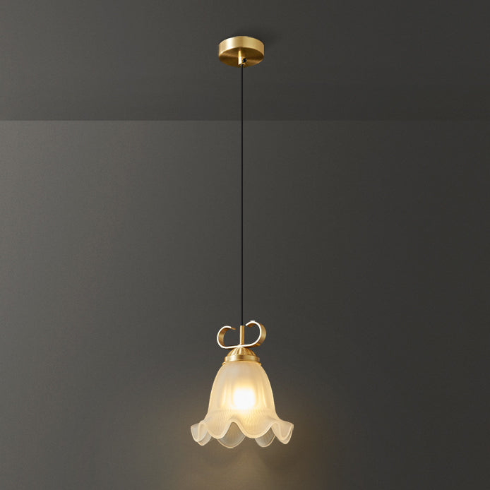 伝統的なフランスの花の真鍮ガラスランプシェード1 - リビングルーム用ペンダントライト