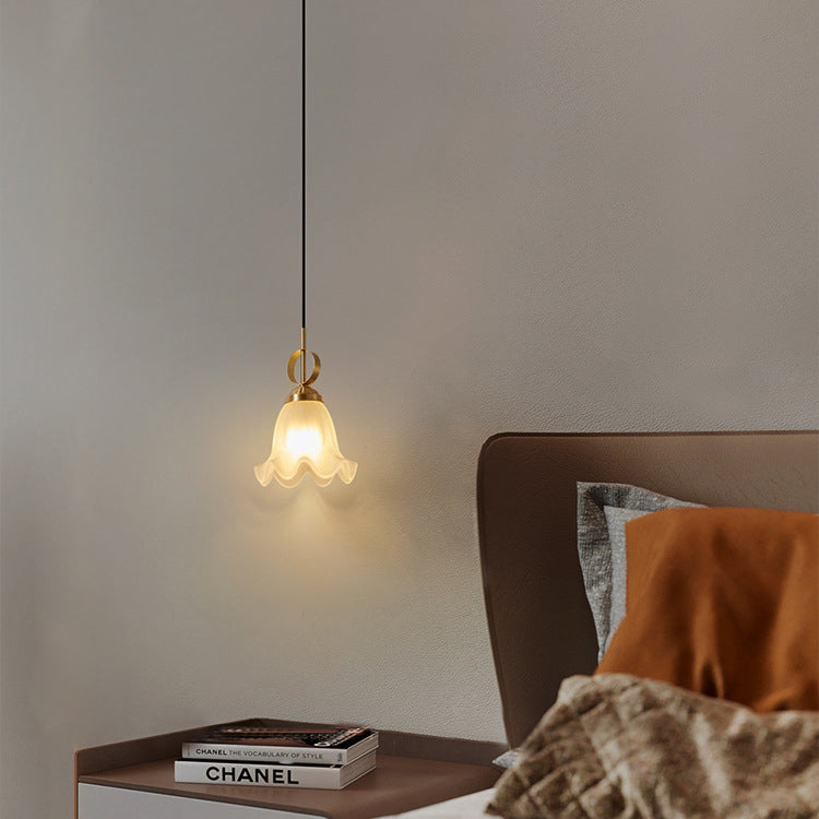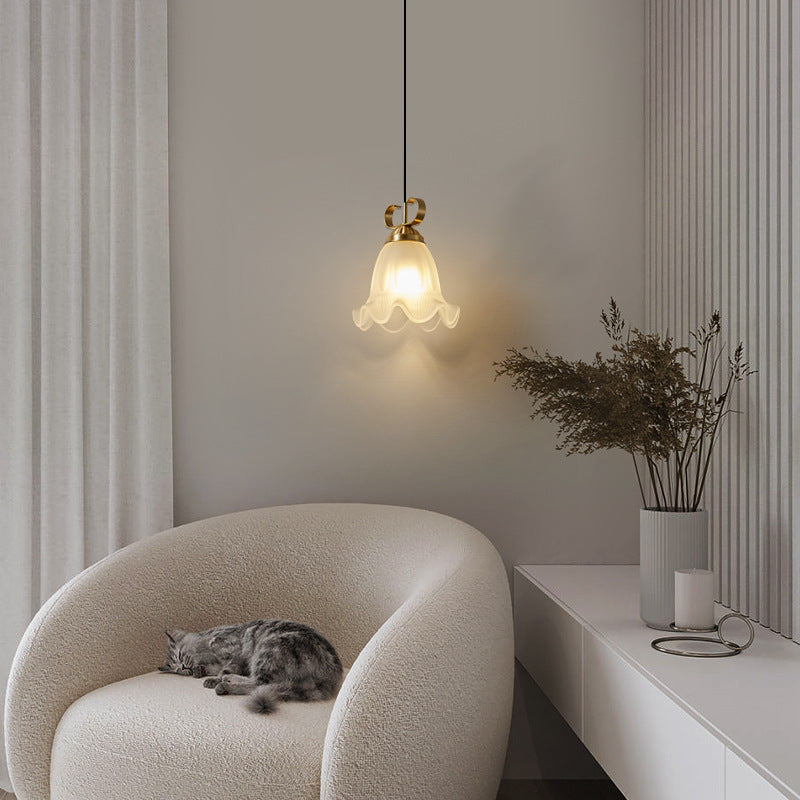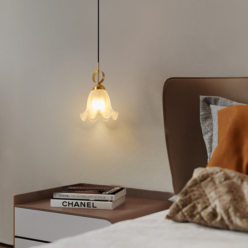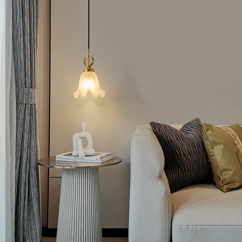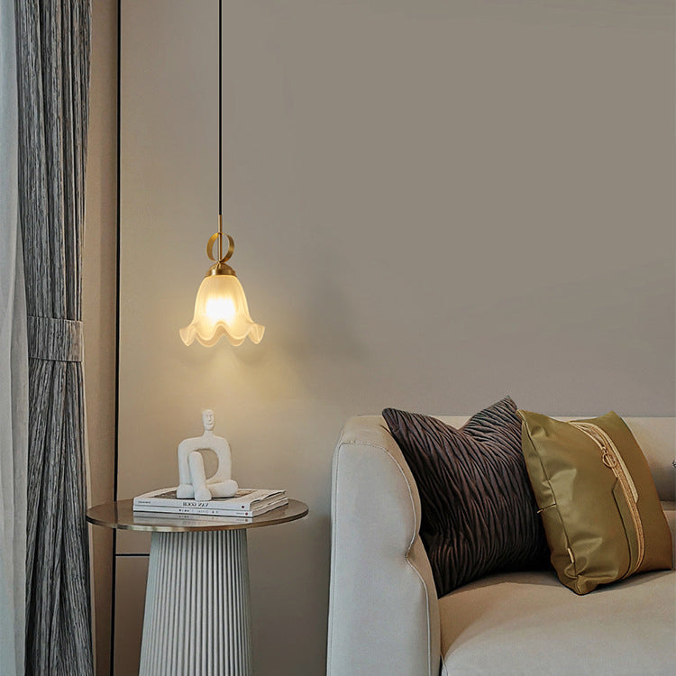 伝統的なフランスの花の真鍮ガラスランプシェード1 - リビングルーム用ペンダントライト
