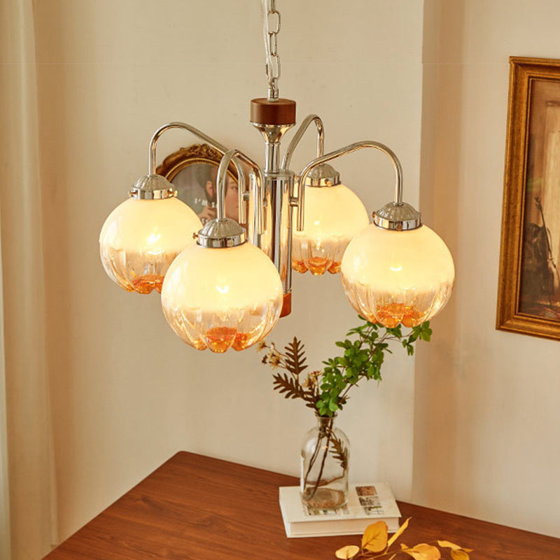 伝統的なフランスの花のつぼみガラスシェードシルバー仕上げフレーム3/4ライトシャンデリアリビングルーム用