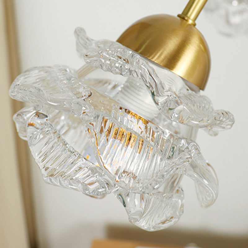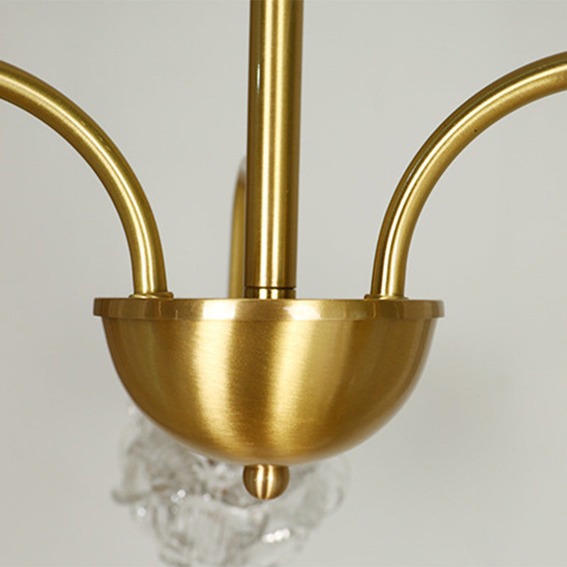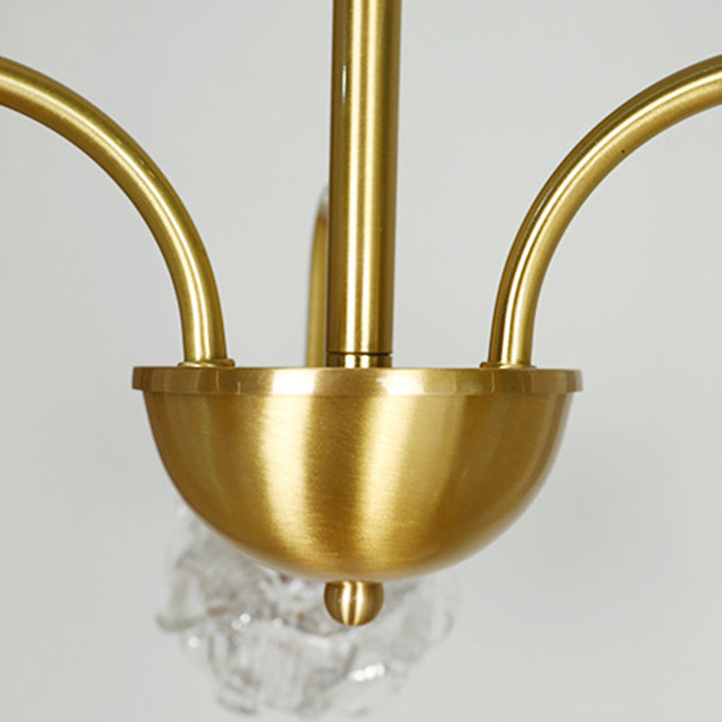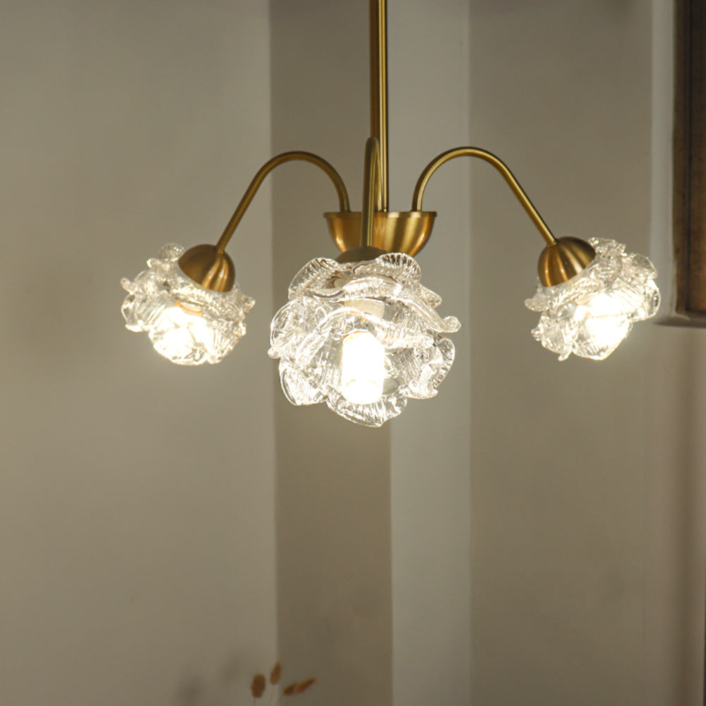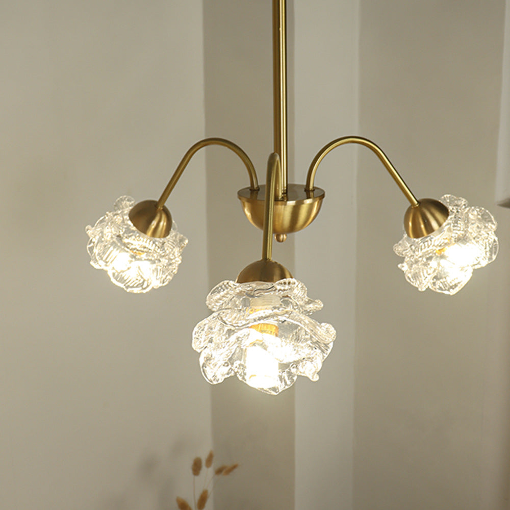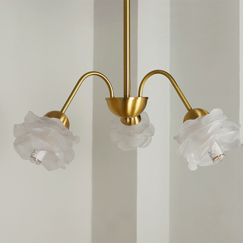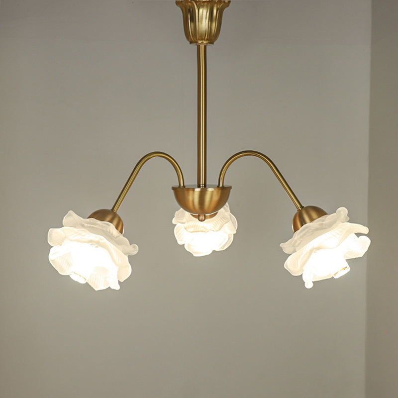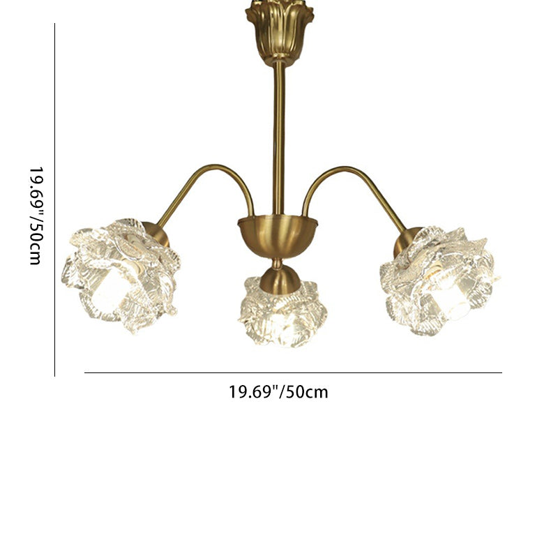 リビングルーム用の伝統的なフランスの花柄銅ガラス3灯シャンデリア