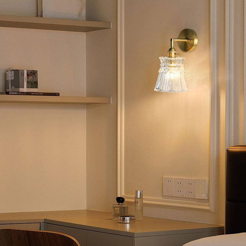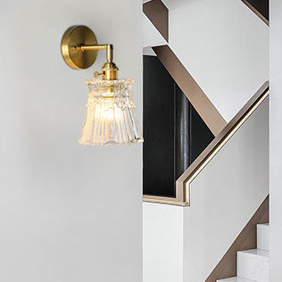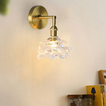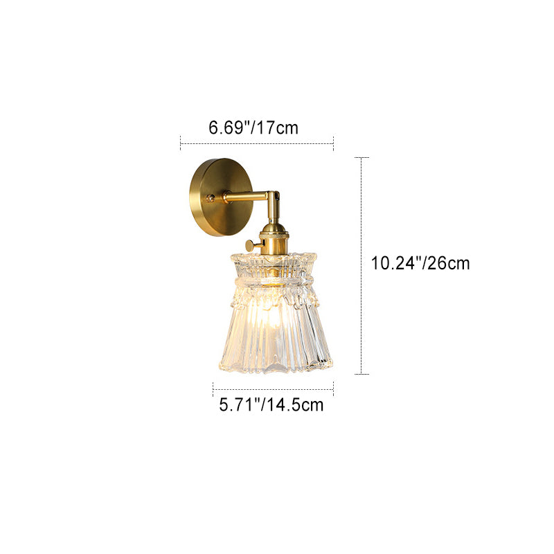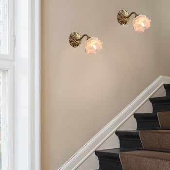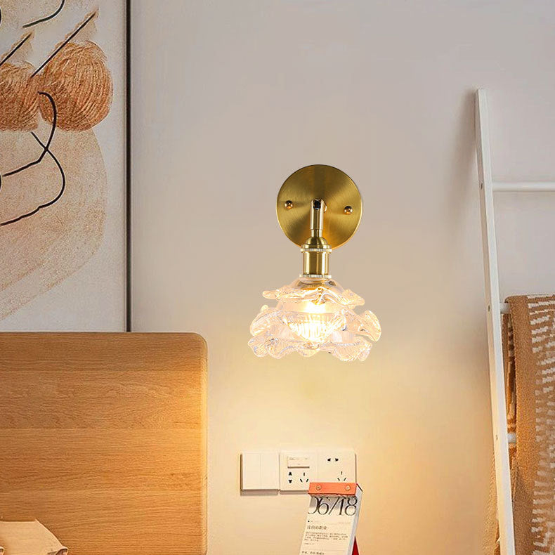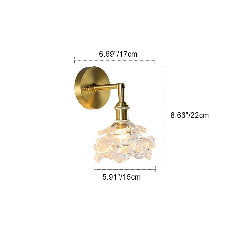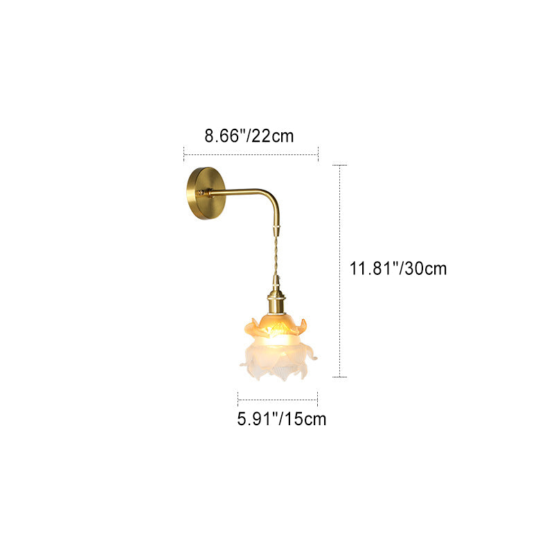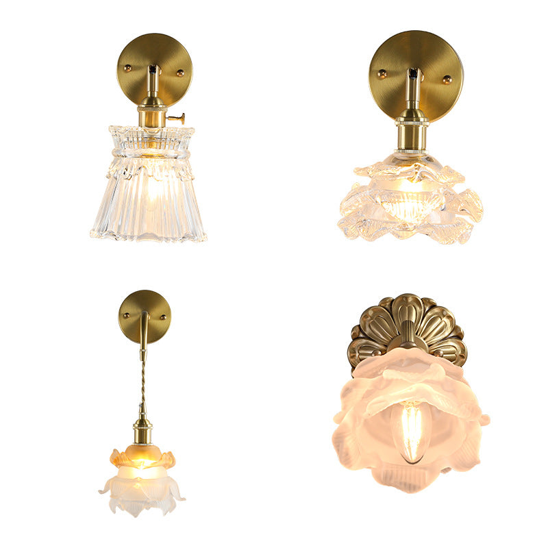 伝統的なフランスの花のシリンダーボール銅ガラス1ライト壁取り付け用燭台ランプベッドサイド用