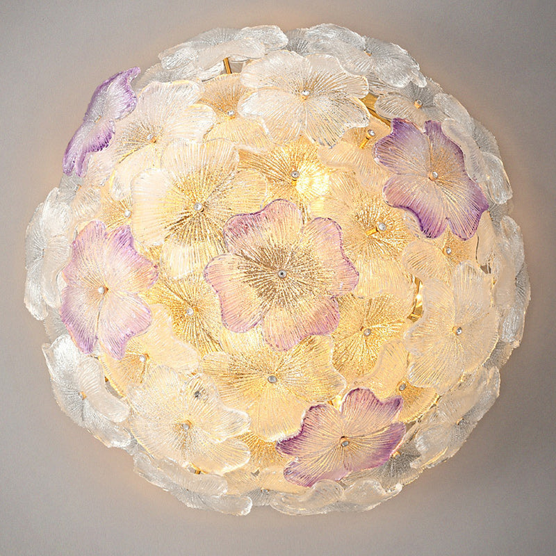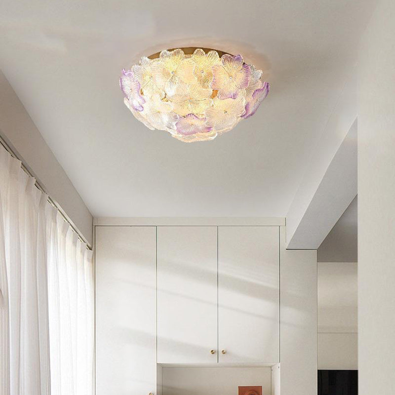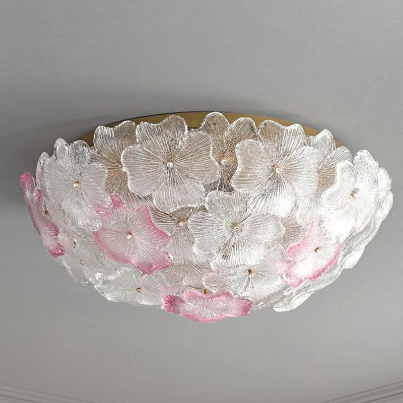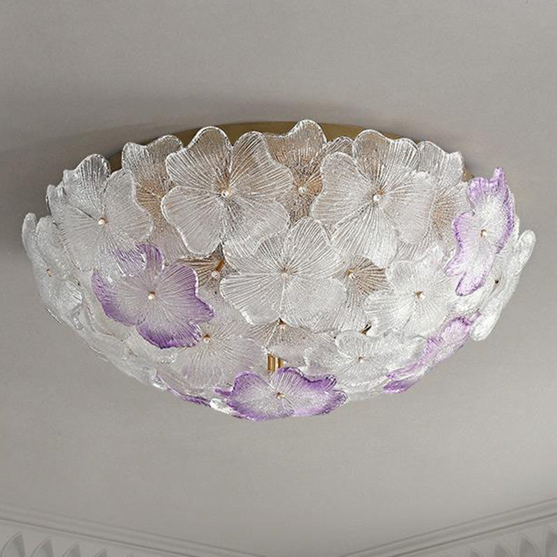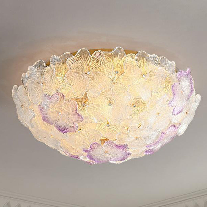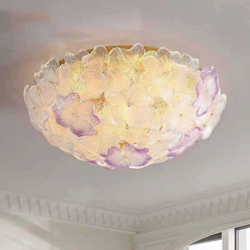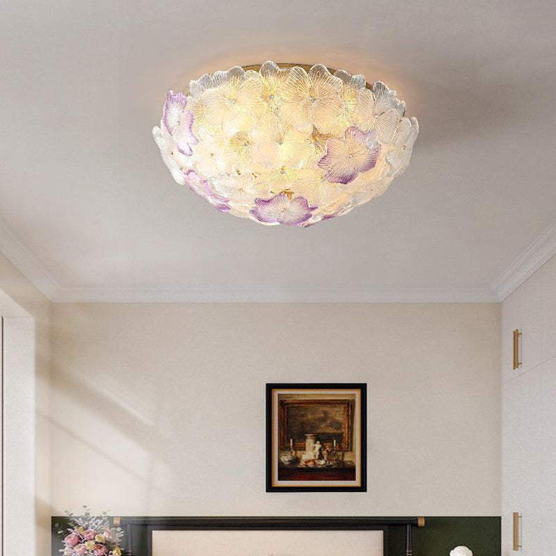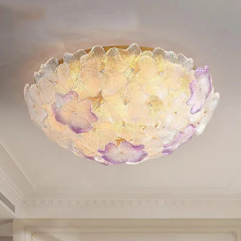 伝統的なフレンチフラワードームガラスメタル6/9ライトセミフラッシュマウントシーリングライト寝室用