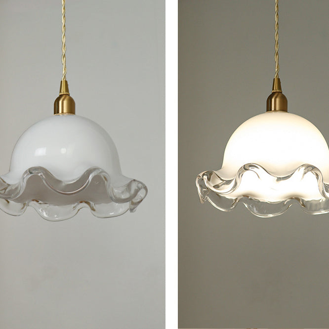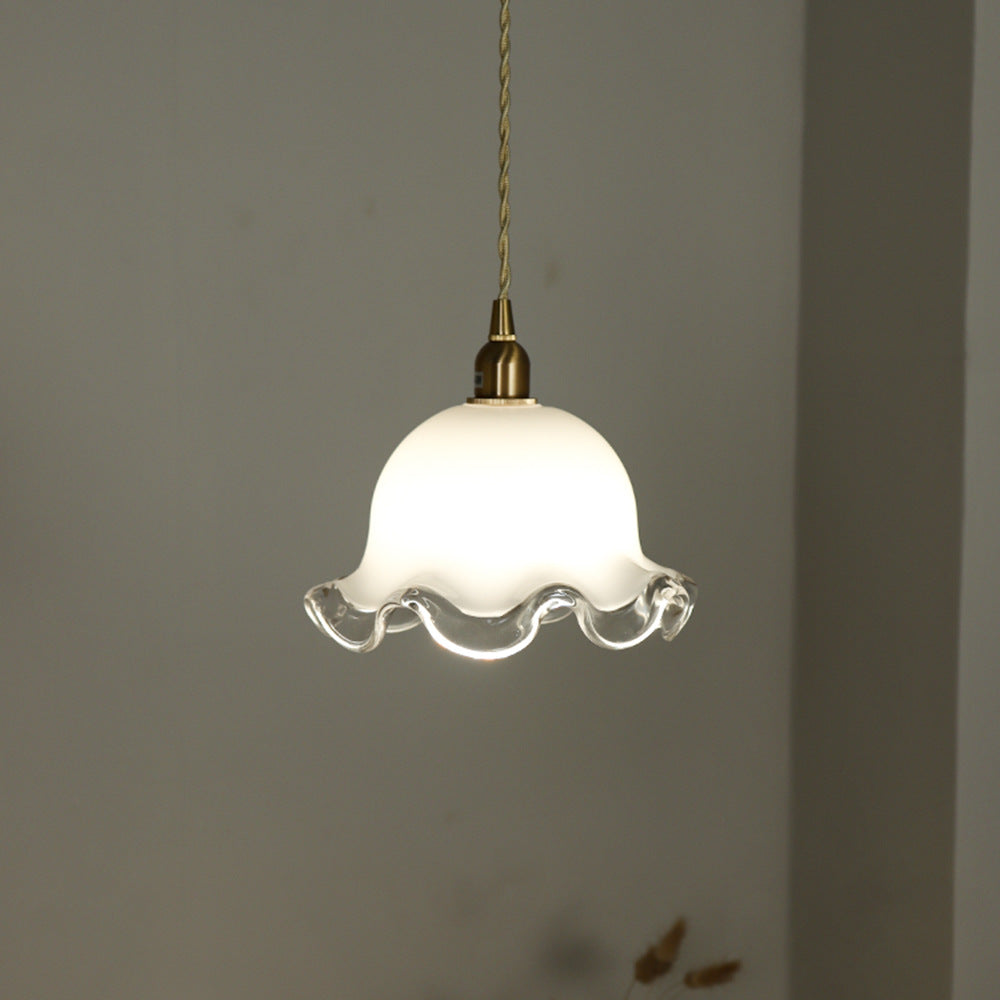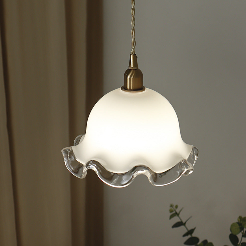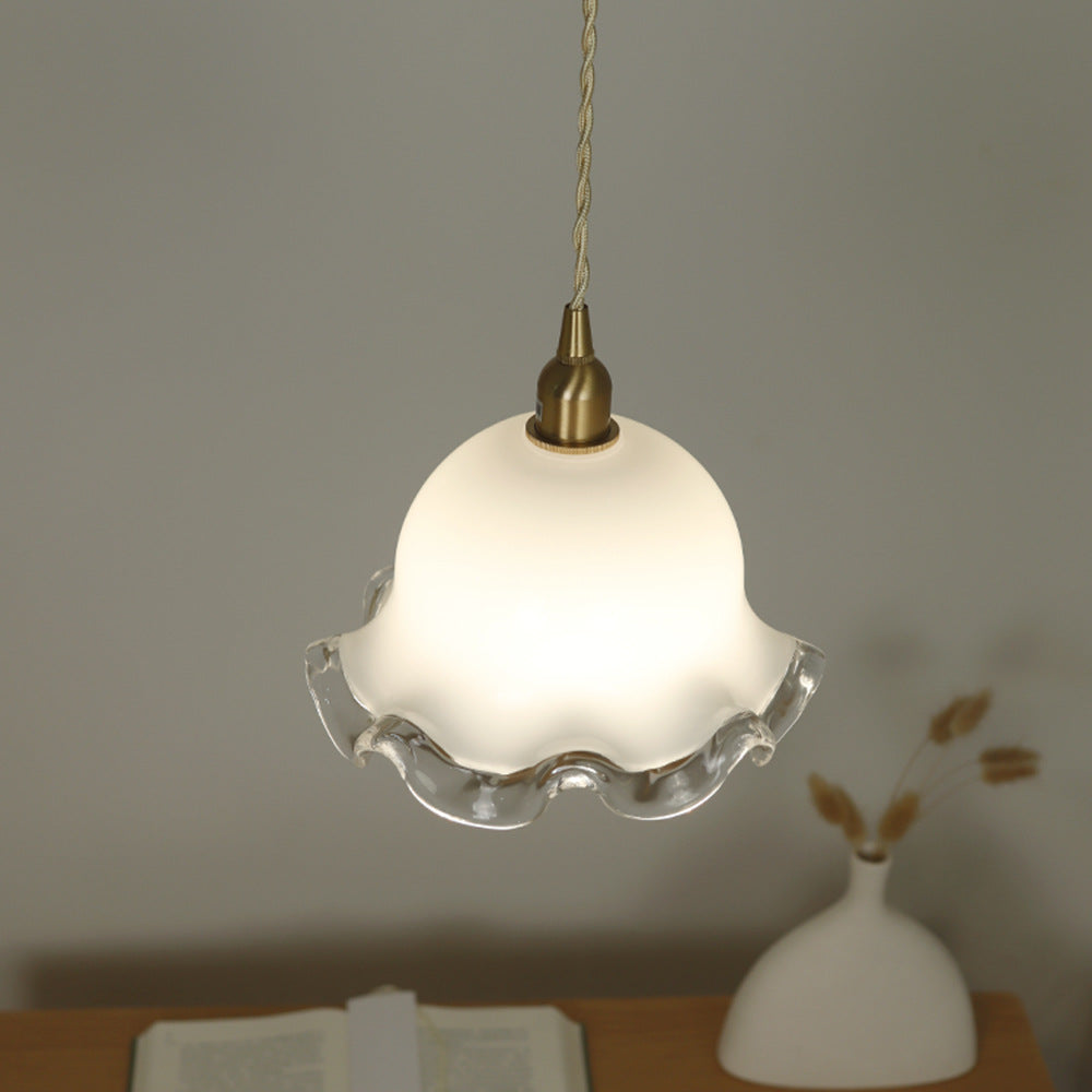 伝統的なフランスの花のガラスシェードと真鍮の1灯ペンダントライト(リビングルーム用)