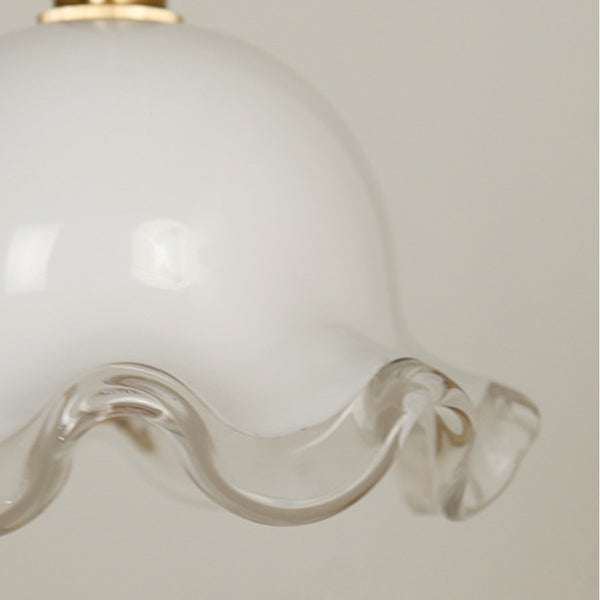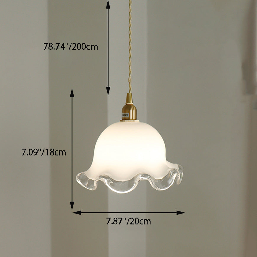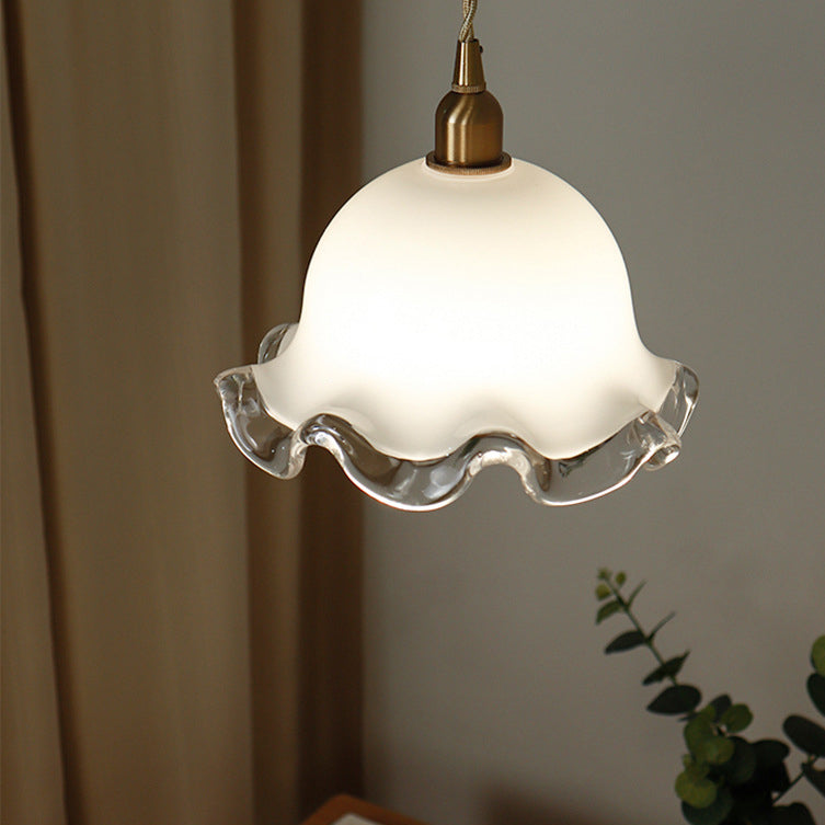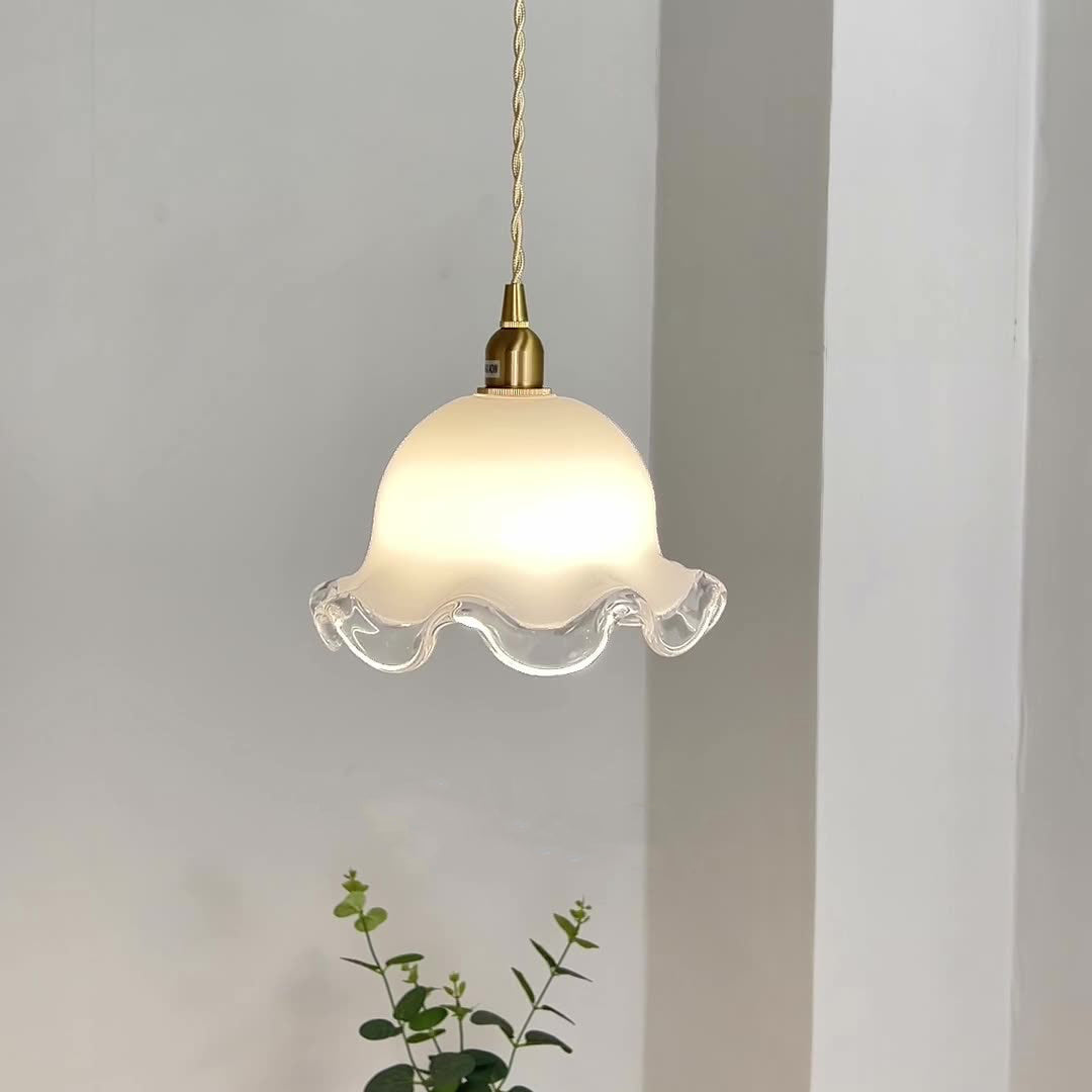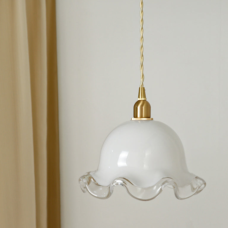 伝統的なフランスの花のガラスシェードと真鍮の1灯ペンダントライト(リビングルーム用)