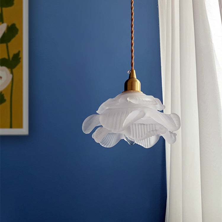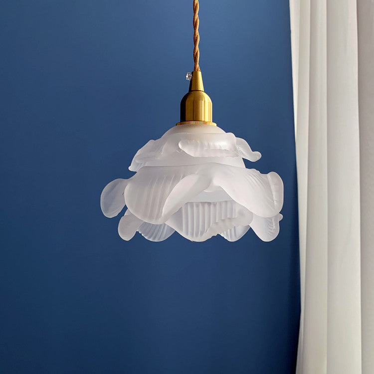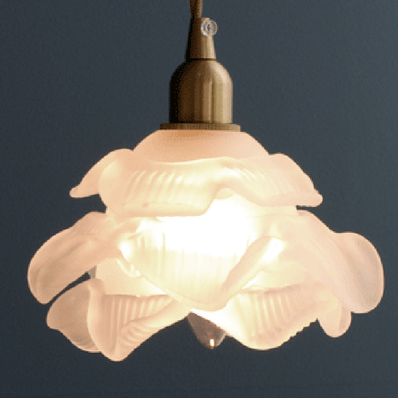 伝統的なフランスの花びらガラス銅1灯ペンダントライトリビングルーム用