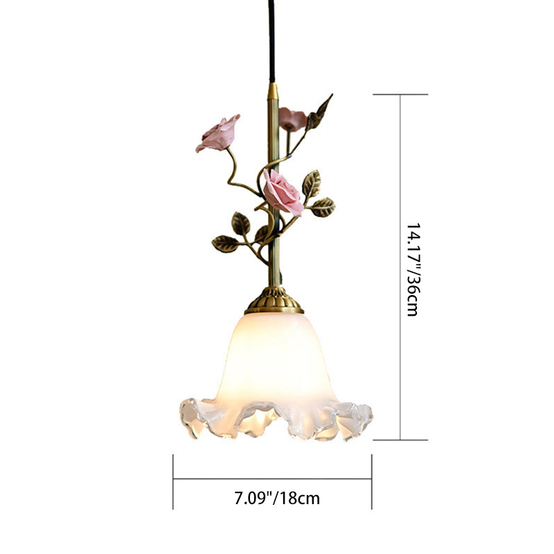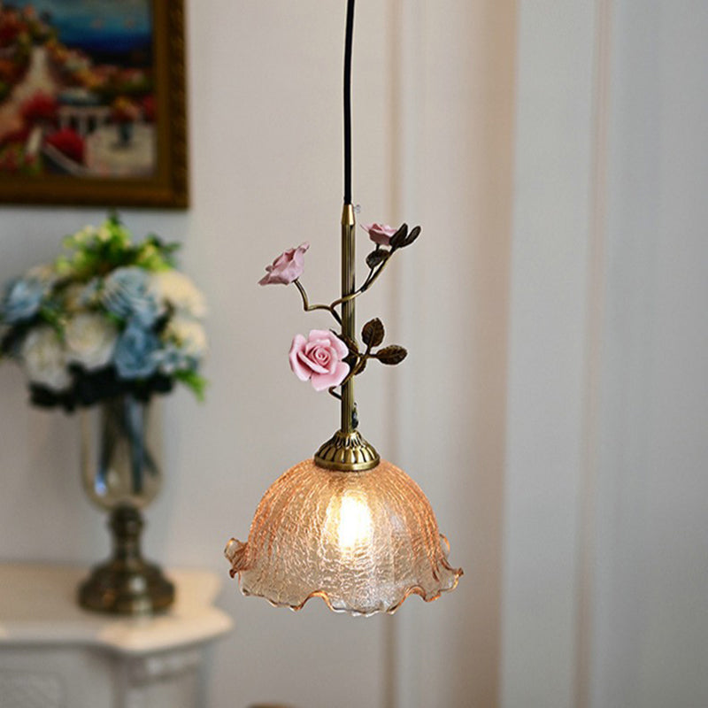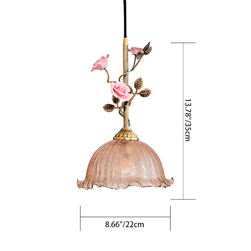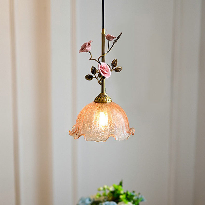 伝統的なフランス製の真鍮ガラス製ローズドーム1灯ペンダントライト。寝室やリビングルームに最適です。