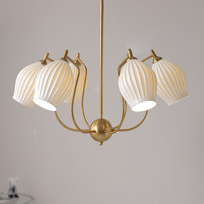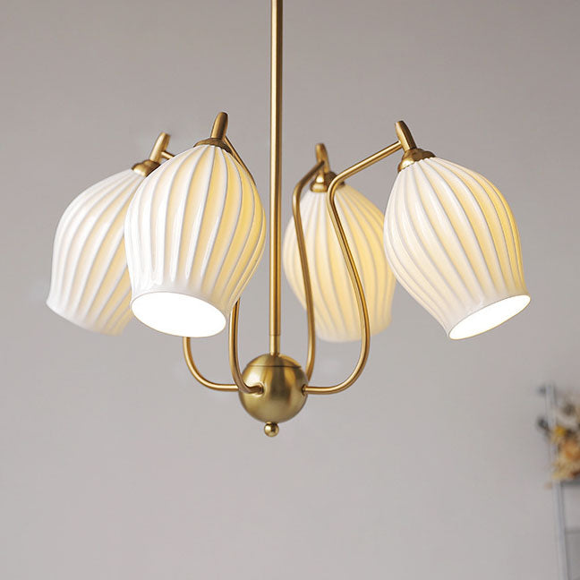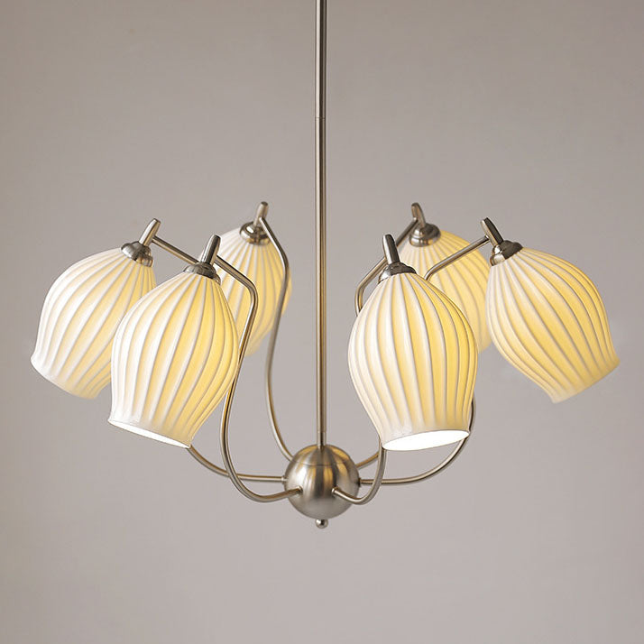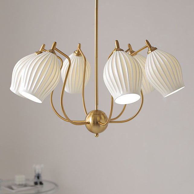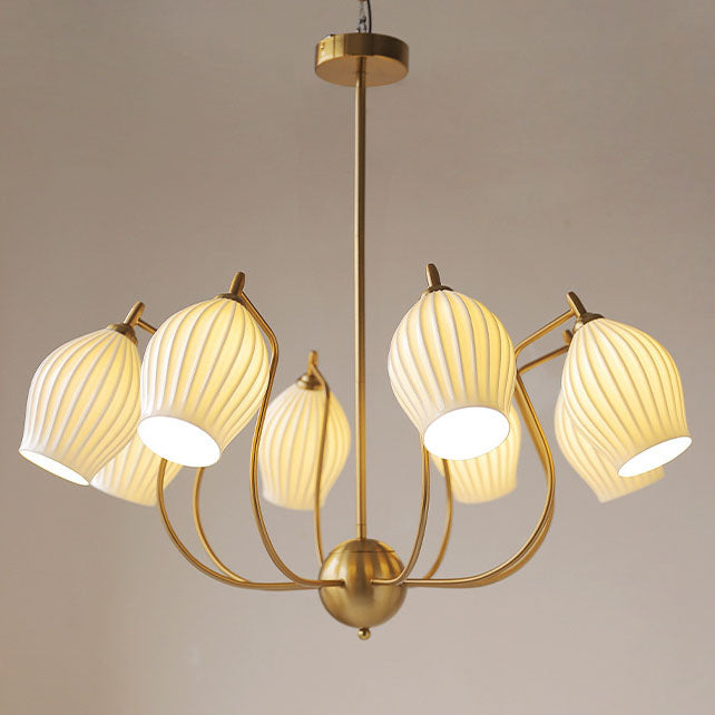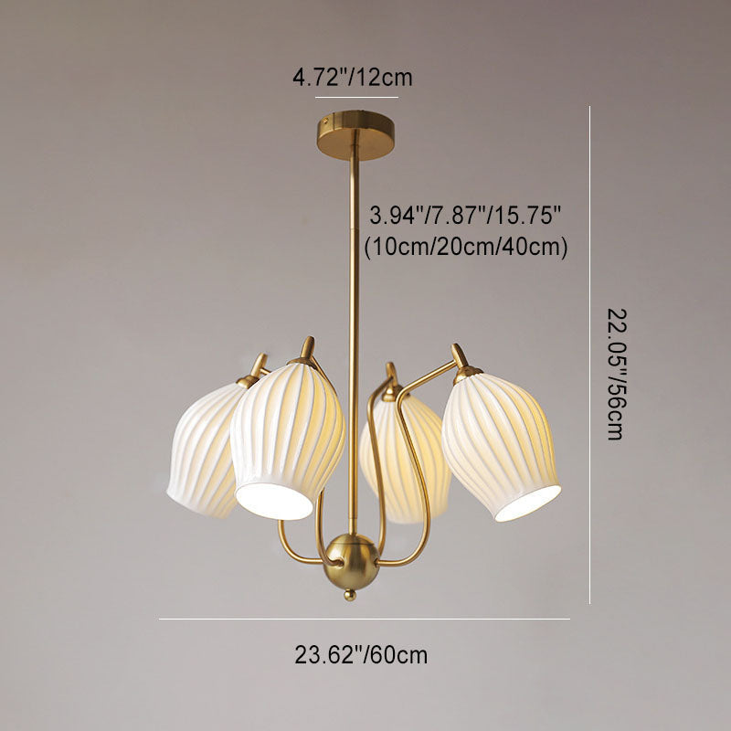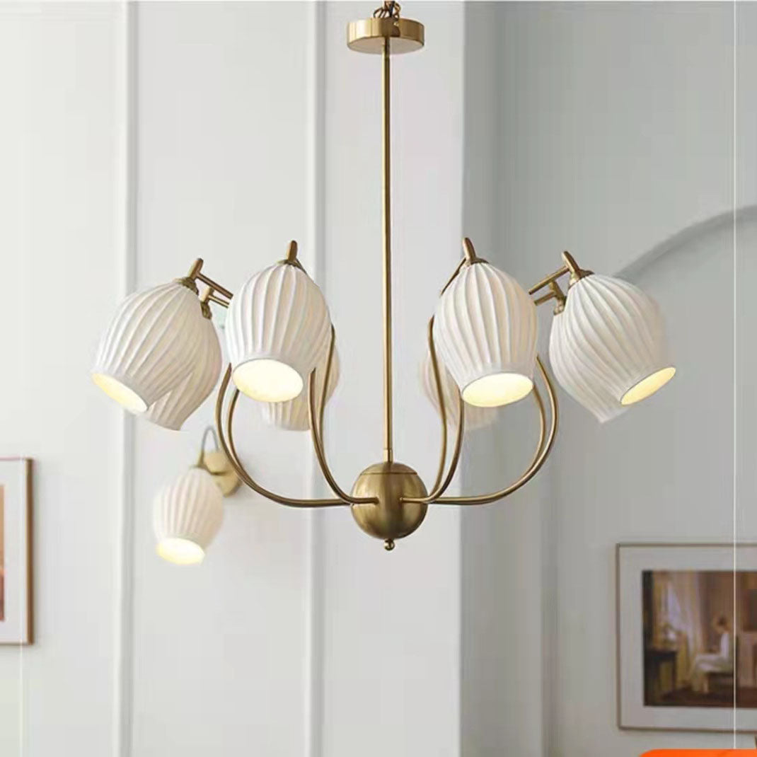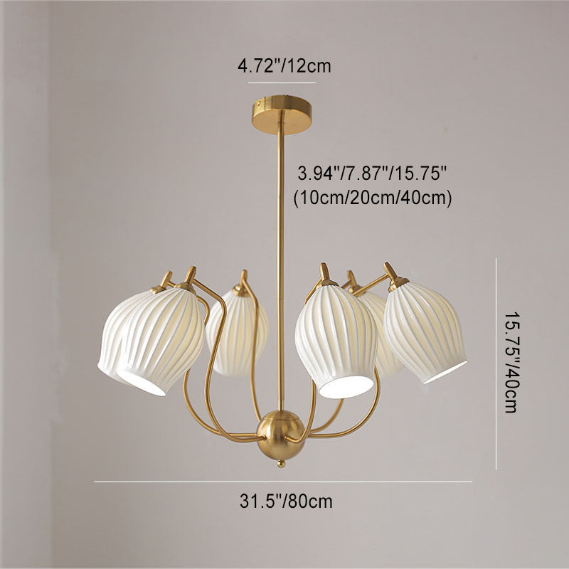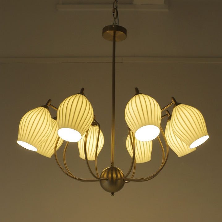 伝統的なフランスの鉄と銅のセラミックの花柄ベルストライプの4/6/8灯シャンデリア、リビングルーム用