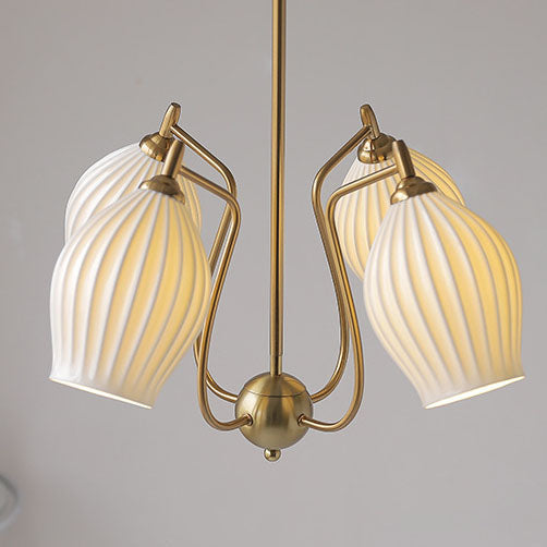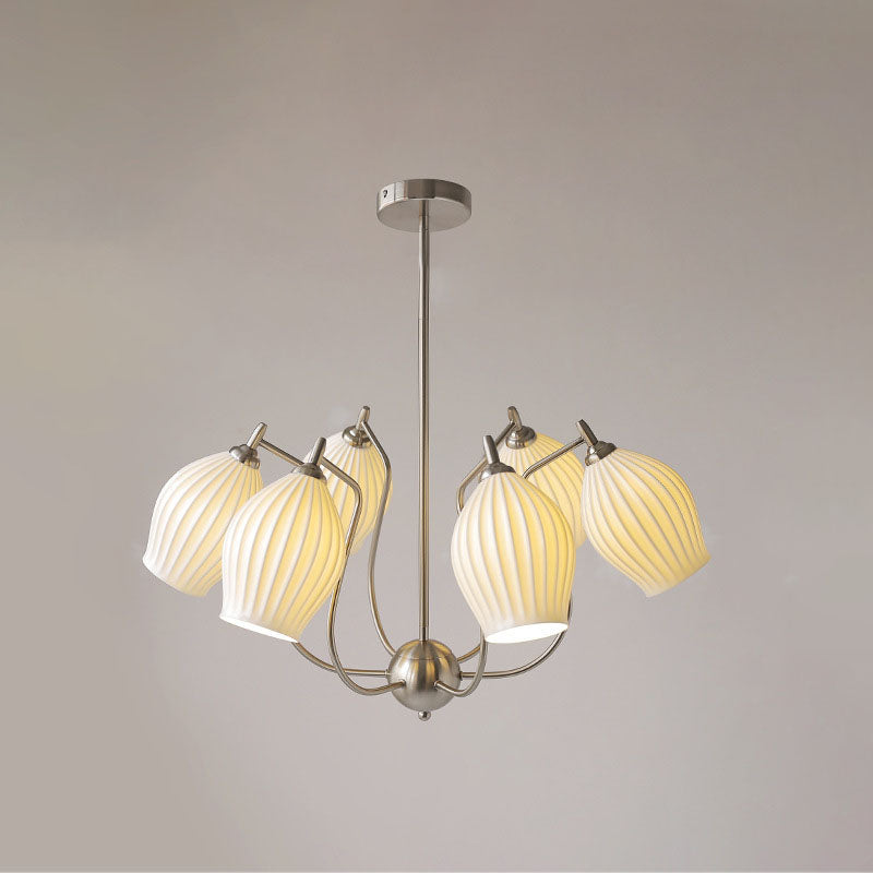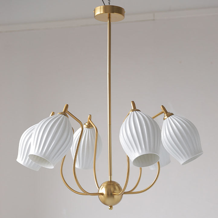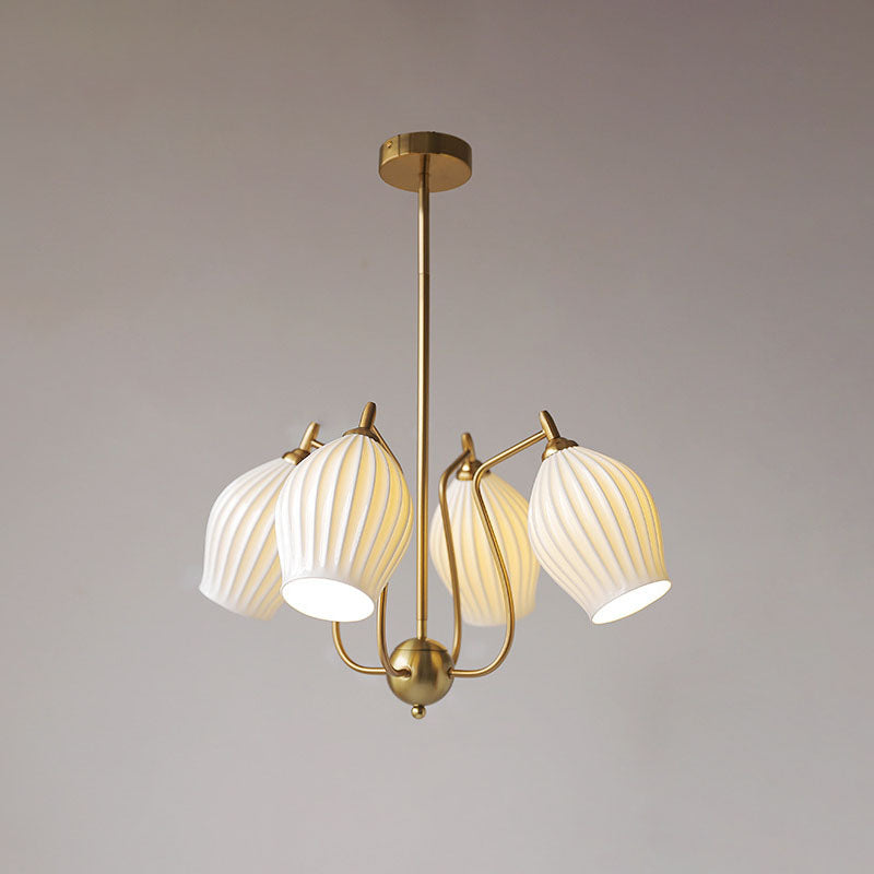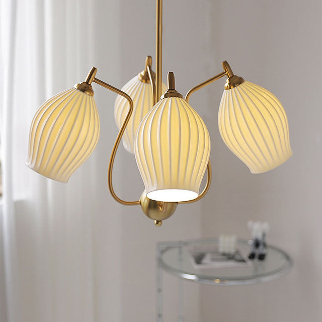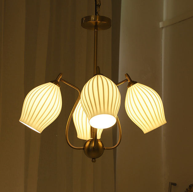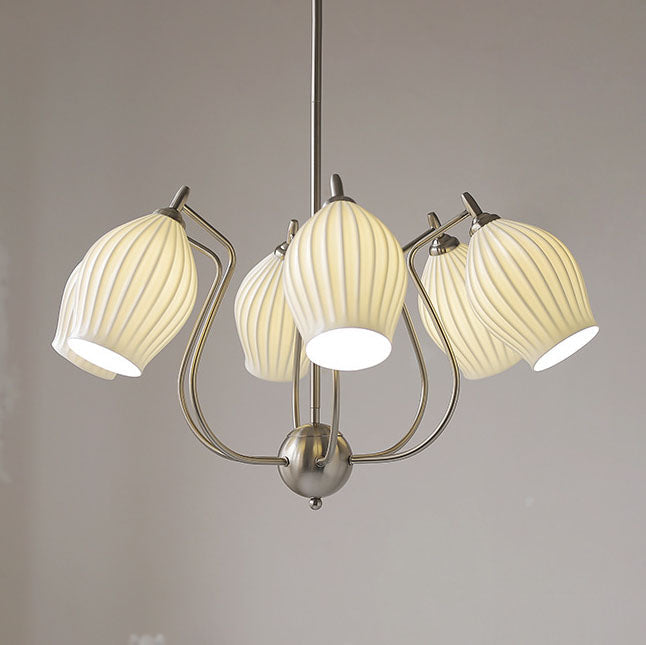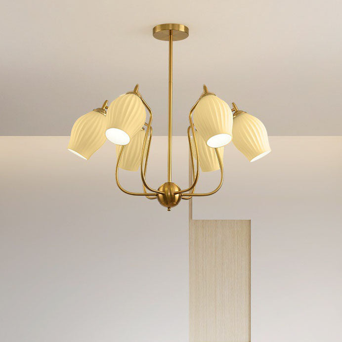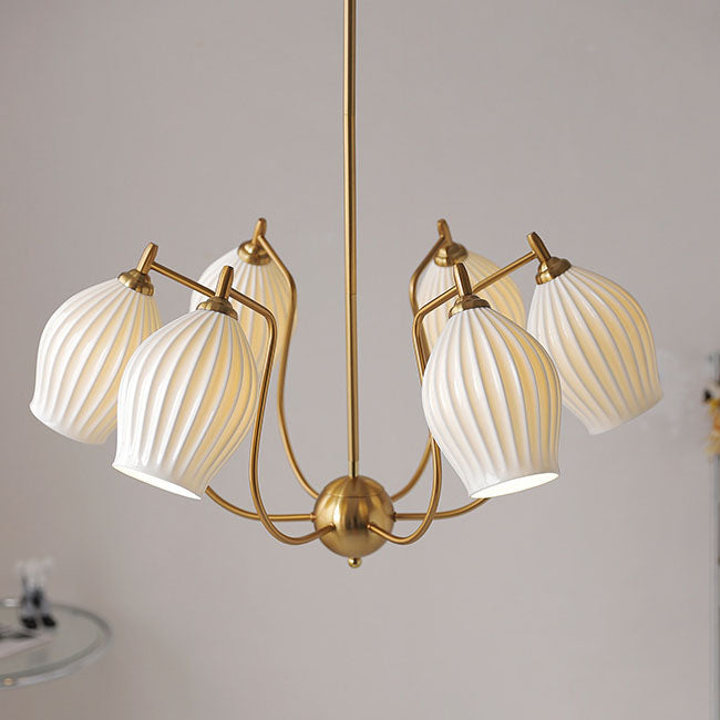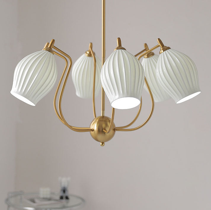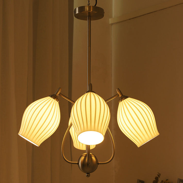 伝統的なフランスの鉄と銅のセラミックの花柄ベルストライプの4/6/8灯シャンデリア、リビングルーム用