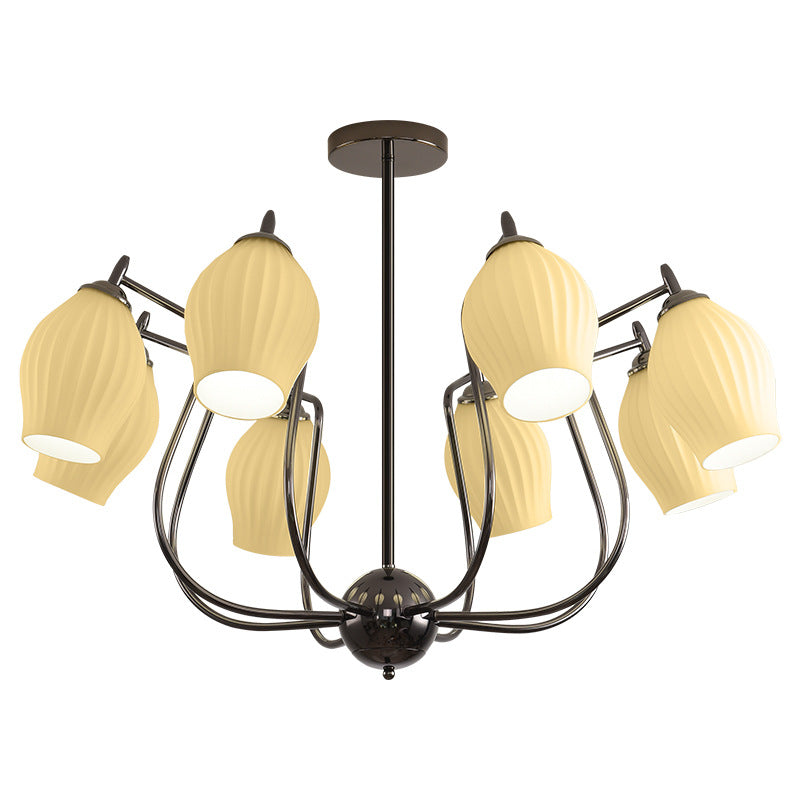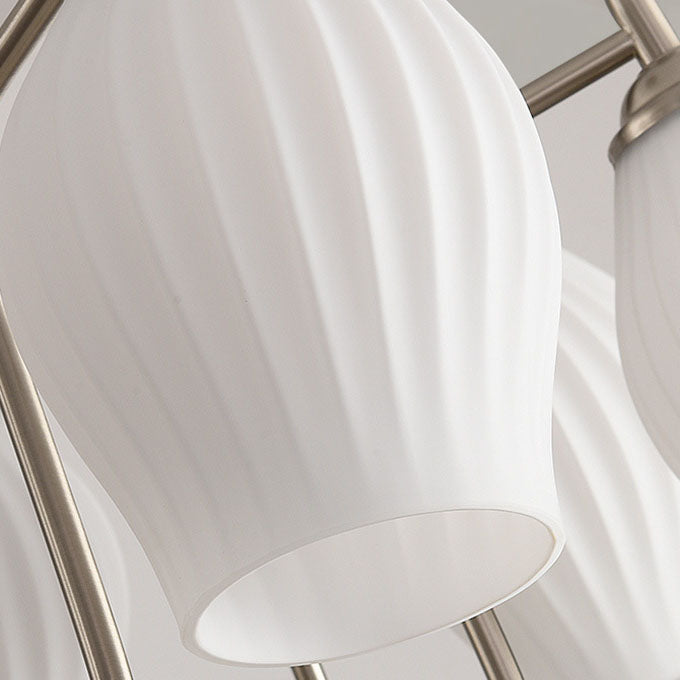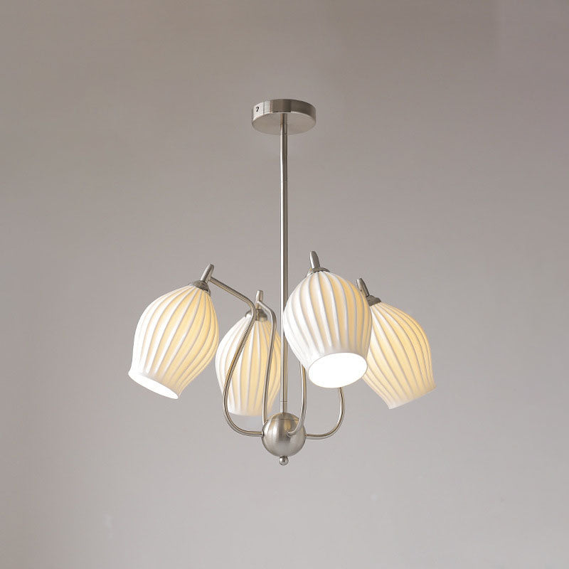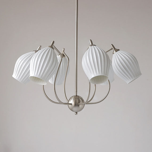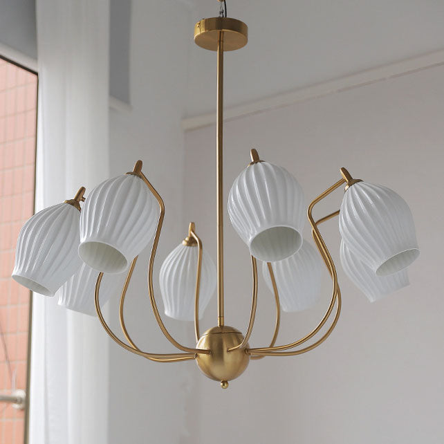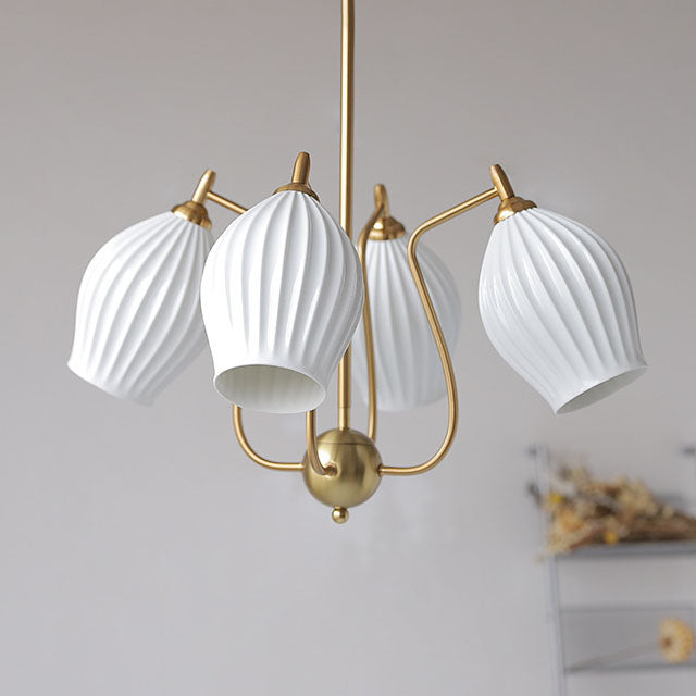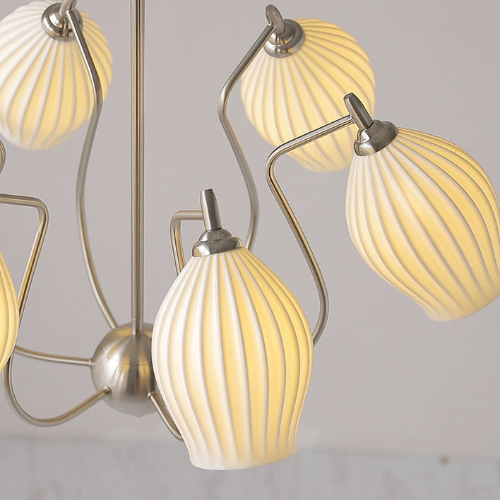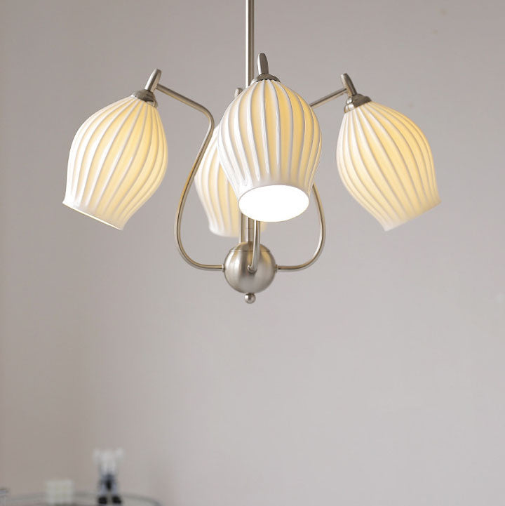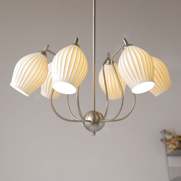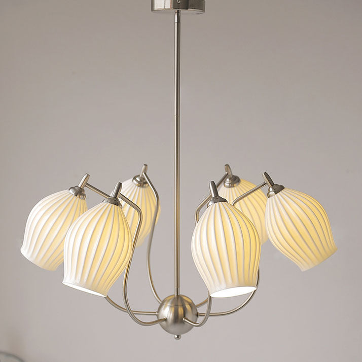 伝統的なフランスの鉄と銅のセラミックの花柄ベルストライプの4/6/8灯シャンデリア、リビングルーム用