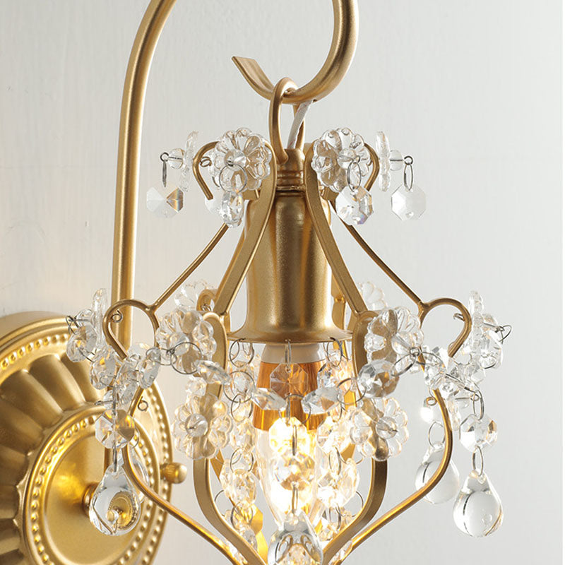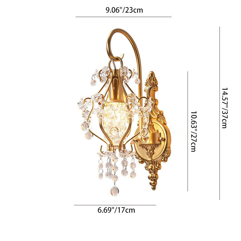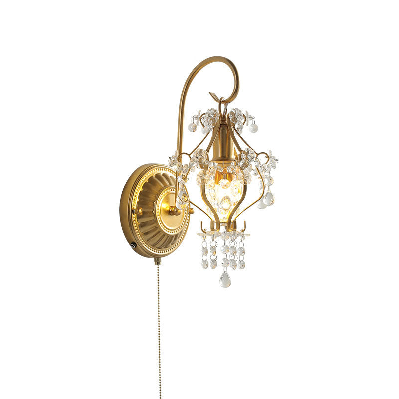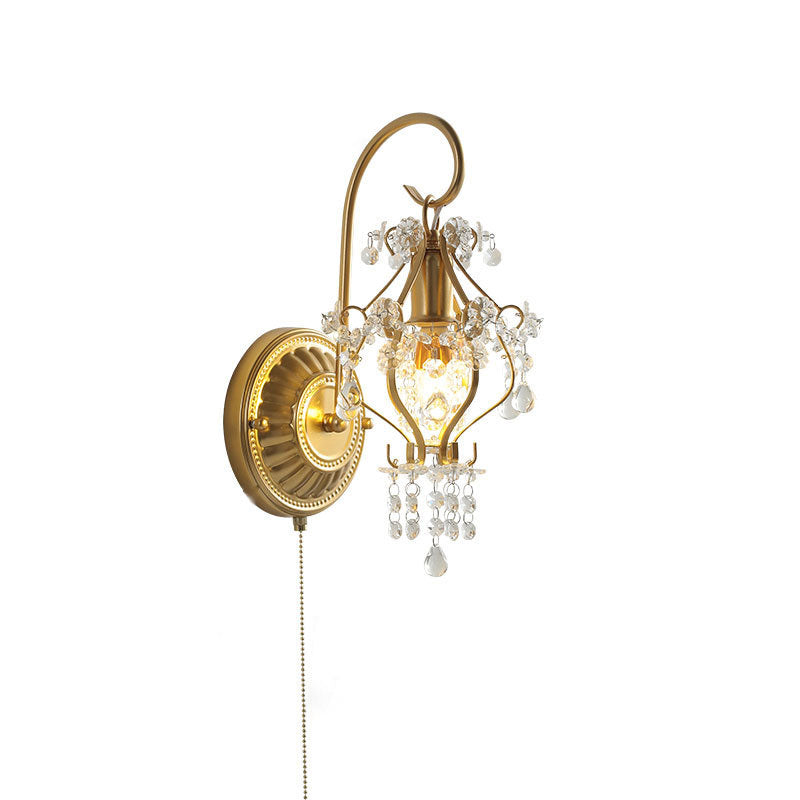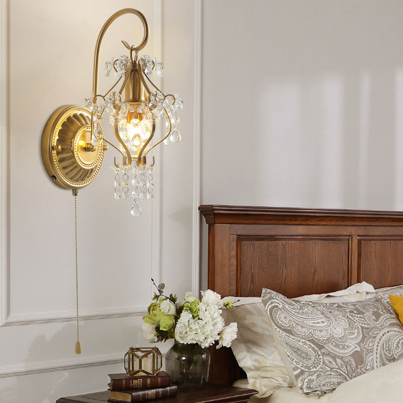 伝統的なフランスの鉄製クリスタルラウンド1灯壁取り付け用燭台ランプ(リビングルーム用)