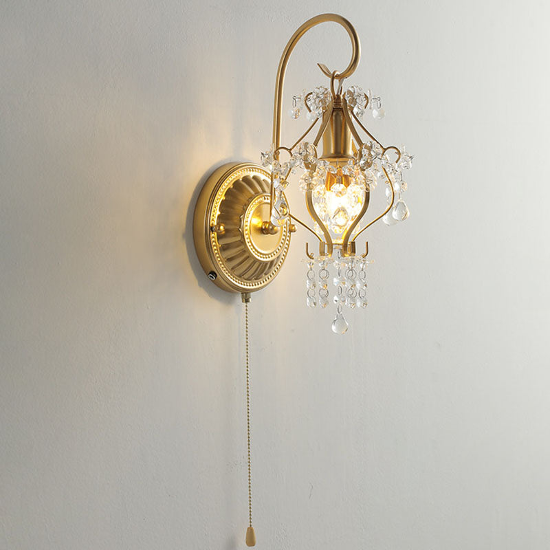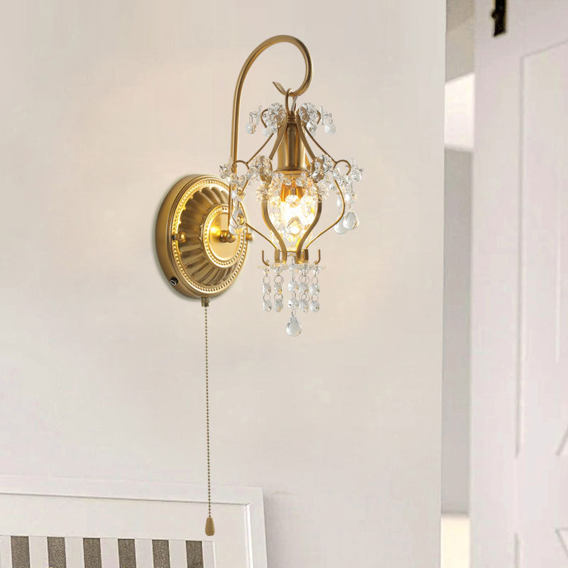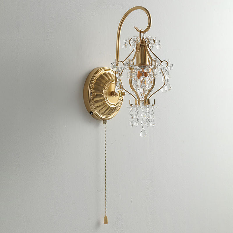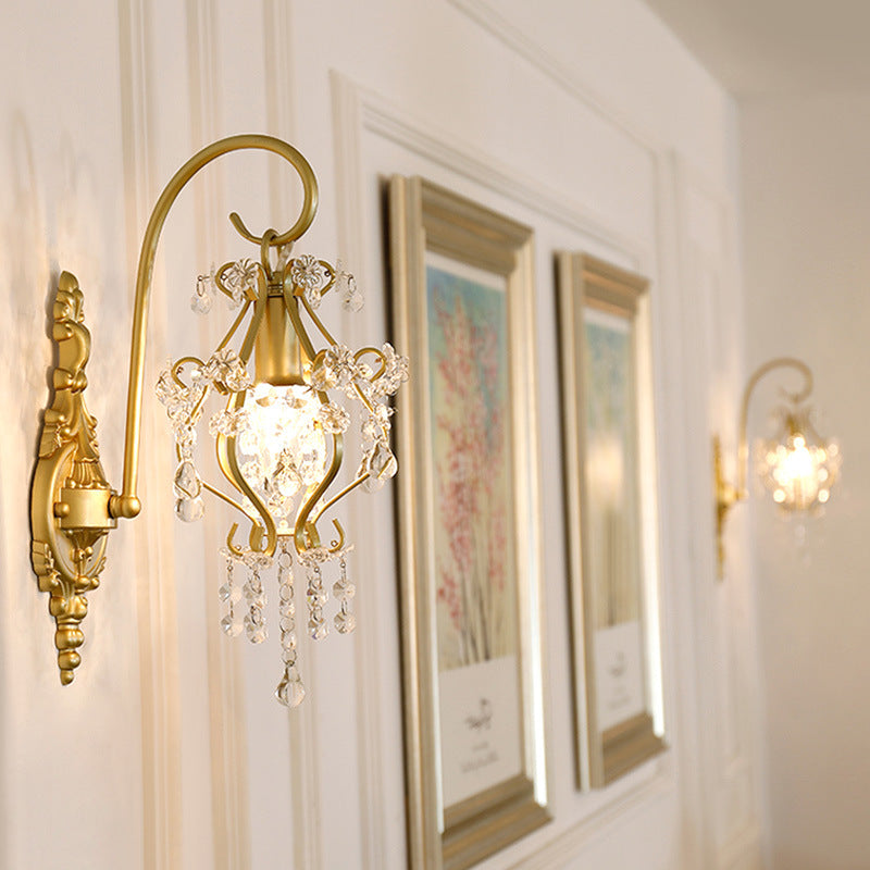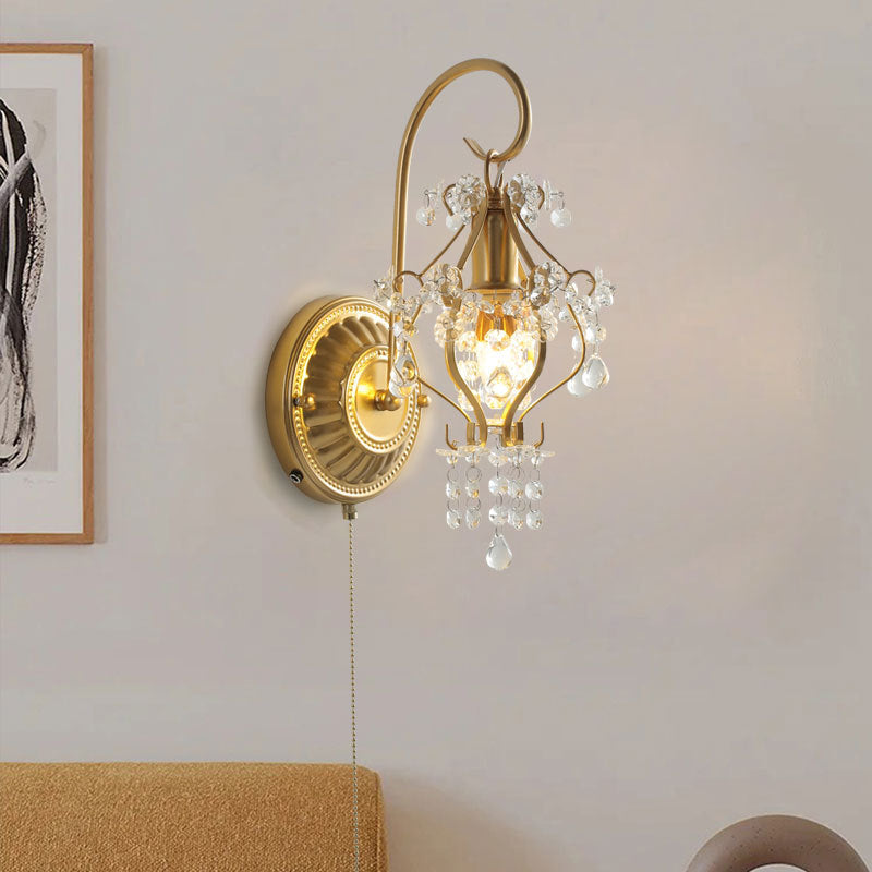 伝統的なフランスの鉄製クリスタルラウンド1灯壁取り付け用燭台ランプ(リビングルーム用)