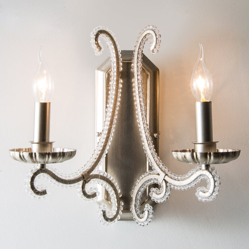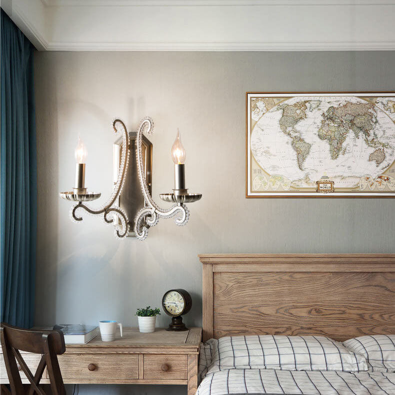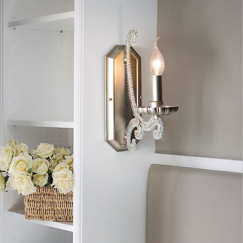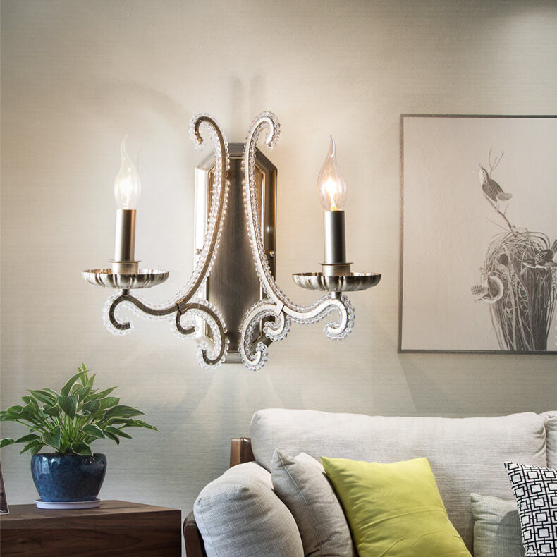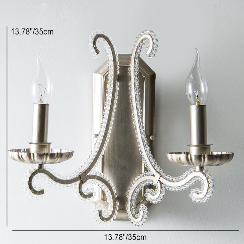 伝統的なフランスの鉄製クリスタルスクエアキャンドルスティック1/2ライト壁取り付け用燭台ランプリビングルーム用
