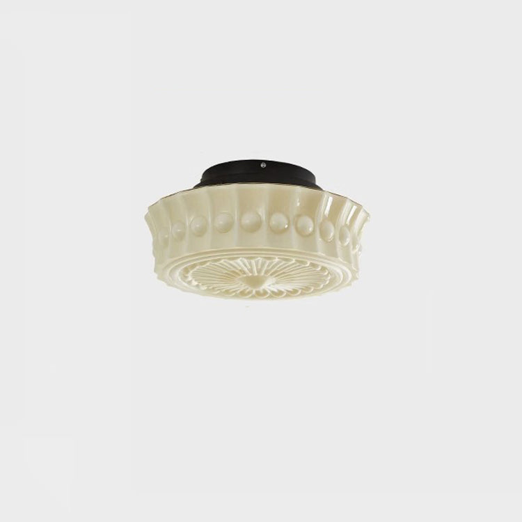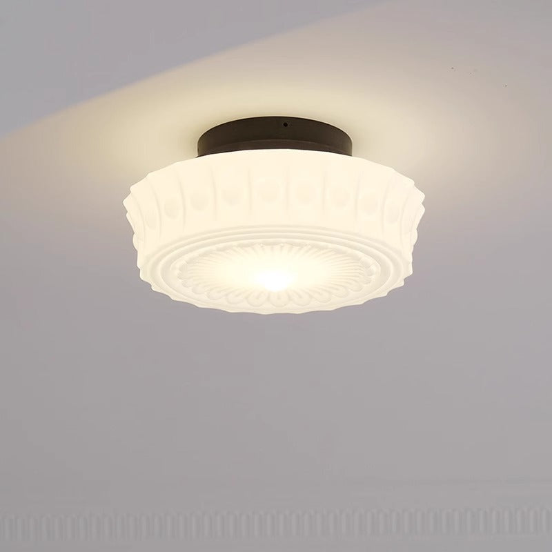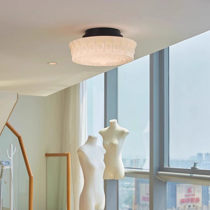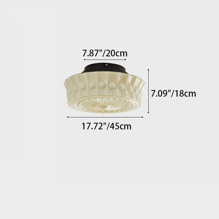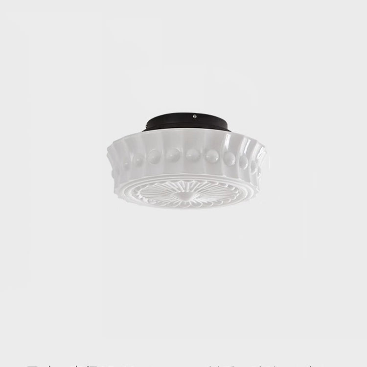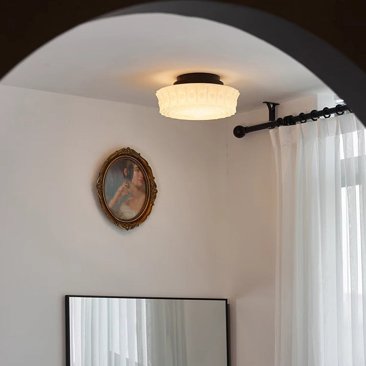 伝統的なフランス製ラウンドガラスメタル3灯セミフラッシュマウントシーリングライト(寝室用)
