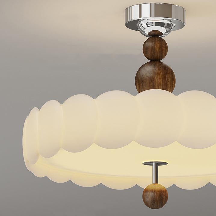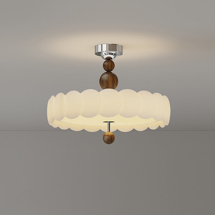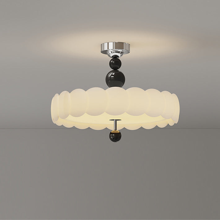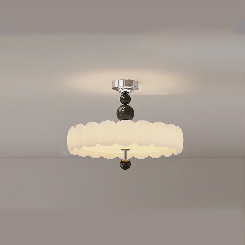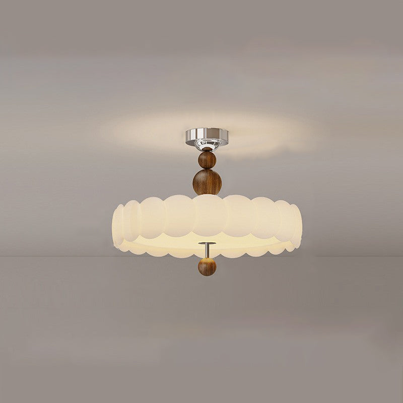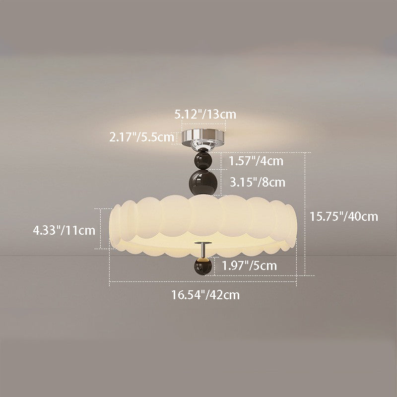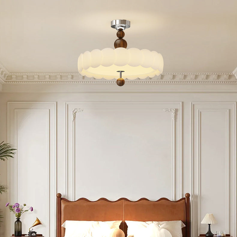 伝統的なフランスの丸型パンプキンアイアンPE LEDセミフラッシュマウントシーリングライトリビングルーム用