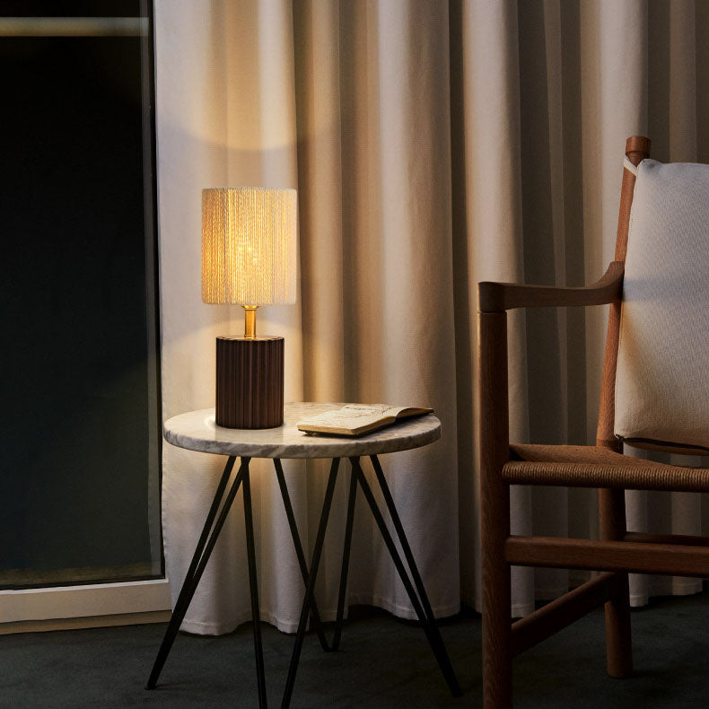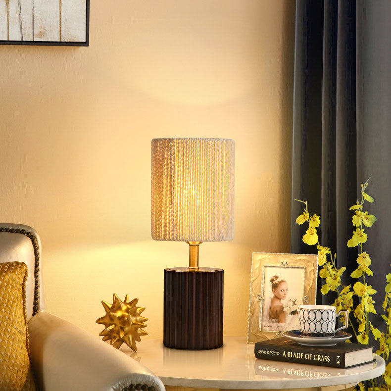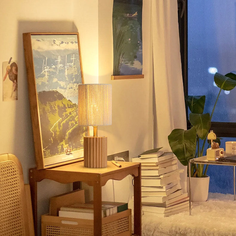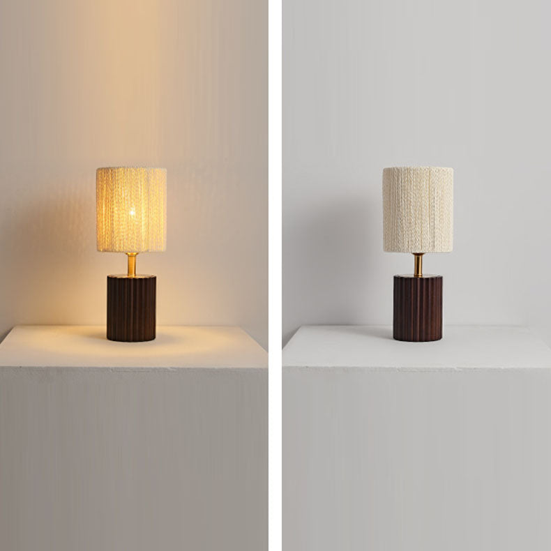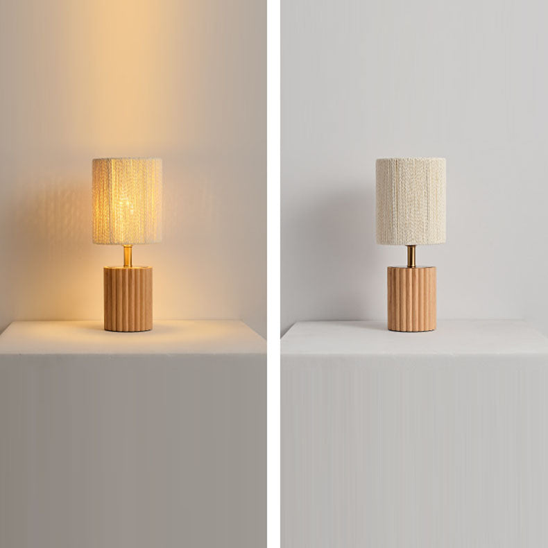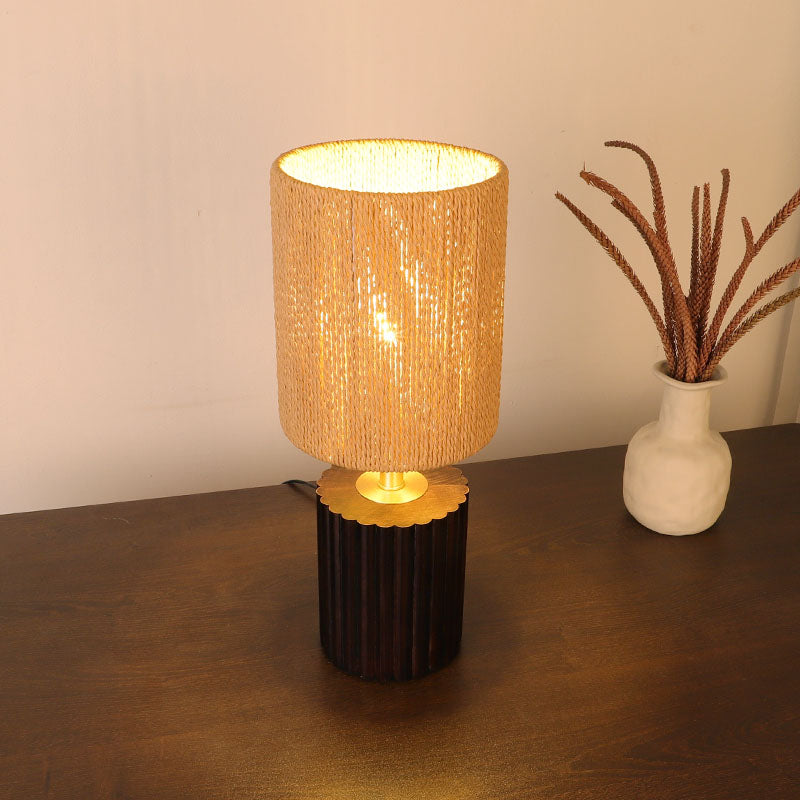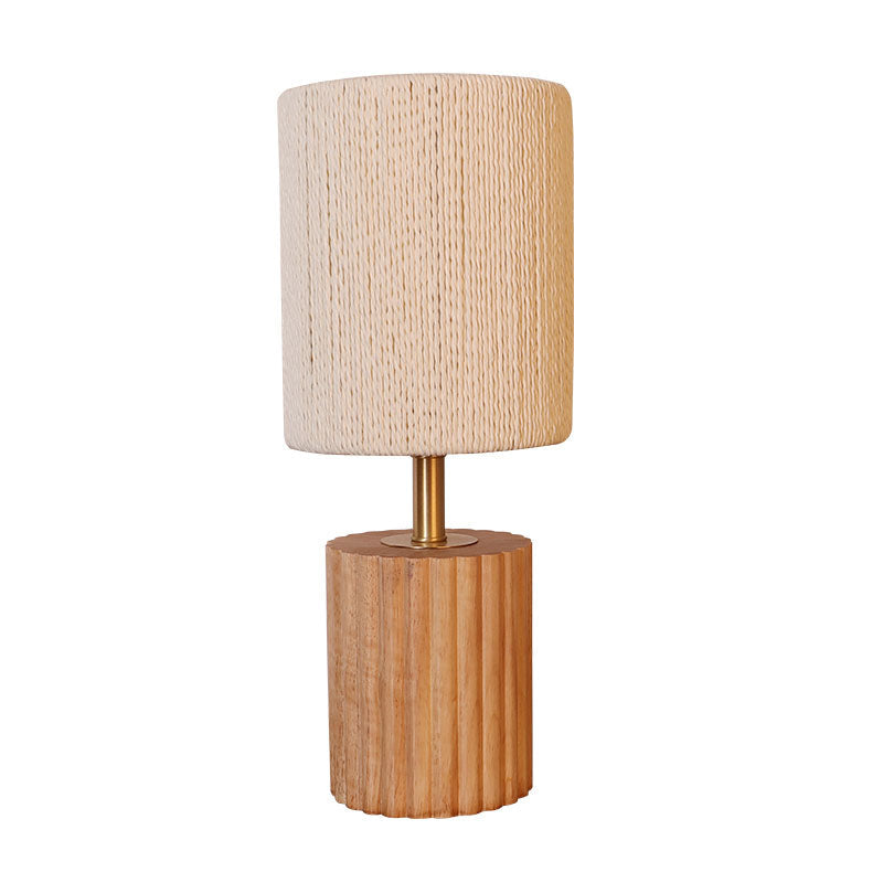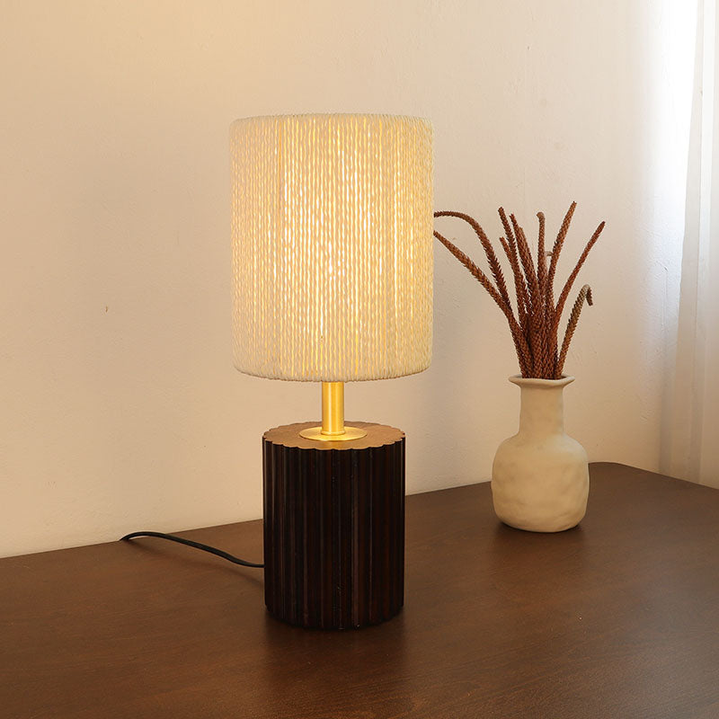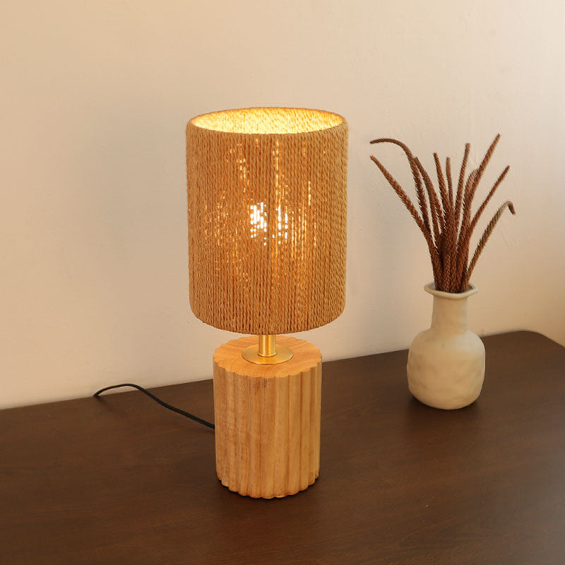 Traditional Japanese Column Wood Paper Rope 1-Light Table Lamp For Living Room