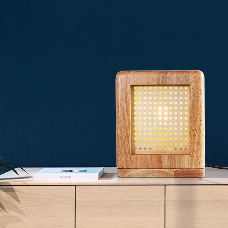 Traditional Japanese Cube Rubberwood Magnet 1-Light Table Lamp For Bedroom